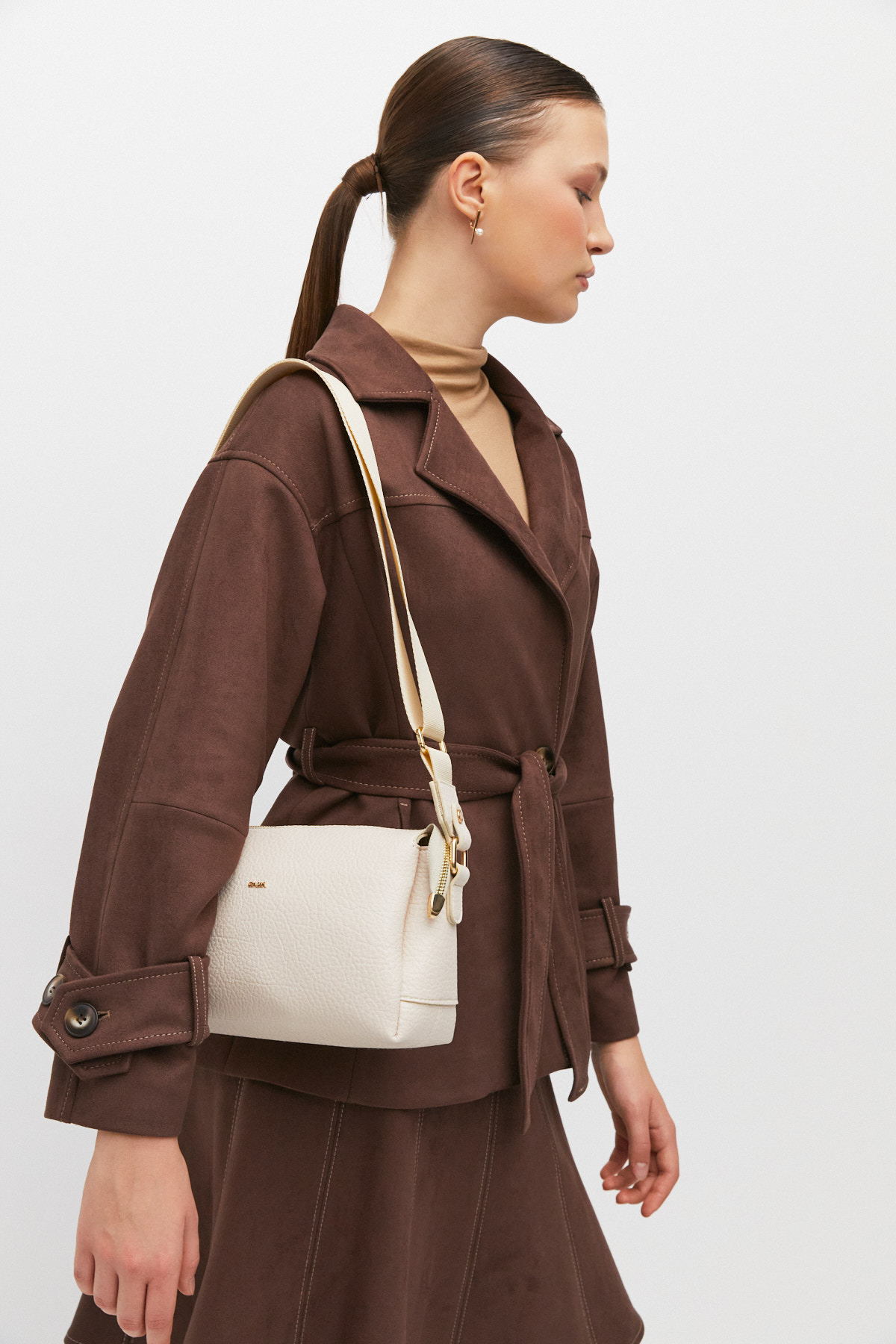 Bu zarif omuz çantaları, silindir formu ve hafif kabartılı ve doğal bir dokuya sahip bu doku sayesinde çizilmelere ve aşınmalara karşı daha dirençli olan yüzeyiyle her stile uyum sağlıyor. Ergonomik ayarlanabilir askıları ve kompakt yapısıyla günlük kullanım için ideal olan bu modeller, bej, bordo, kahverengi ve siyah renk seçenekleriyle şık bir tamamlayıcı sunar. Fermuarlı kapanış ve dayanıklı malzemelerle tasarlanan çantalar, hem pratik hem de estetik bir görünüm vadediyor.