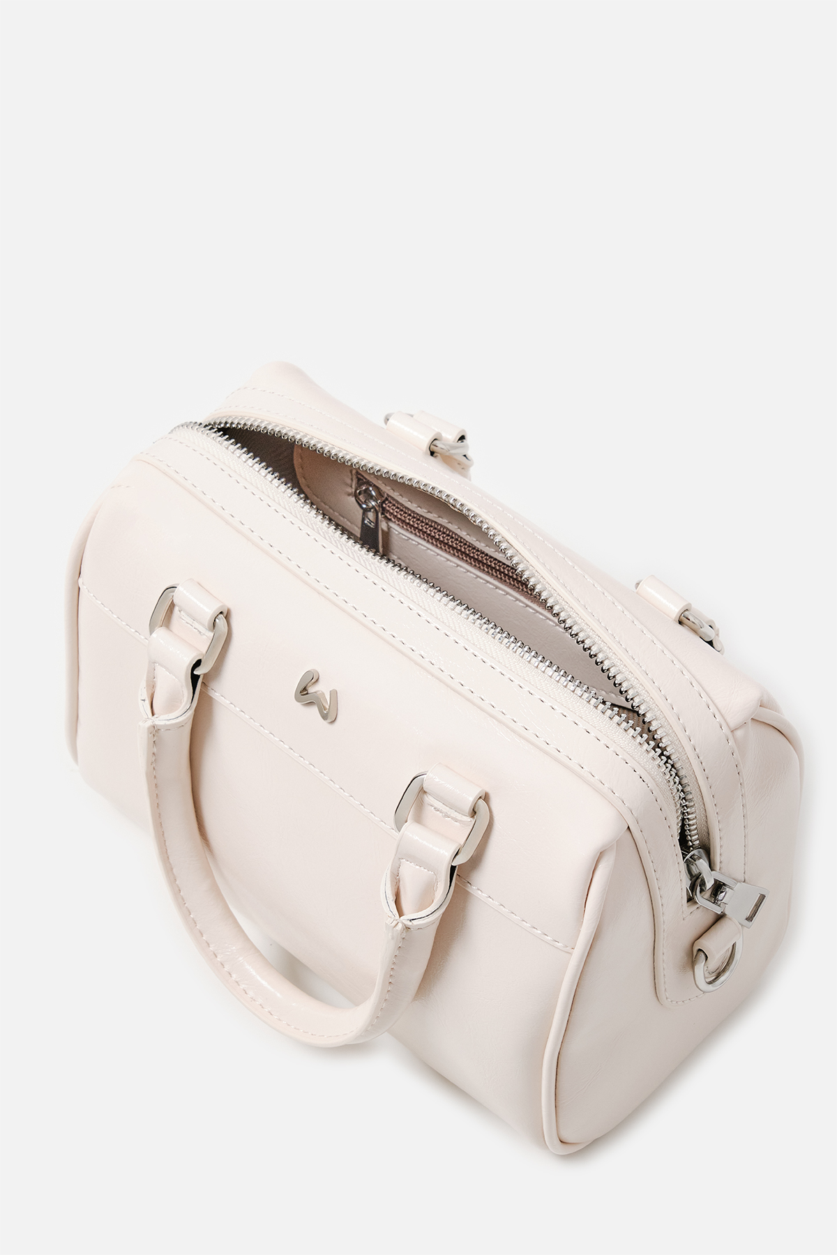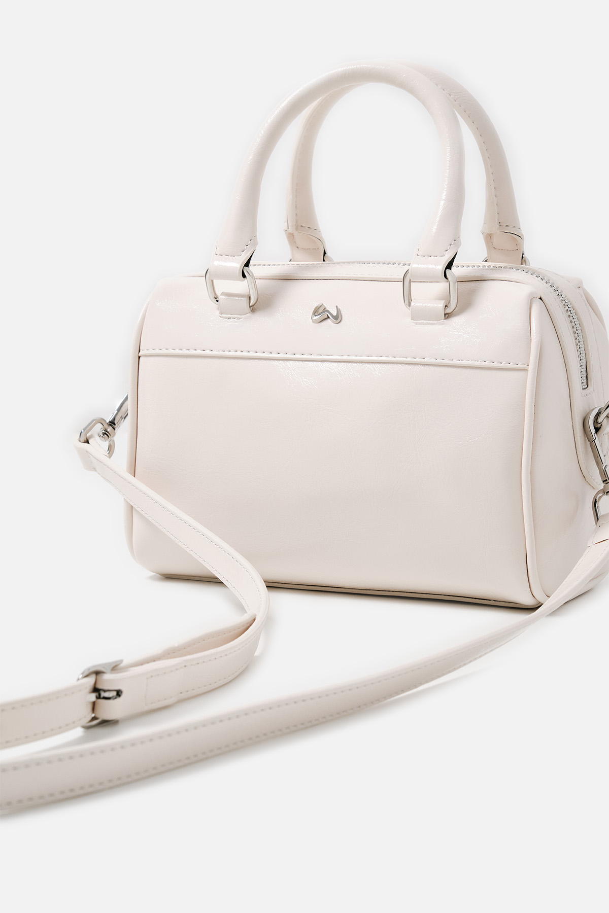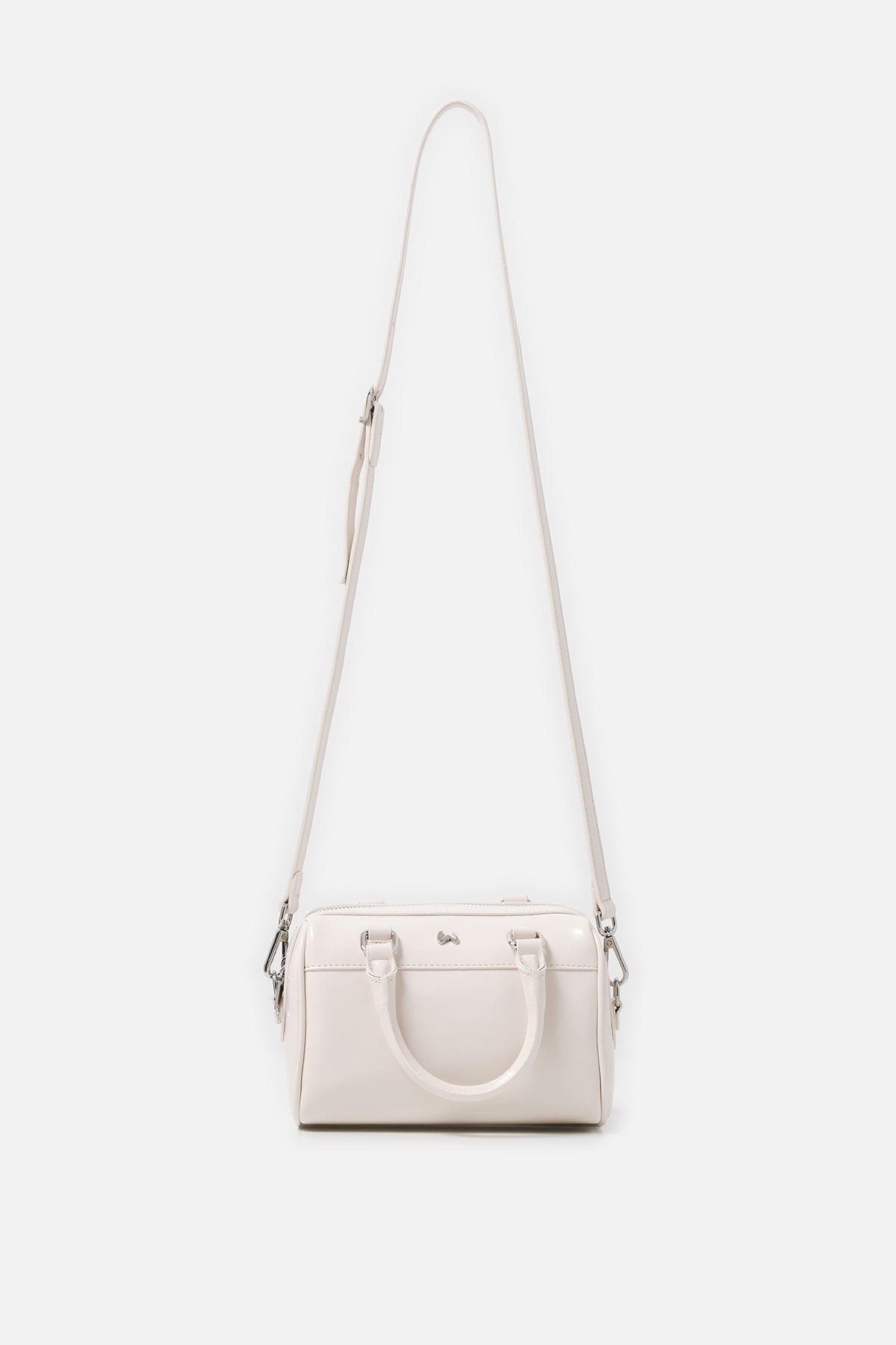 Mat yumuşak suni deriden çapraz askılı mini çanta. Gümüş rengi aksesuar detaylar. Fermuarlı,astarlı,iç cepli. Ayarlanabilir çapraz askı eklentili çanta
