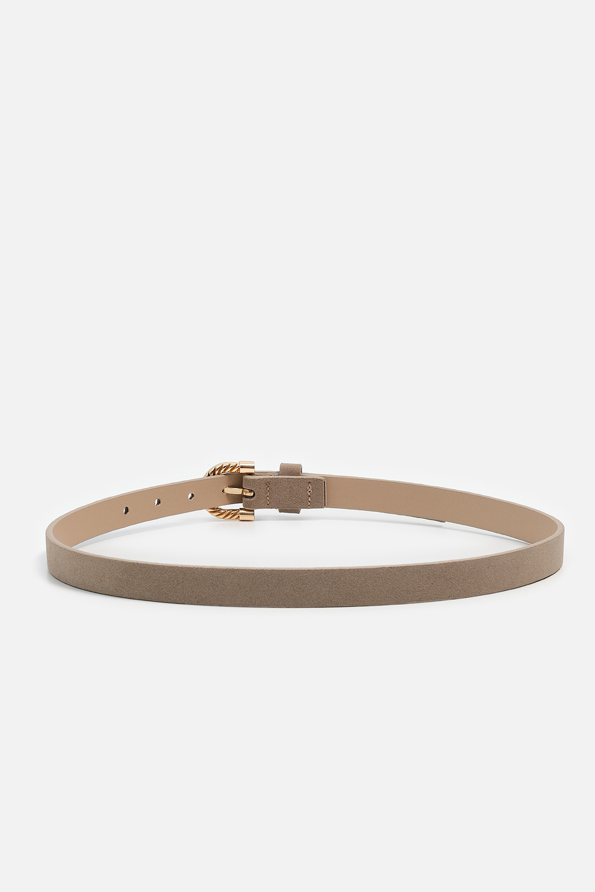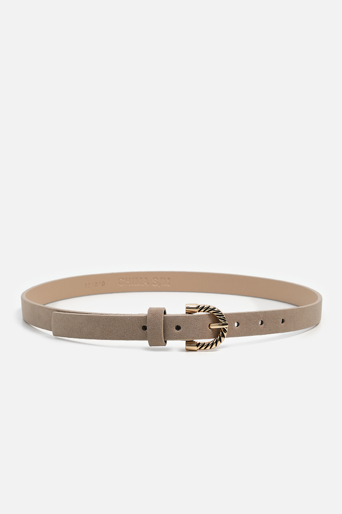 Zarafetin en sade haliyle buluştuğu bu bej süet kemer, minimal şıklığı sevenler için vazgeçilmez bir parça! Yumuşacık süet dokusuyla teninize dost, altın sarısı işlemeli metal tokasıyla ise göz kamaştırıcı. Her kombine zarif bir tamamlayıcı olacak şekilde tasarlandı.