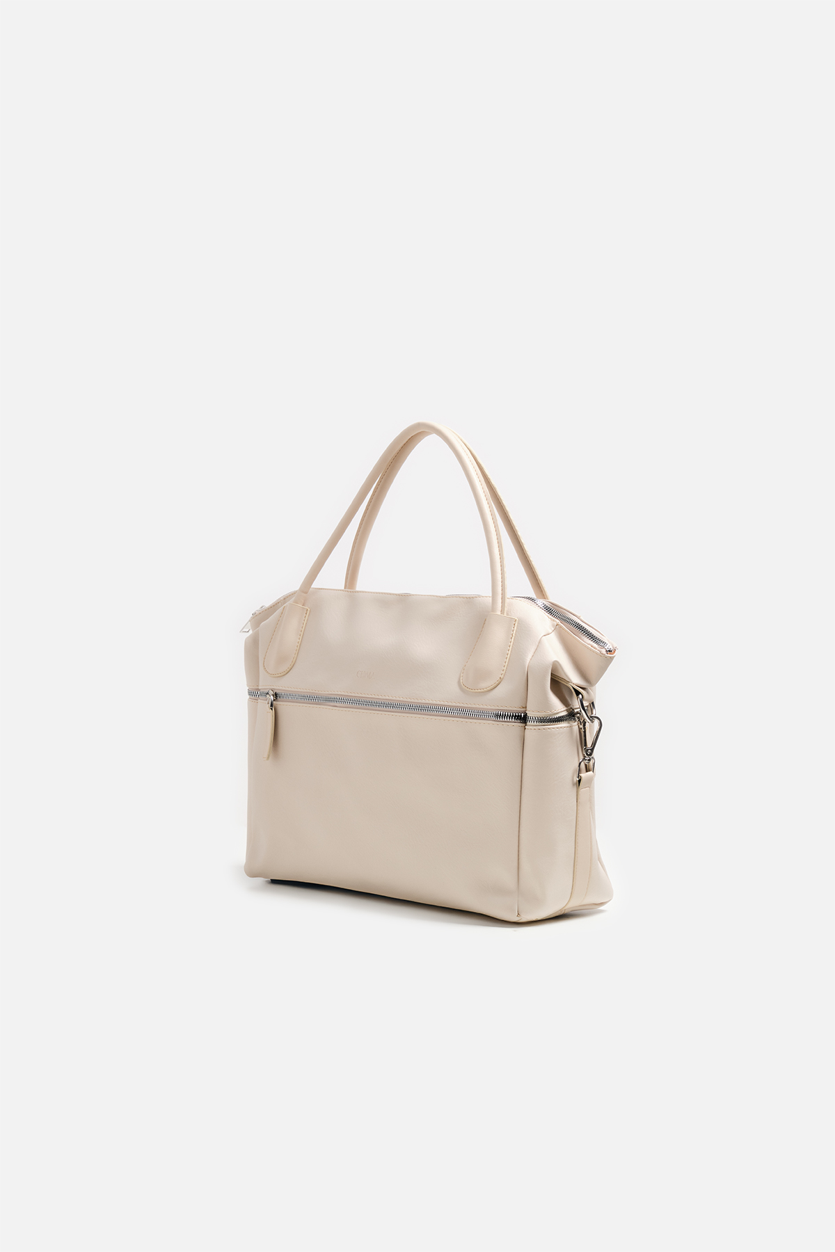 Zarif dokulu vegan deriden imal edilen bu seyahat çantası, dayanıklılığı ve şıklığı bir araya getiriyor. Üstteki çift sap ve çıkarılabilir omuz askısı, uzun yolculuklarda kolay taşıma imkanı sunarken, ön cepteki fermuarlı bölüm pasaport, bilet ve küçük eşyalar için pratik bir depolama alanı sağlıyor. Minimal metal detaylarla tamamlanan tasarım, her yolculuğa eşlik edecek bir stile sahip.