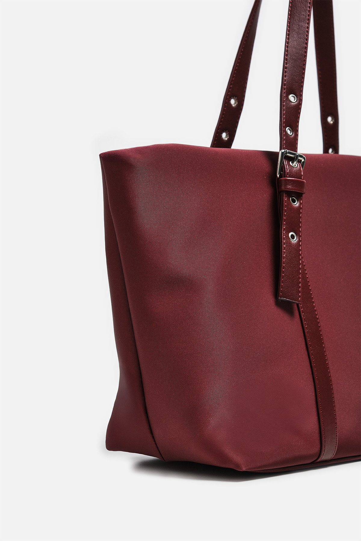 Ayarlanabilir Askı Detayı: Çantanın ön yüzünde uzanan kemer görünümlü askılar, metal tokaları ve kuşgözü detaylarıyla hem estetik bir hava katar hem de kullanım kolaylığı sağlar.