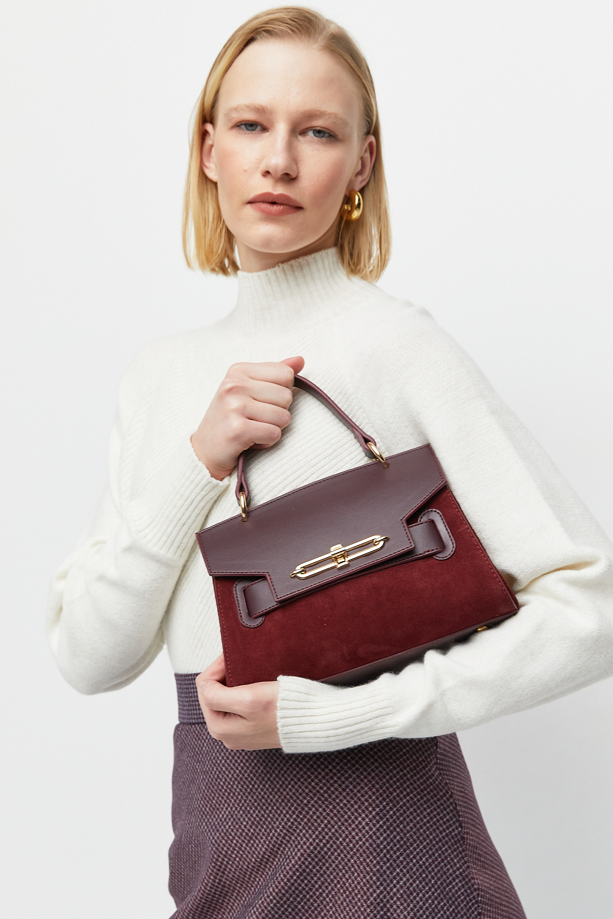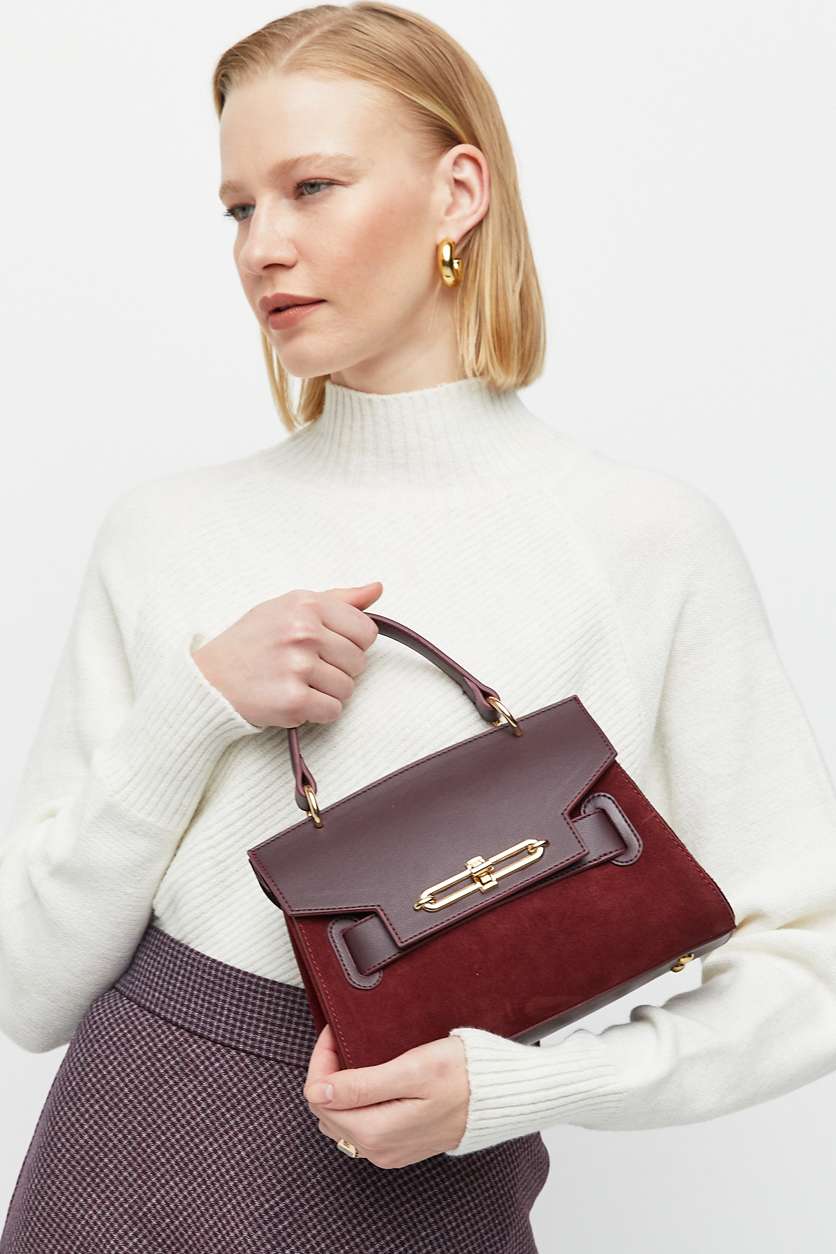 Klasik formun modern detaylarla buluştuğu bu özel tasarım çanta; bordo, tütün ve koyu kahve renk seçenekleriyle stilinize derinlik katıyor. Gövdesinde kullanılan süet doku ile kapak kısmındaki pürüzsüz deri görünümün birleşimi, çantaya sofistike bir hava kazandırıyor.