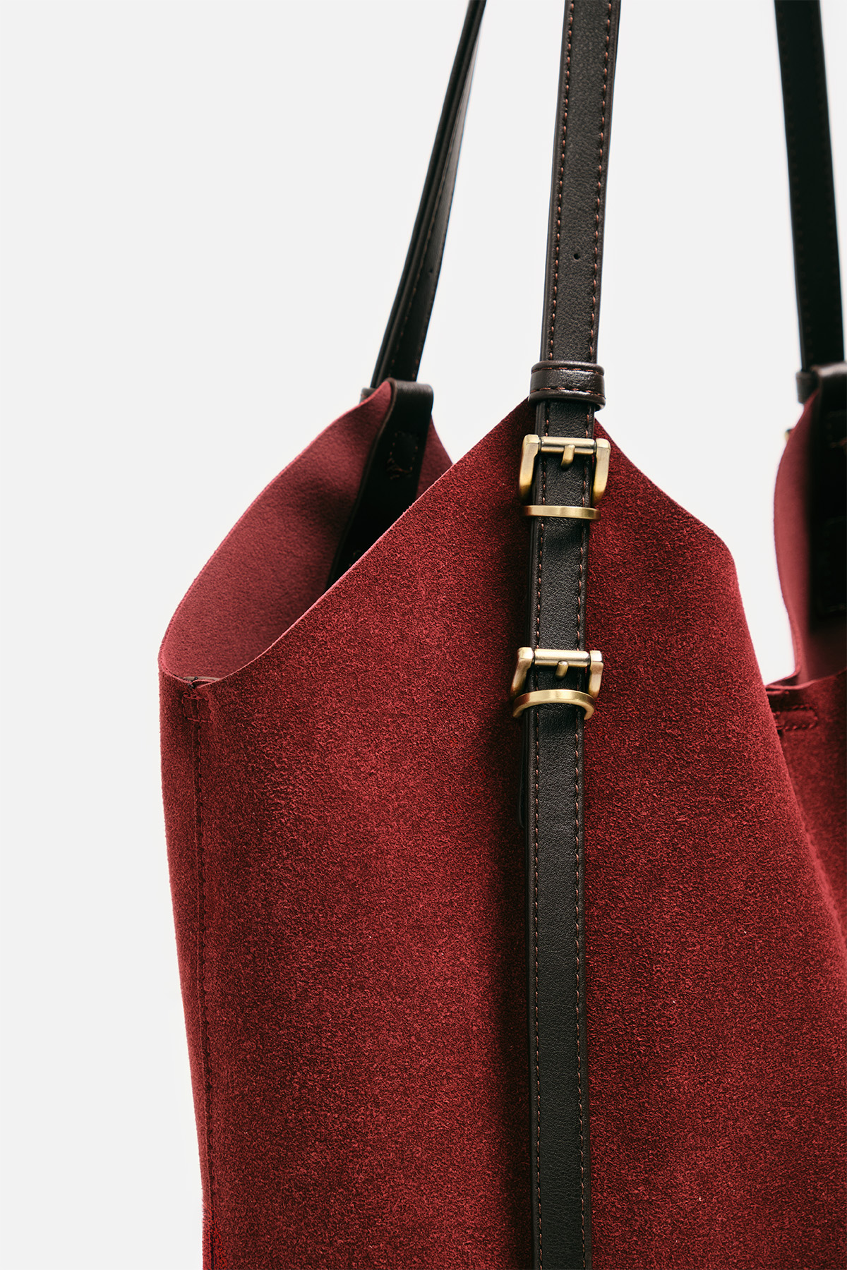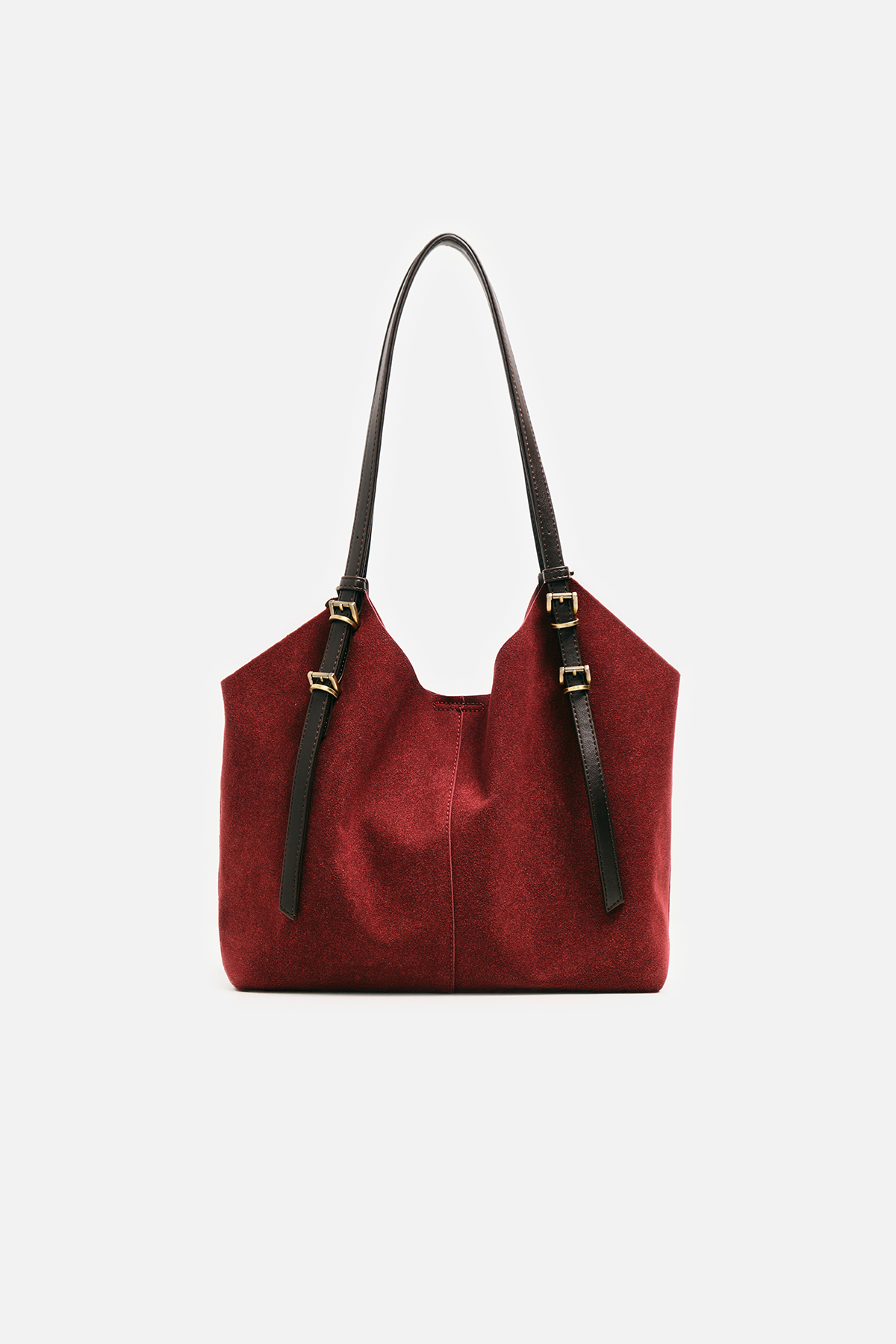 Zamansız şıklığı ve modern rahatlığı birleştiren bu süet omuz çantası, gardırobunuzun vazgeçilmezi olmaya aday. Yumuşak, taba rengi süet dokusu, çantaya zengin bir his katarken; kontrast oluşturan koyu kahverengi deri askılar ve tokalar sofistike bir görünüm sunar. Ayarlanabilir tokalı dikey kayış detayları, çantanın hacimli ve kullanışlı tasarımına zarif bir hareket katar. Geniş iç hacmi sayesinde günlük tüm ihtiyaçlarınızı kolayca taşıyabilirsiniz. Gündüzden geceye, casual veya şık kombinlerinizle mükemmel uyum sağlar.