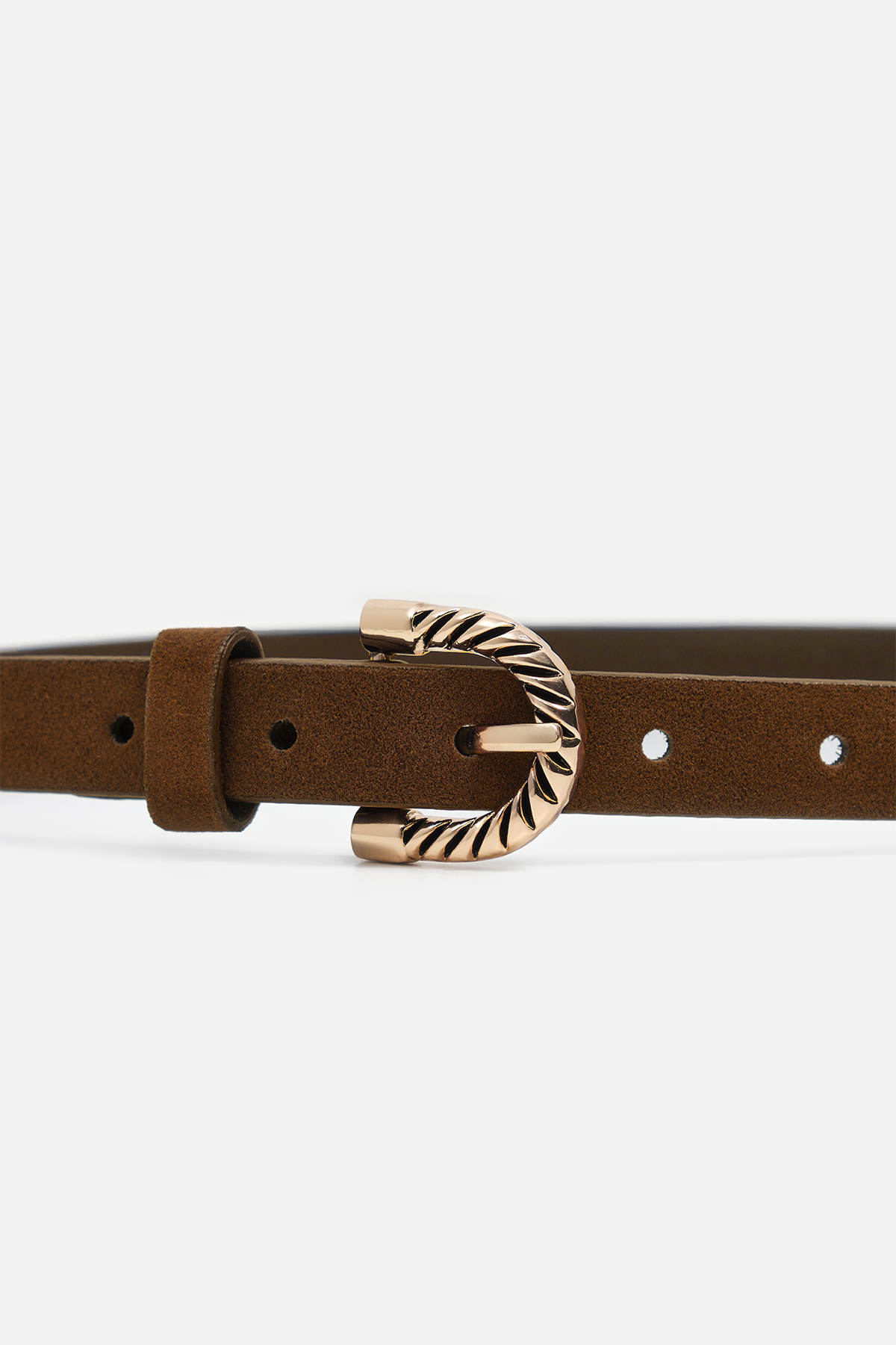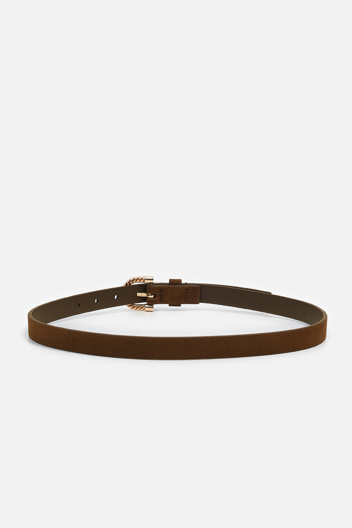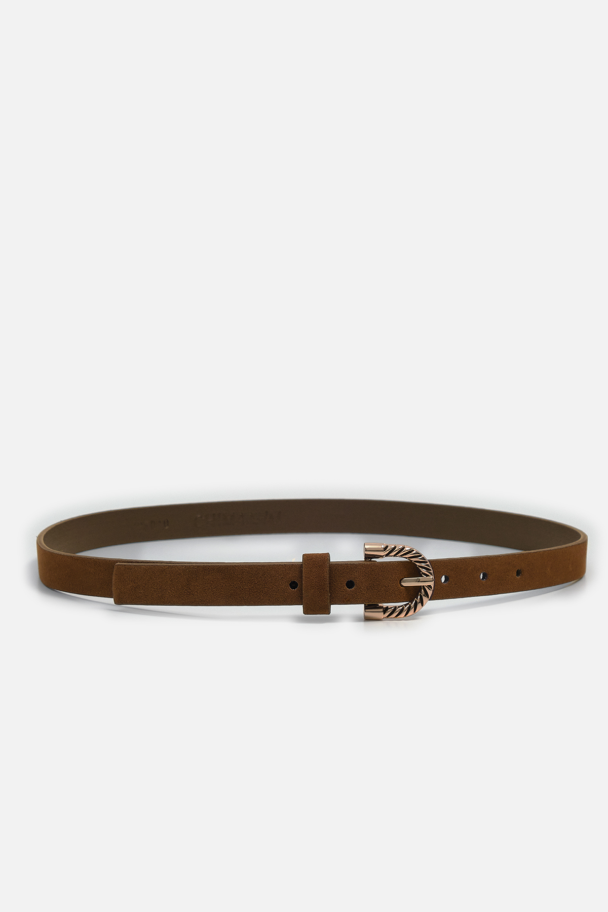 Zarafetin en sade haliyle buluştuğu bu bej süet kemer, minimal şıklığı sevenler için vazgeçilmez bir parça! Yumuşacık süet dokusuyla teninize dost, altın sarısı işlemeli metal tokasıyla ise göz kamaştırıcı. Her kombine zarif bir tamamlayıcı olacak şekilde tasarlandı.