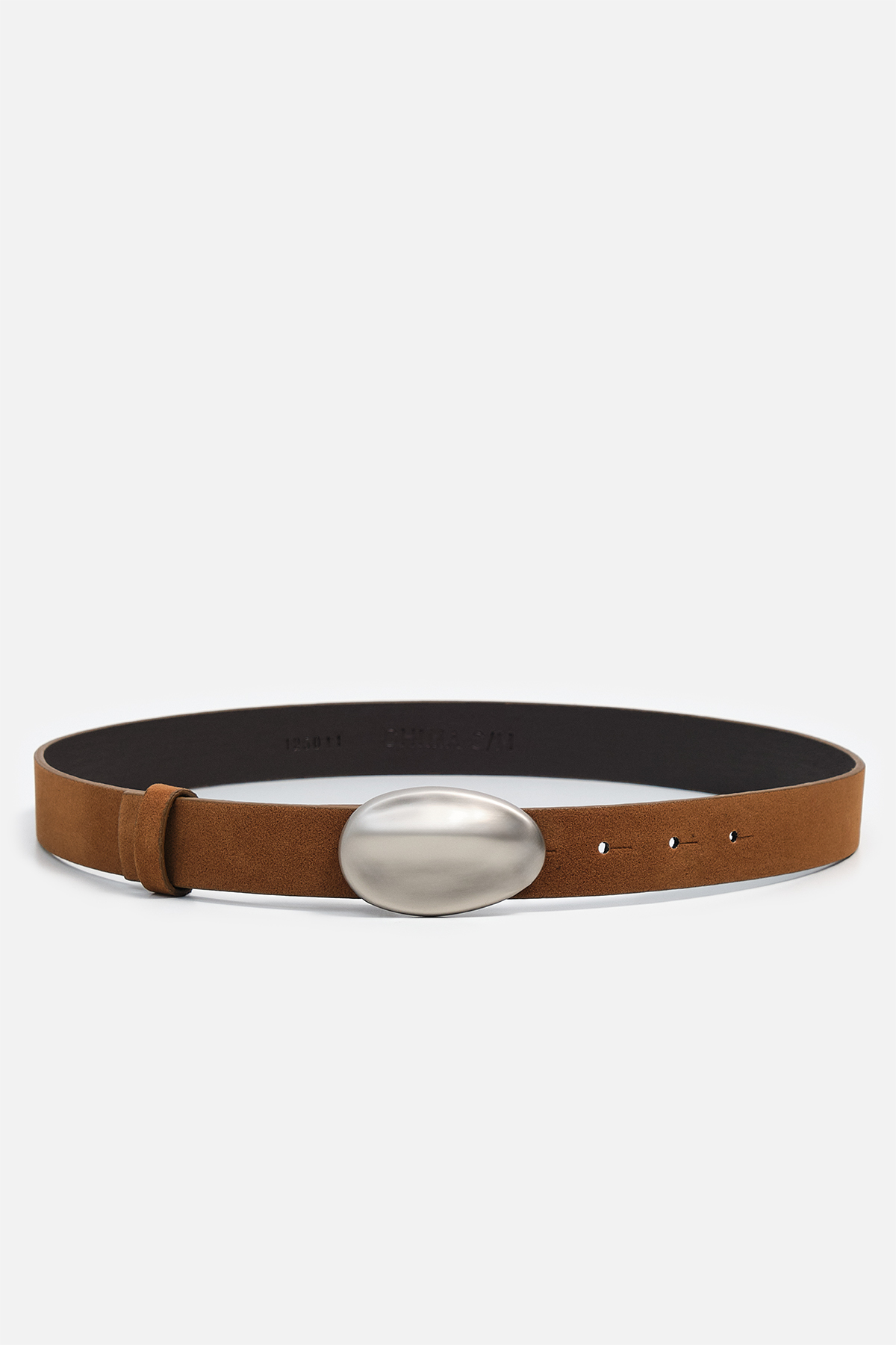 Doğal ışıltının süetle buluştuğu bu zarif kemer, sadeliğin lüks yorumu! Yumuşacık bej süet gövdeye eşlik eden oval sedef tokası, her dokunuşta incelik hissi uyandırır. Minimalist tasarımıyla hem gündüz hem gece kombinlerinizin sessiz yıldızı olacak.