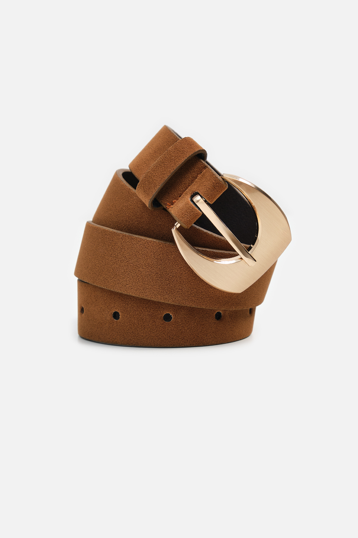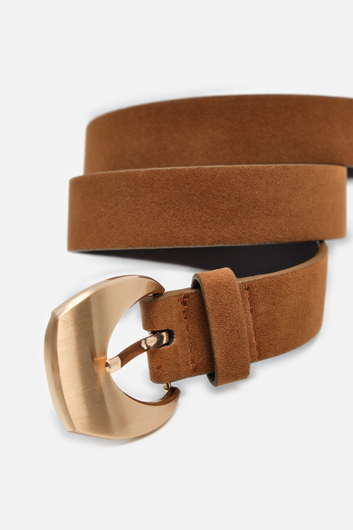 Toprak tonlarının en şık yorumu bu kahve süet kemerde! Kadifemsi dokusuyla yumuşacık, metalik gümüş tokasıyla ise göz alıcı. Minimalist ama iddialı tasarımıyla her kombinin tamamlayıcısı olmaya hazır.