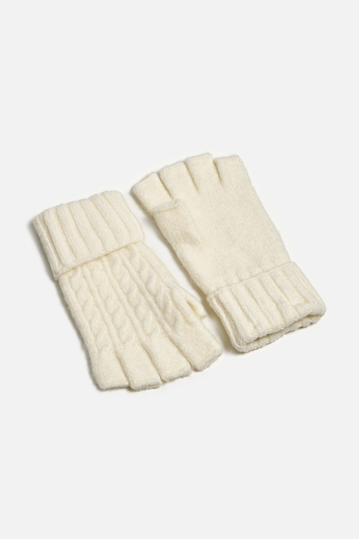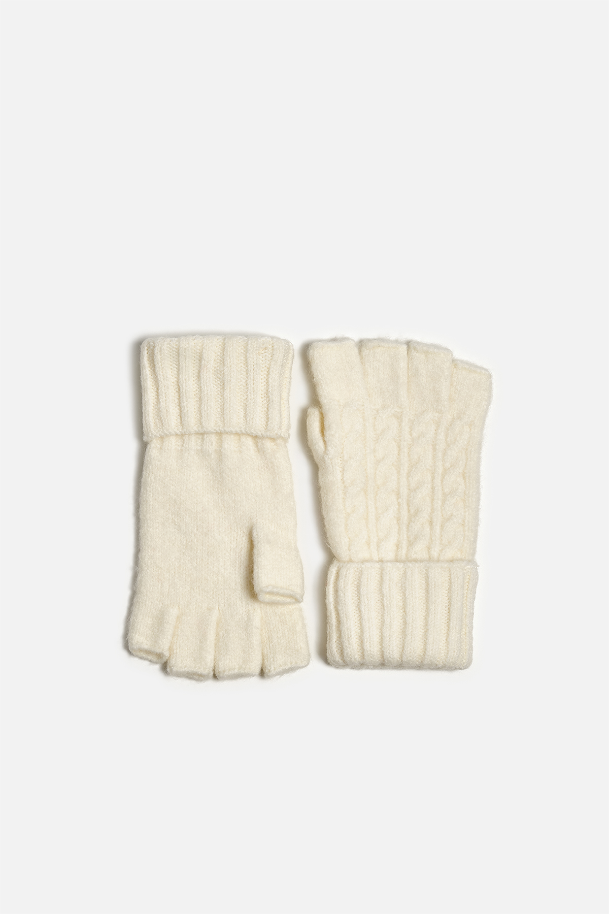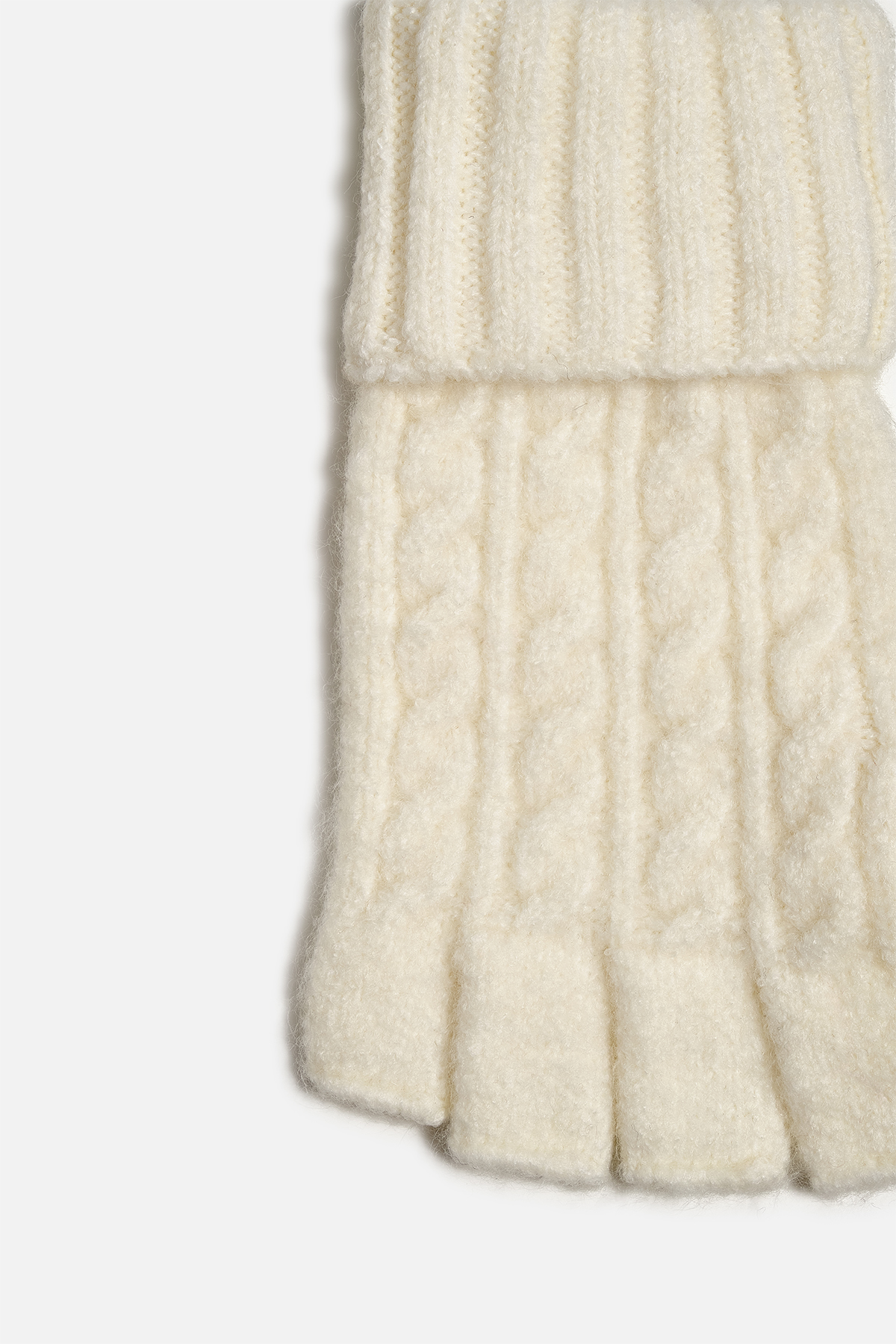 Yumuşak dokulu yün karışımlı parmaksız eldivenler. Saç örgüsü detaylı, ribanalı ve katlanabilir bilek kısmı ile. Bordo ve ekru renk seçenekleri var.
