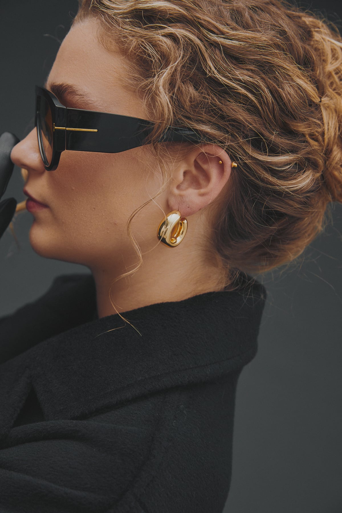 minimalist bir dokunuşla maksimal etki yaratmak isteyen modern kadının vazgeçilmezi. Sanatsal ve akışkan formuyla, klasik halka küpeye iddialı bir yorum katarken, parlak altın tonu anında lüks bir hava katıyor; ister günlük beyaz bir tişörtle ister elegan bir gece elbisesiyle kombinleyin, bu çarpıcı parça tüm dikkatleri üzerinize çekecek ve zahmetsiz şıklığınızın imzası olacak.