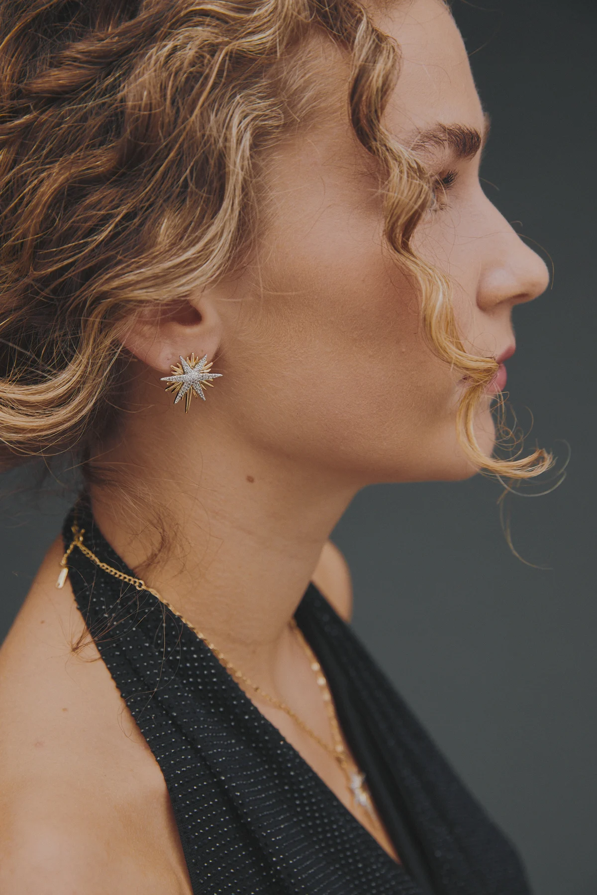 Parlak ve şık bir dokunuş için ideal! Bu zarif yıldız detaylı küpeler, altın tonlu metal ve göz alıcı kristal taşlarla tasarlandı. Hem gündüz hem de gece şıklığını tamamlayacak şekilde, minimal ama çarpıcı bir stil sunuyor. Delikli kulaklar için uygundur.