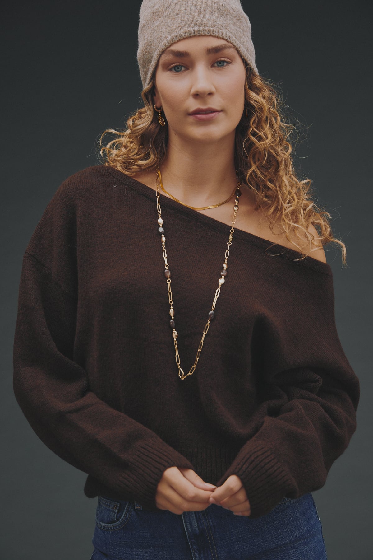 Zarif, uzun zincir formu ve aralıklı yerleştirilmiş kahverengi taş detaylarıyla sofistike bir görünüm sunar. Katmanlı takılarla birlikte veya tek başına kullanıldığında şıklığı ön plana çıkarır. Ayarlanabilir kapaması sayesinde farklı boylarda takılabilir.