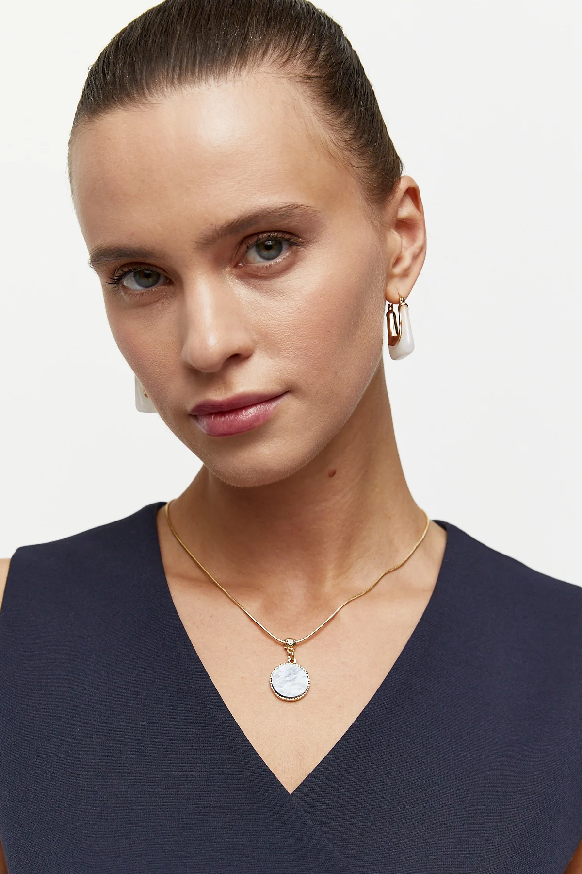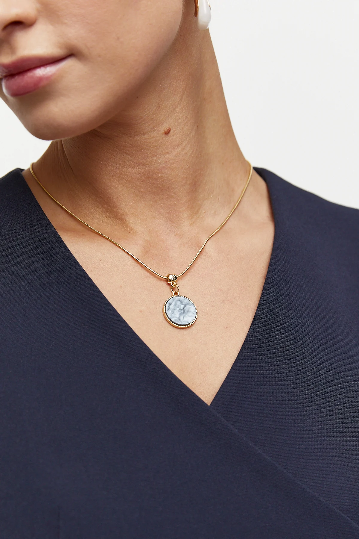 Bu zarif kolye, sade ve sofistike bir stil sunuyor! İnce altın kaplamalı zinciri ve yuvarlak gri taşlı kolye ucuyla her kombine şık bir dokunuş katıyor. Günlük kullanım için ideal olan bu parça, minimalist tasarımıyla dikkat çekici bir görünüm sağlıyor.