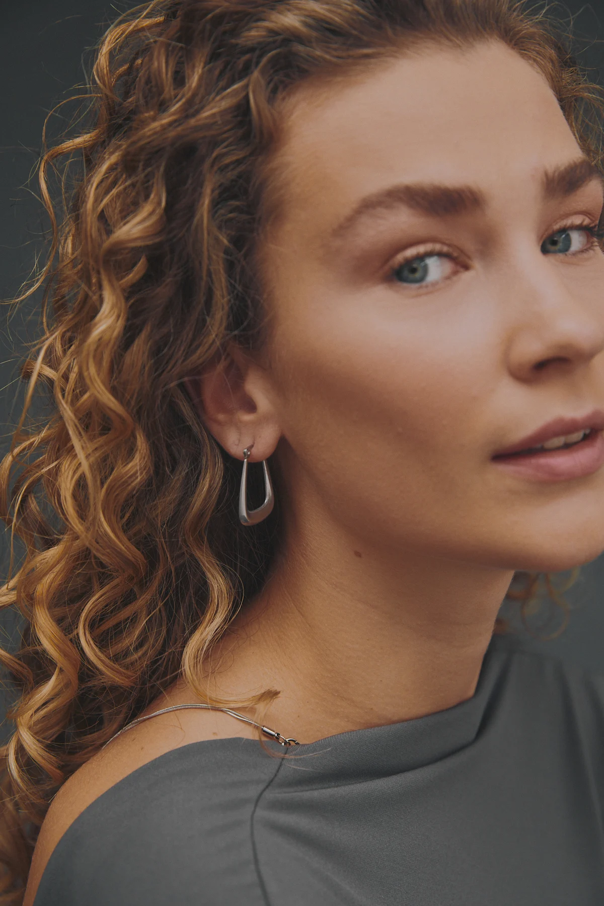 Minimal ve modern çizgilerin çarpıcı birleşimi. Gümüş tonunda, yassı ve hacimli bir formda tasarlanan bu oval halka küpeler, pürüzsüz yüzeyi ve geometrik yapısıyla klasik aksesuarlara çağdaş bir yorum getiriyor. Kulakta güçlü ve iddialı bir duruş sergileyen bu parça, görünümünüze zahmetsizce modern ve sanatsal bir hava katmak isteyenler için mükemmel bir tercih.