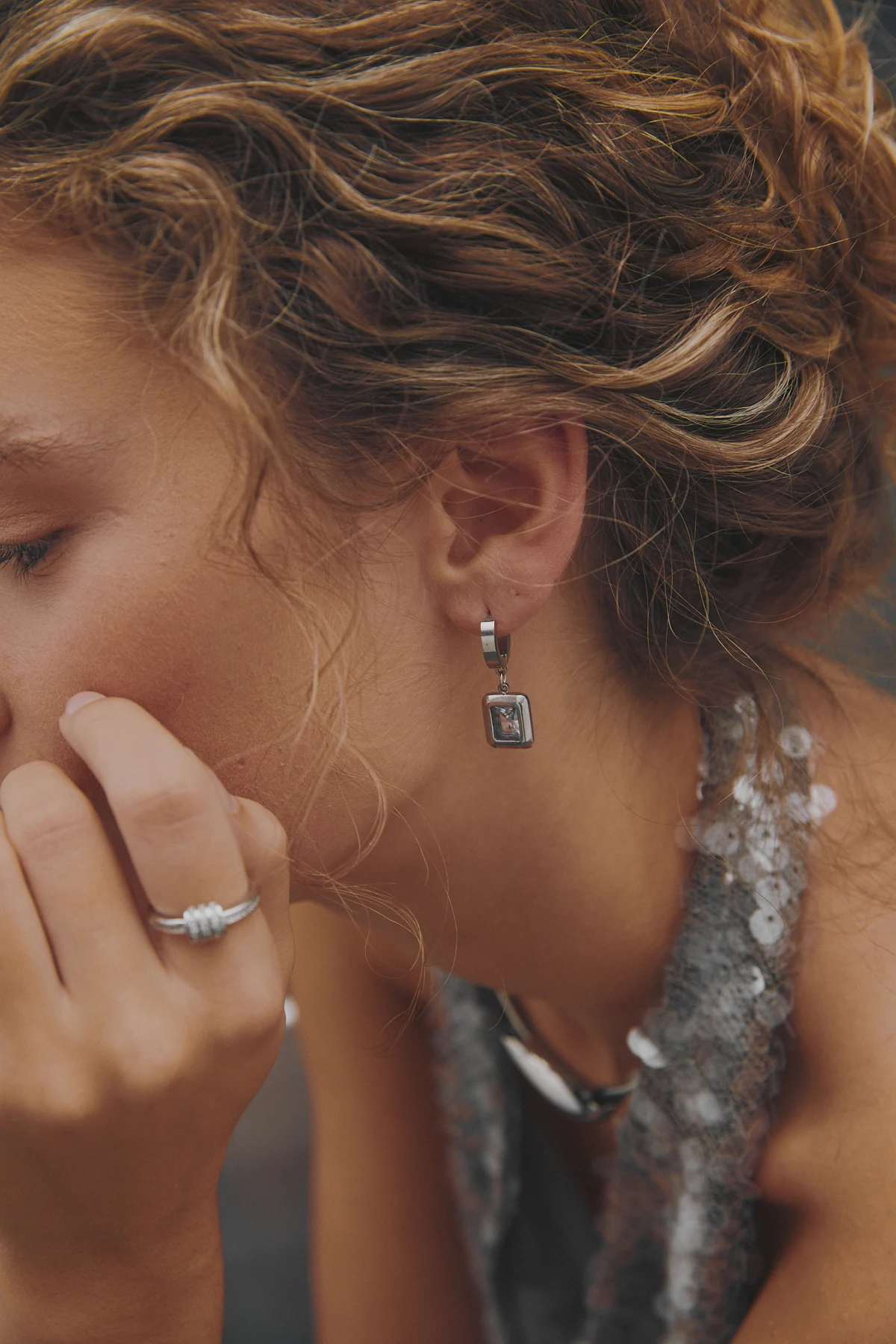 G ü m üş Renkli Dikd ö rtgen Ta ş Detayl ı Halka K ü pe