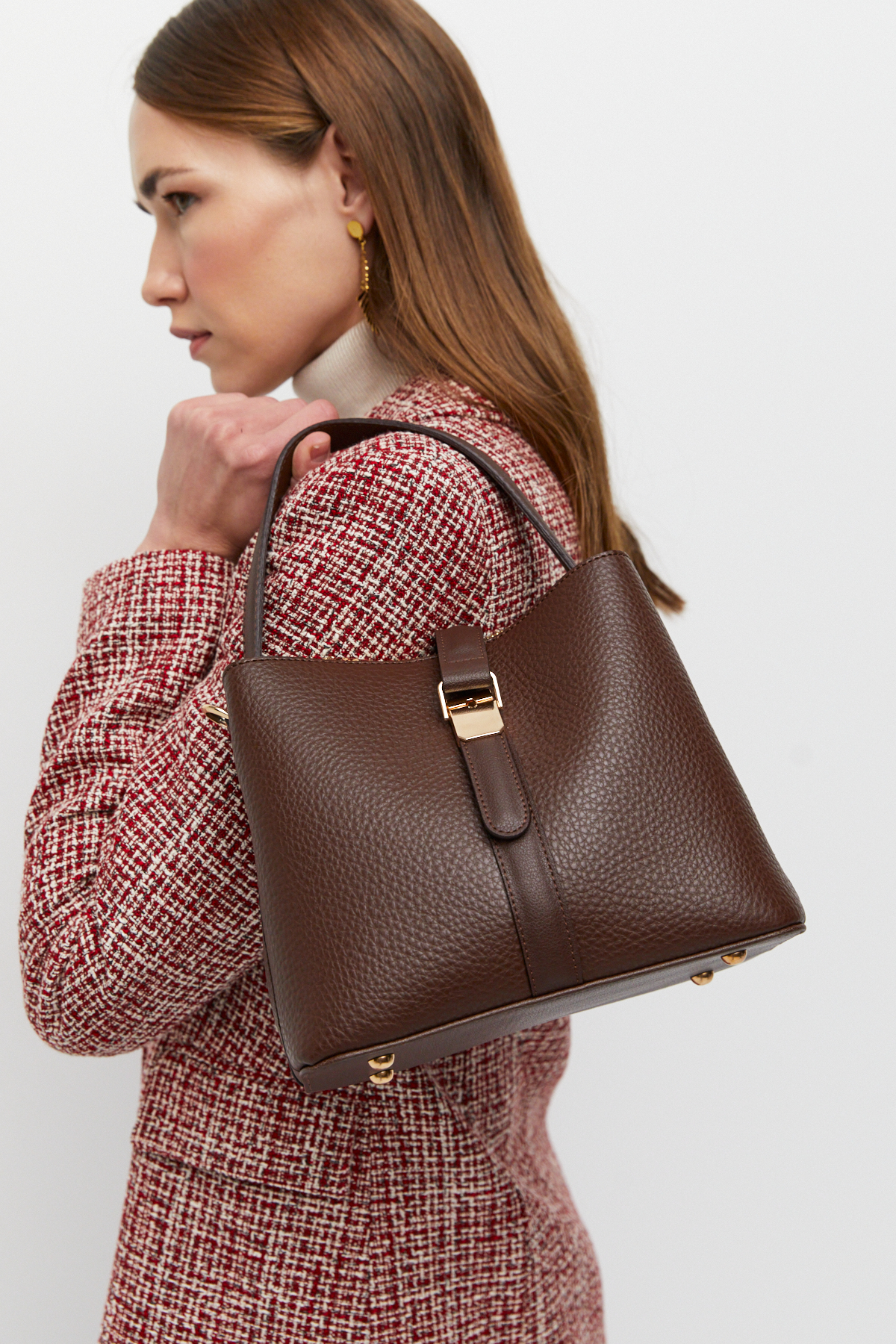 Bu zarif çanta serisi, zamansız tasarımı ve çok yönlü kullanımıyla her stile uyum sağlıyor. Yüksek kaliteli deri malzeme ve ince dokulu yüzeyler, bej, siyah, bordo ve koyu kahve tonlarıyla sofistike bir görünüm sunuyor. Çift tutma sapı ve çıkarılabilir omuz askısıyla dilediğiniz gibi taşıyabileceğiniz bu modeller, günlük yaşamdan özel davetlere kadar her anı tamamlıyor. Altın tonlu metal detaylar ve dayanıklı yapısıyla uzun ömürlü bir kullanım vaat eden bu çantalar, iç hacmiyle ihtiyaçlarınıza pratik çözümler sunuyor.