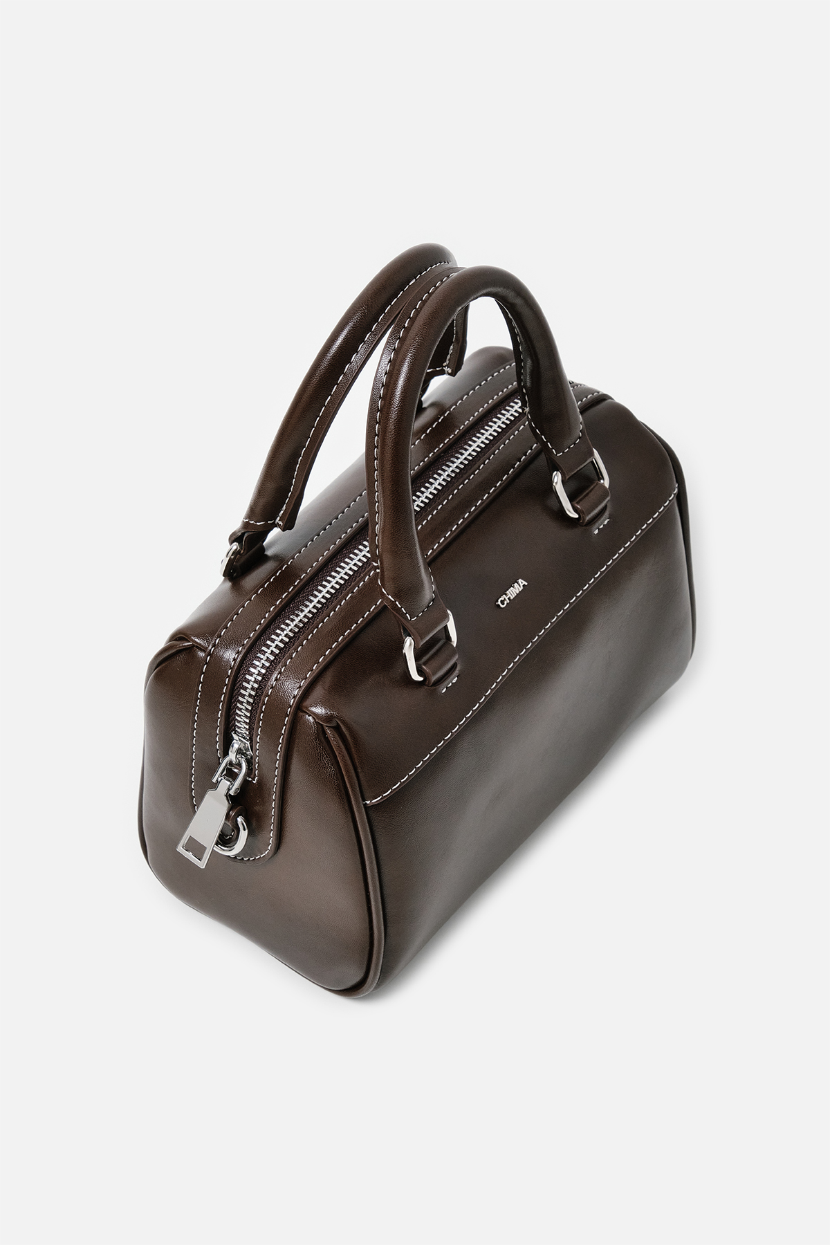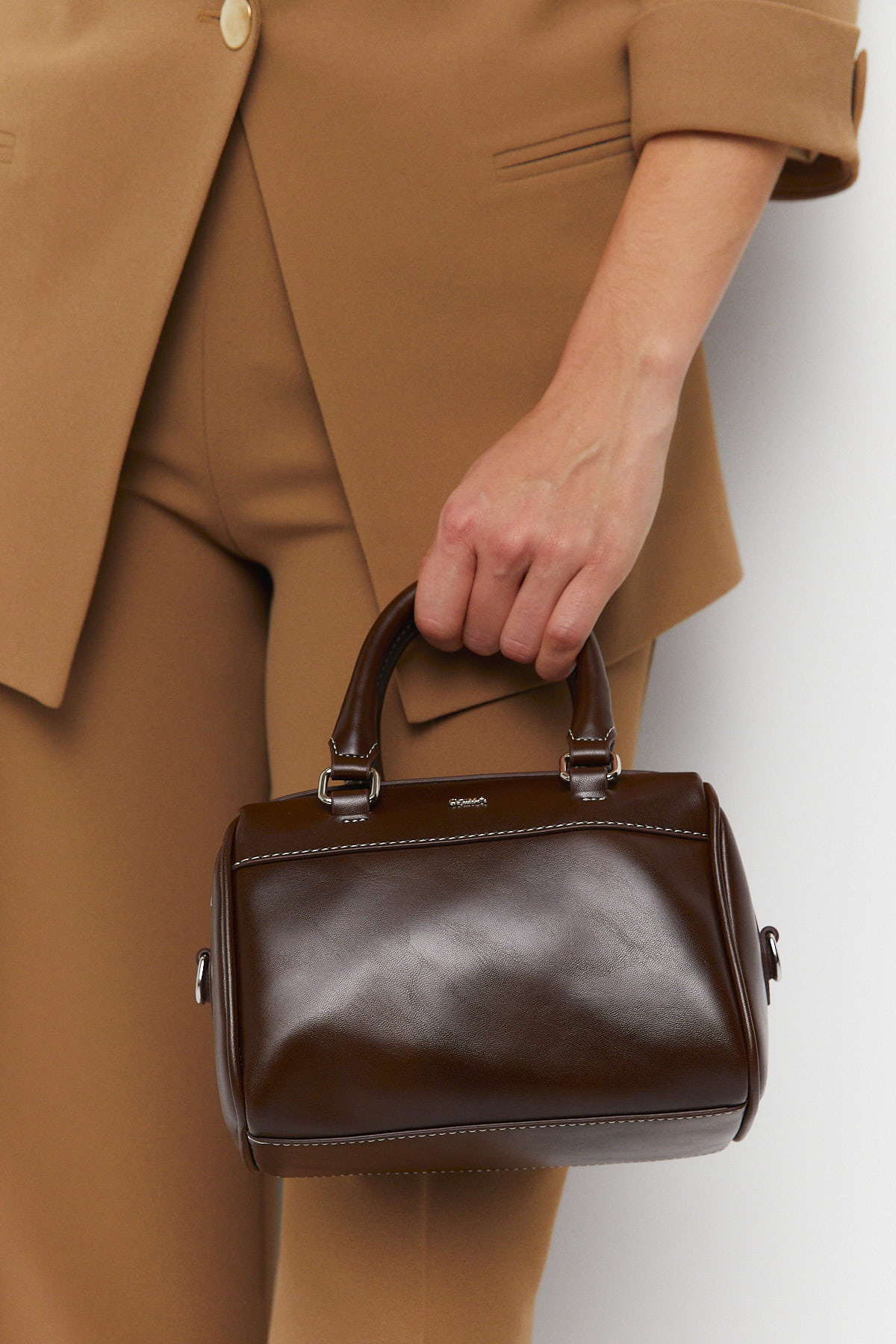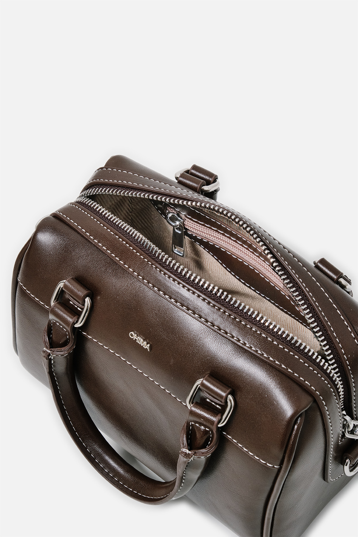 Deri görünümlü baget omuz çantası. Altın rengi metal detaylar. Tek tutma saplı. Mıknatıslı kapamalı, fermuarlı, astarlı.