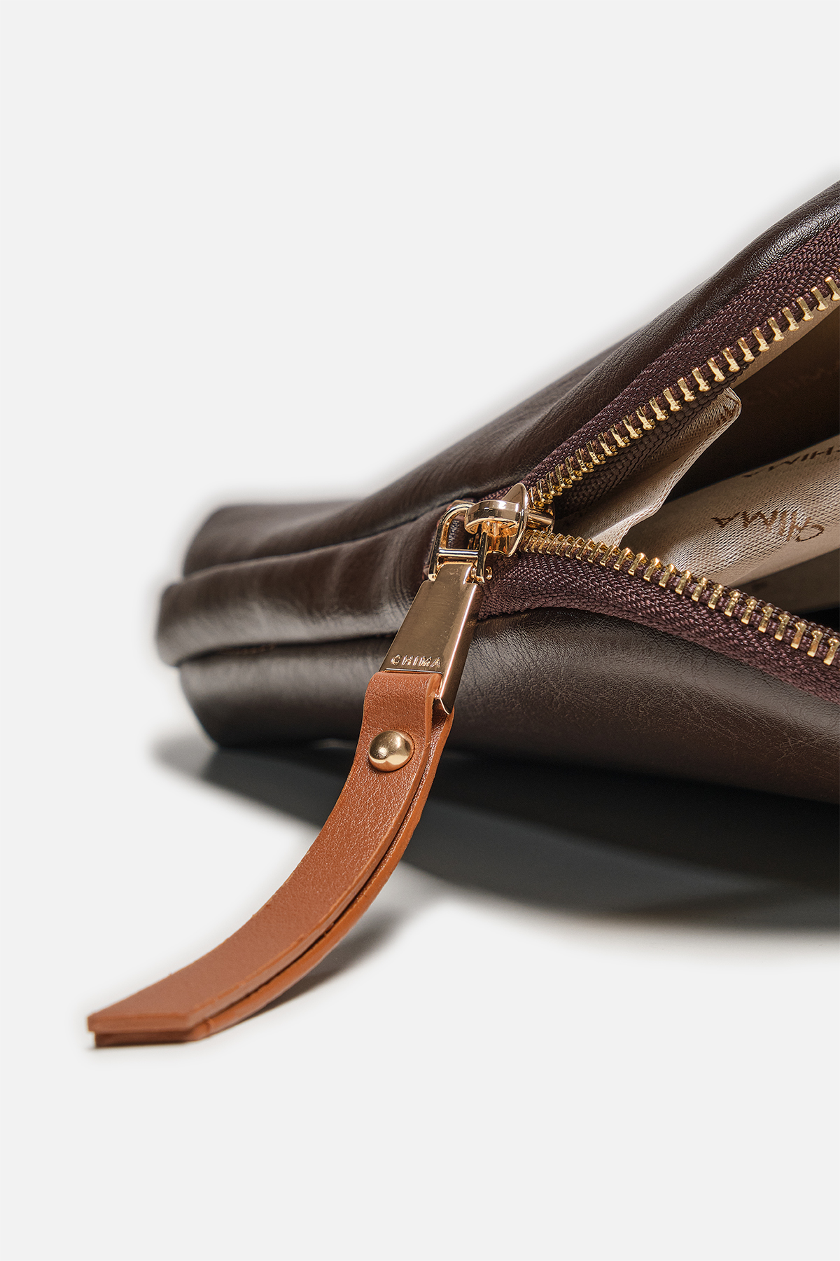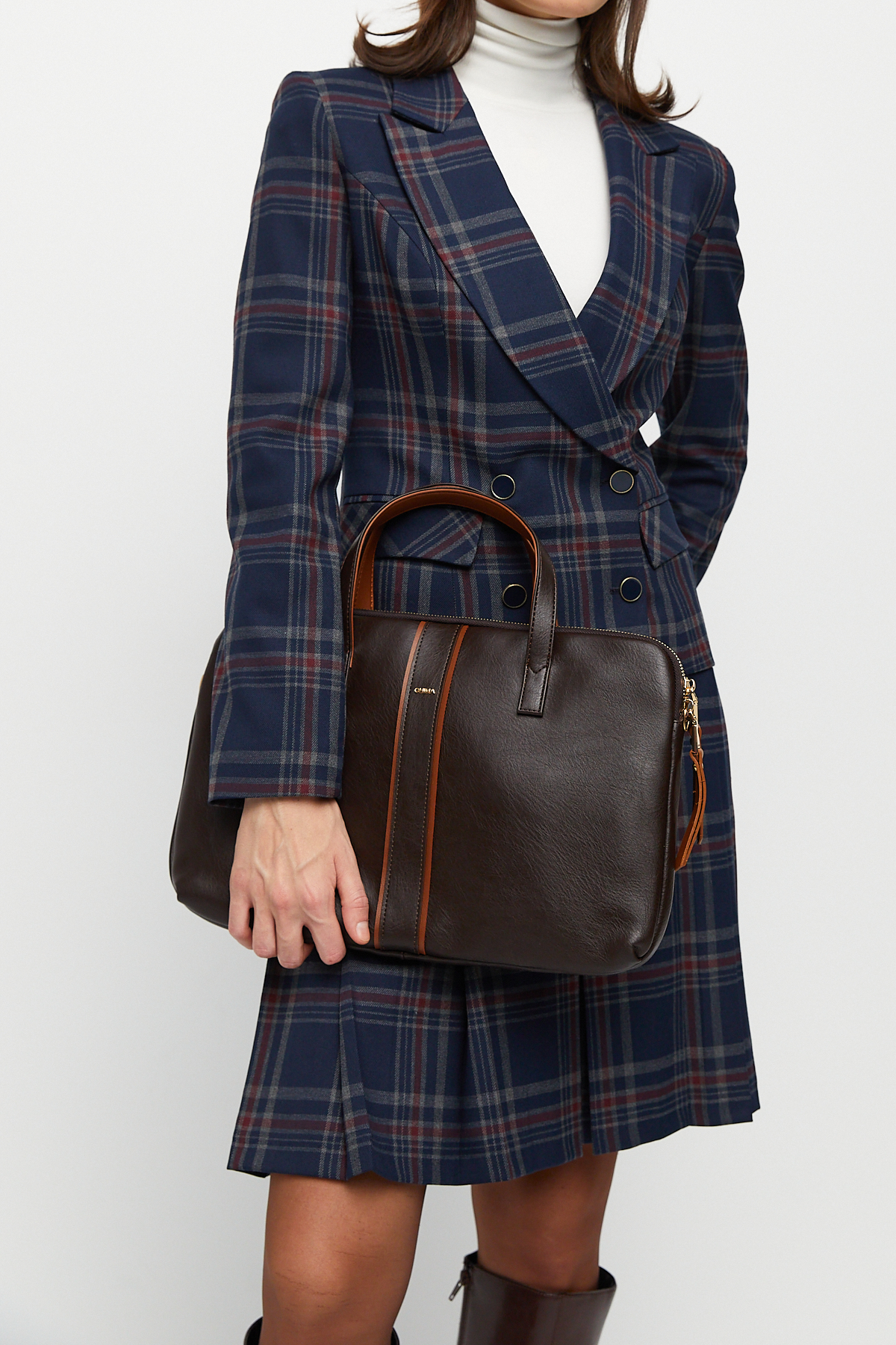 Minimalist Vurgular: Çantanın ortasındaki dikey dikiş detayı ve merkeze zarifçe yerleştirilmiş altın/metal logo plakası şıklığı pekiştirir.