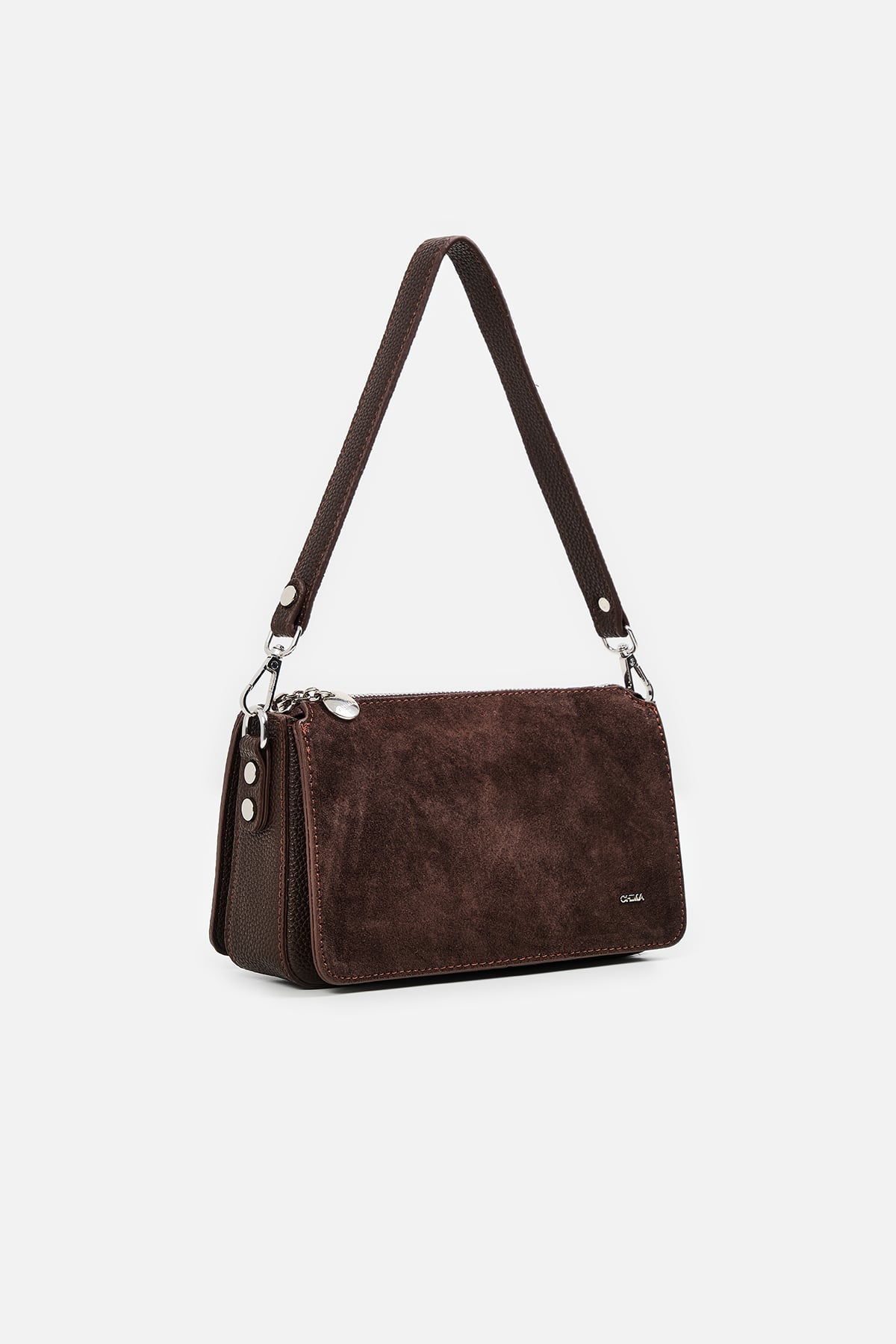 Bu zarif omuz çantası, yumuşak süet dokusu ve dikkat çekici metal detaylarıyla modern şıklığın sembolü. Kompakt yapısı ve doğal tonlarıyla her kıyafete uyum sağlar. Hem günlük kullanımda pratik bir çözüm sunar hem de özel anlarda elegan bir stil yaratır.