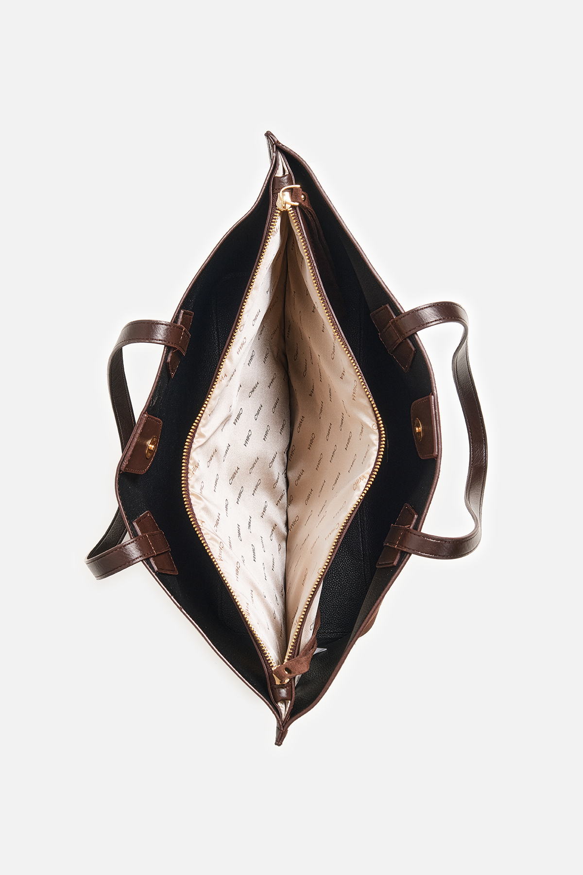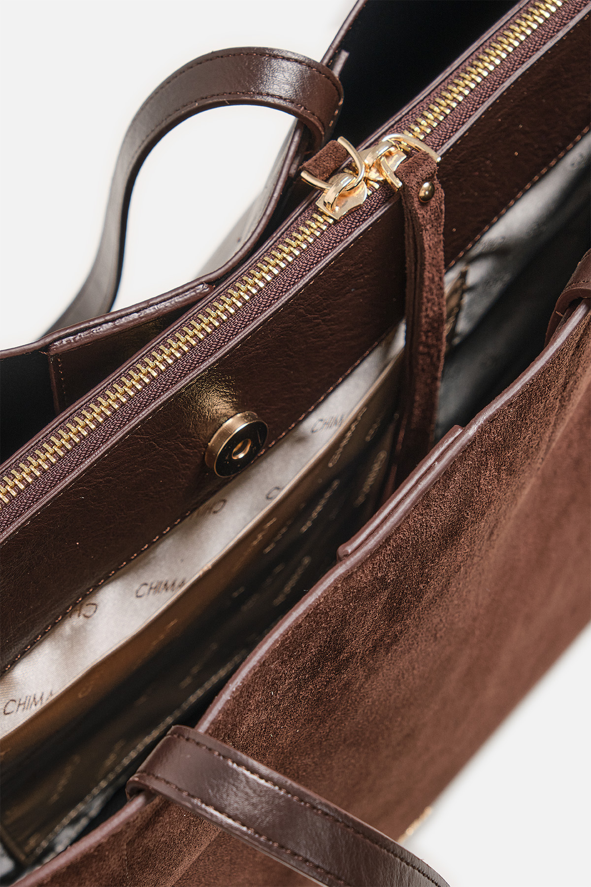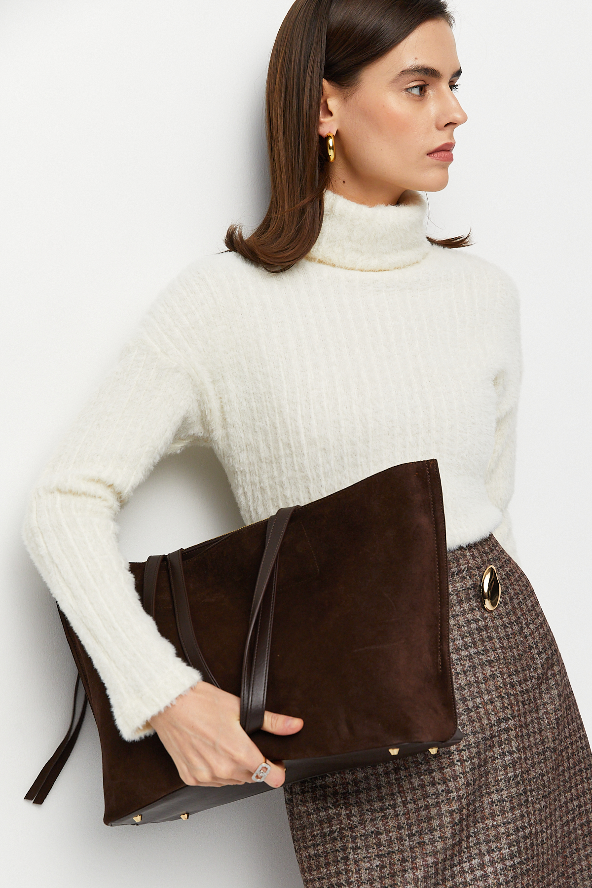 Bu büyük boy tasarım çanta, modern kadının hem ihtiyaç duyduğu (ve non-essentials) tüm eşyalarını zahmetsizce taşıması hem de stilini en üst seviyeye taşıması için tasarlandı. Çantanın ön yüzü gerçek süet ile kaplanmış olup, dokunulduğunda hissedilen kalite ve lüksü yansıtır.