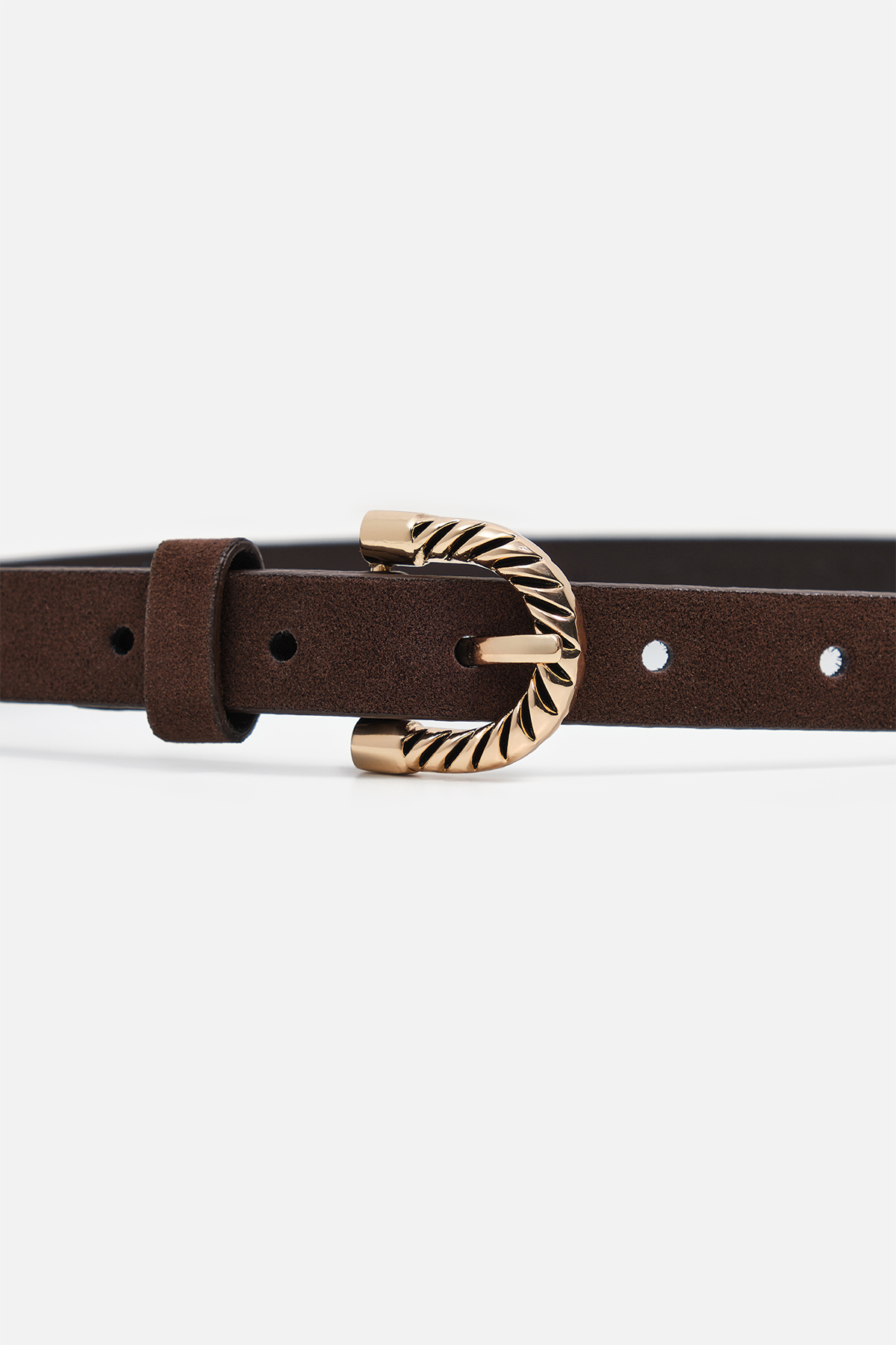 Zarafetin en sade haliyle buluştuğu bu bej süet kemer, minimal şıklığı sevenler için vazgeçilmez bir parça! Yumuşacık süet dokusuyla teninize dost, altın sarısı işlemeli metal tokasıyla ise göz kamaştırıcı. Her kombine zarif bir tamamlayıcı olacak şekilde tasarlandı.