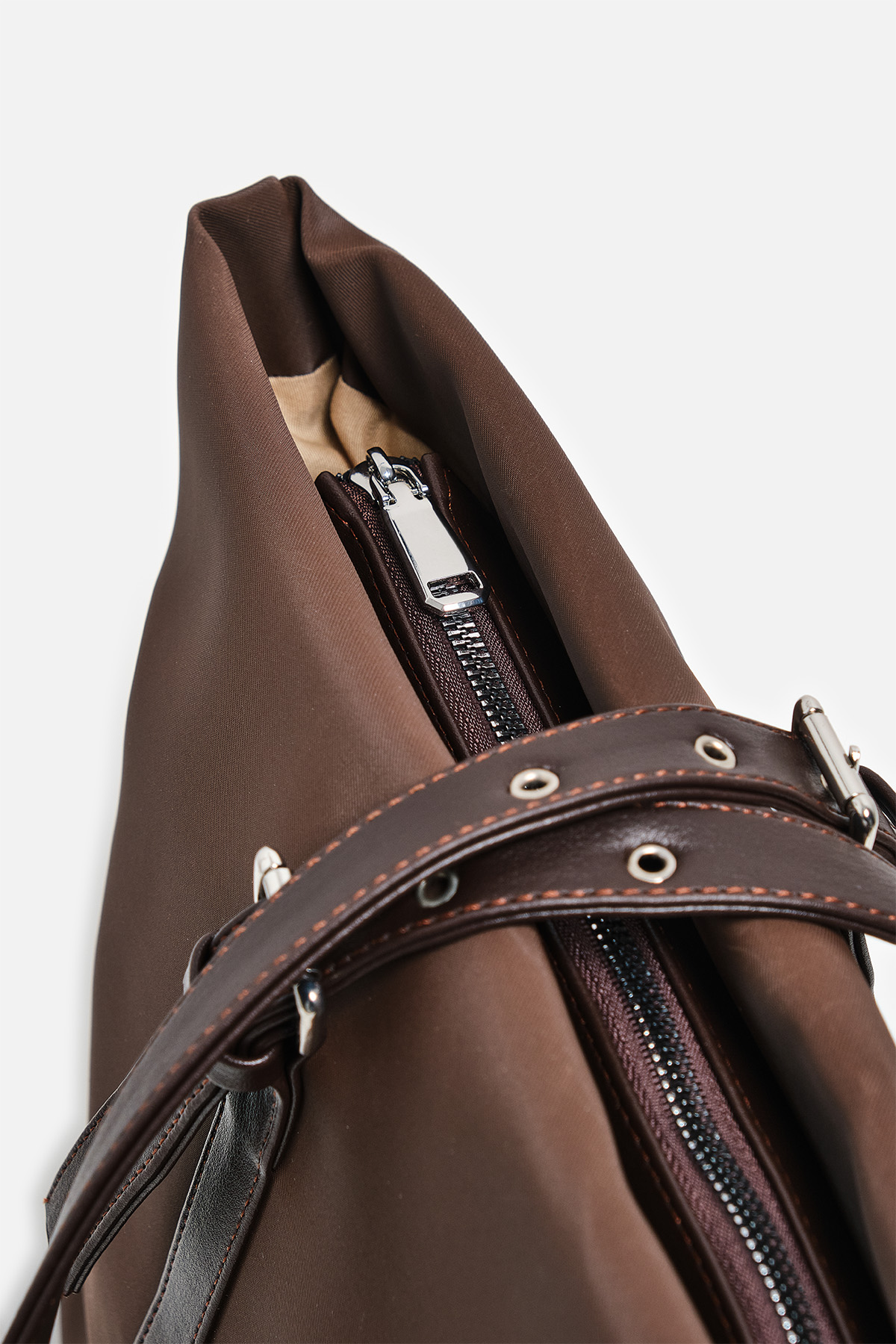 Ayarlanabilir Askı Detayı: Çantanın ön yüzünde uzanan kemer görünümlü askılar, metal tokaları ve kuşgözü detaylarıyla hem estetik bir hava katar hem de kullanım kolaylığı sağlar.
