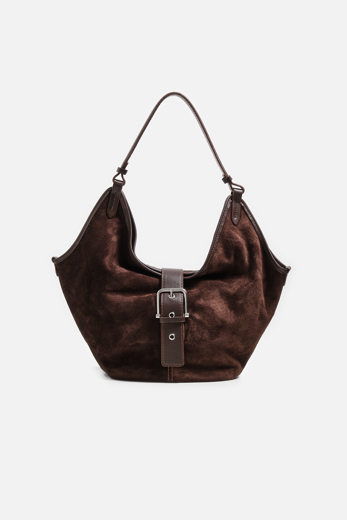 Kemer Tokalı Süet Omuz Çantası