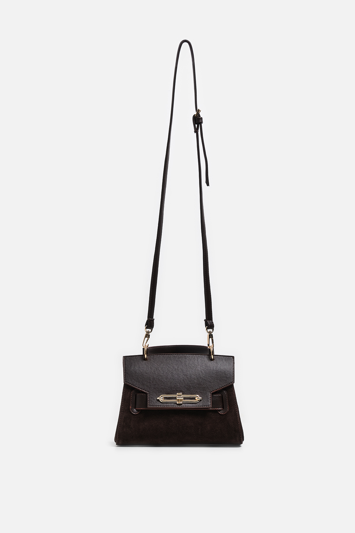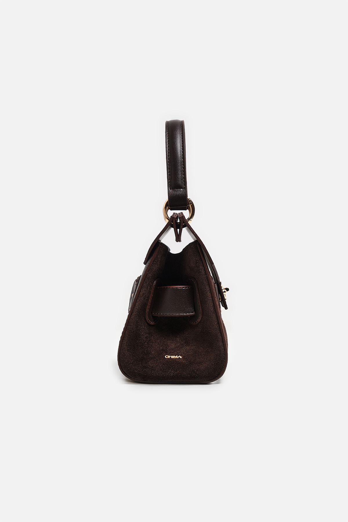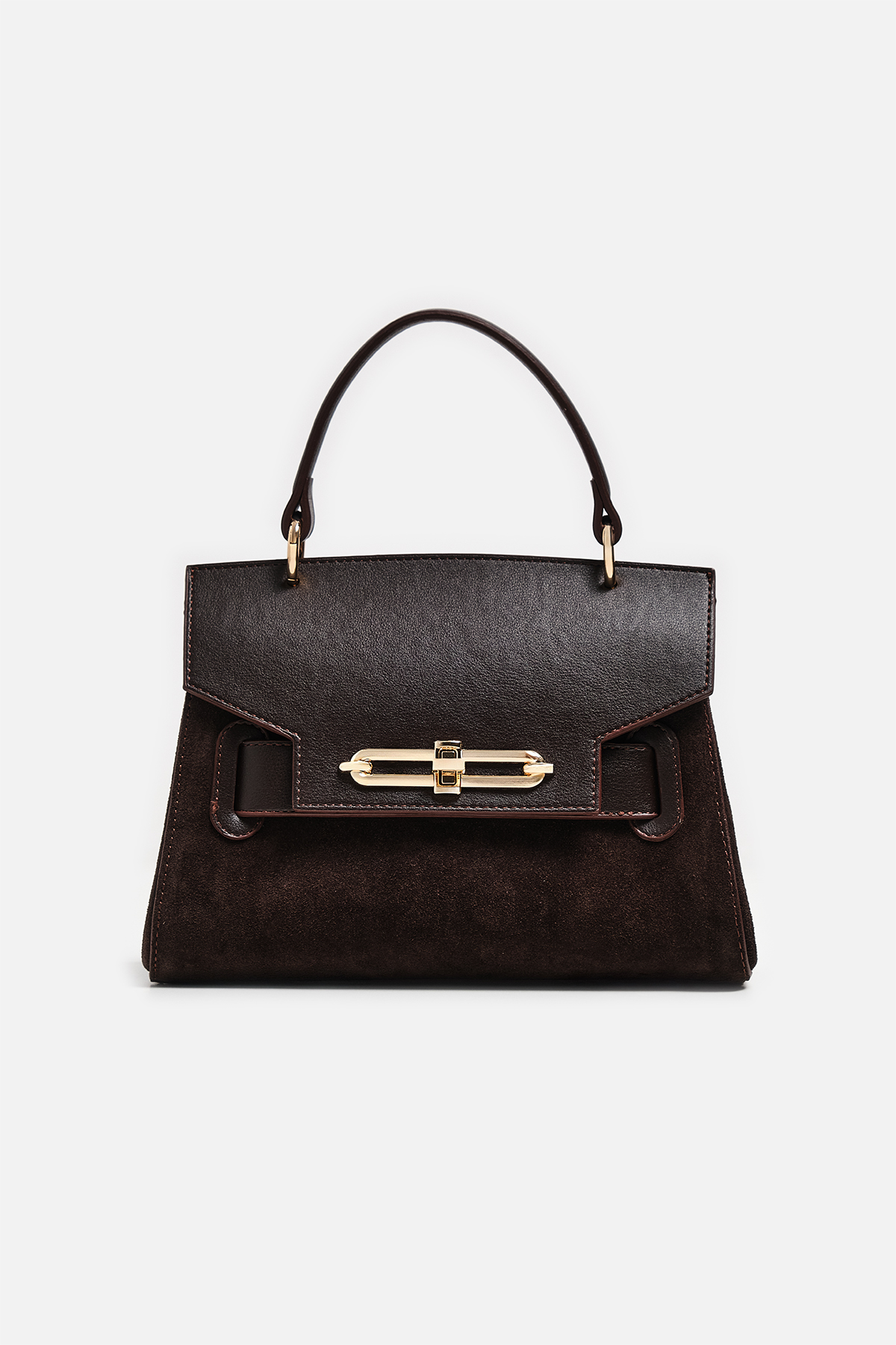 Zarif Doku Uyumu: Süet ve Deri Parçalardan Oluşan Küçük El Çantası