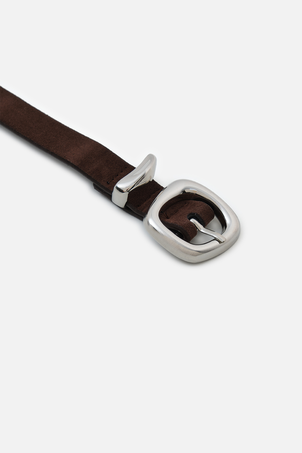 Derin tonlarıyla asaletin simgesi bu süet kemer, zarif ve zamansız bir stil sunar. Pürüzsüz dokusuyla teninize yumuşak bir temas sağlarken, gümüş rengi yuvarlak tokasıyla sofistike bir ışıltı katar. Her mevsim kullanılabilir, her kombine değer katar.