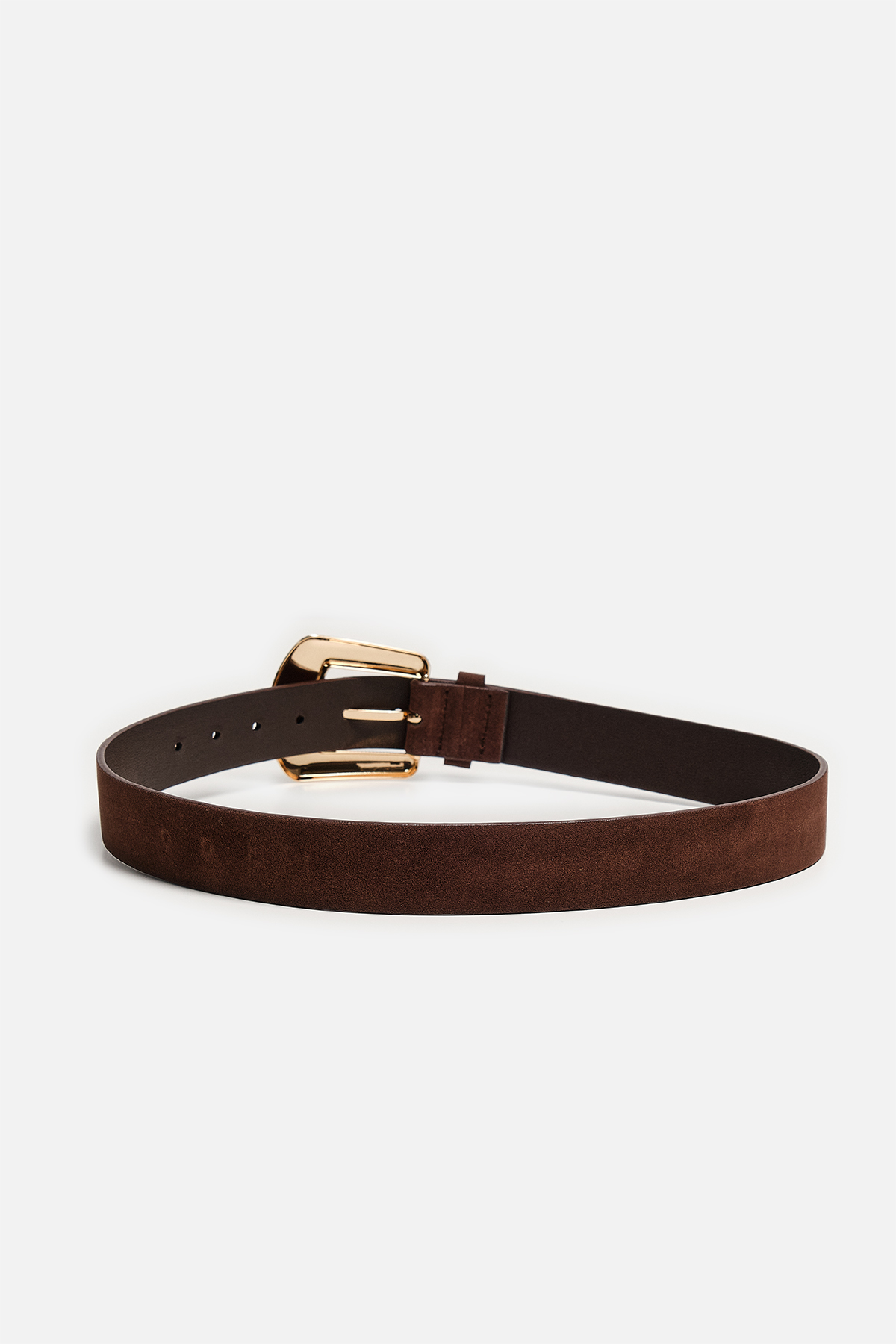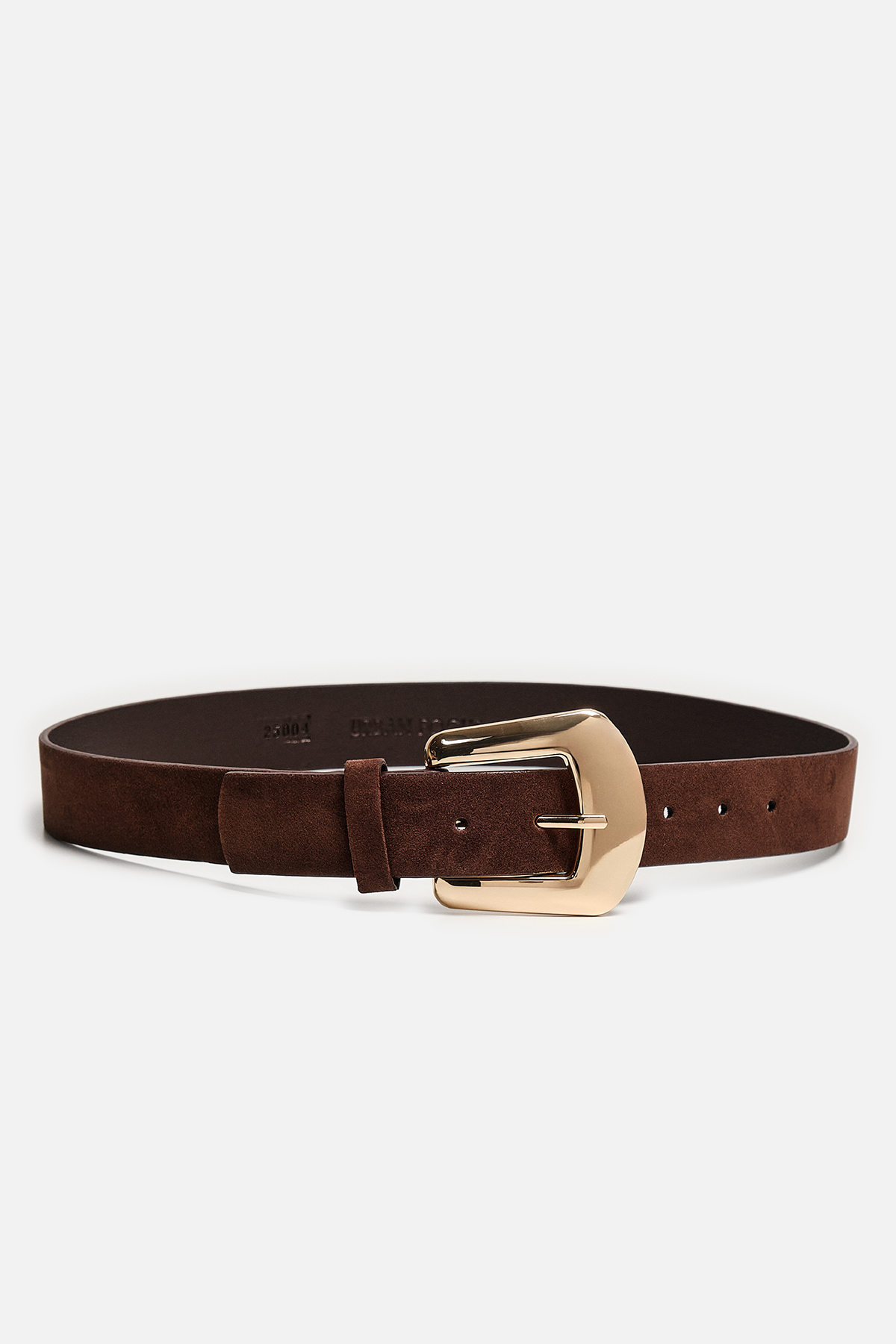 Derin renkleri ile asaletin ve gücün simgesi olan bu kemer, pürüzsüz süet dokusuyla teninize yumuşacık bir his verir. Parlak altın sarısı tokası, sade ama iddialı tasarımıyla her kombine lüks…