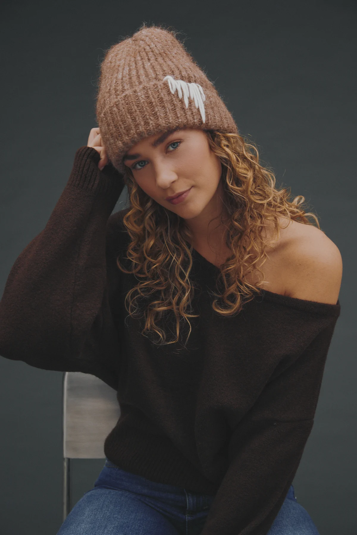 Kışın en tatlı isyanı: Kalın yün örgüsüyle sıcacık saran bu bere, ekru, kahve, pembe ya da siyah rengiyle minimalizmin kraliçesi. Kenardaki el nakışı dripping detay tek kelimeyle cool. Katla, yana yatır ya da düz tak; oversized paltoyla da, deri ceketle de anında sokak stilinin yıldızı olursun.