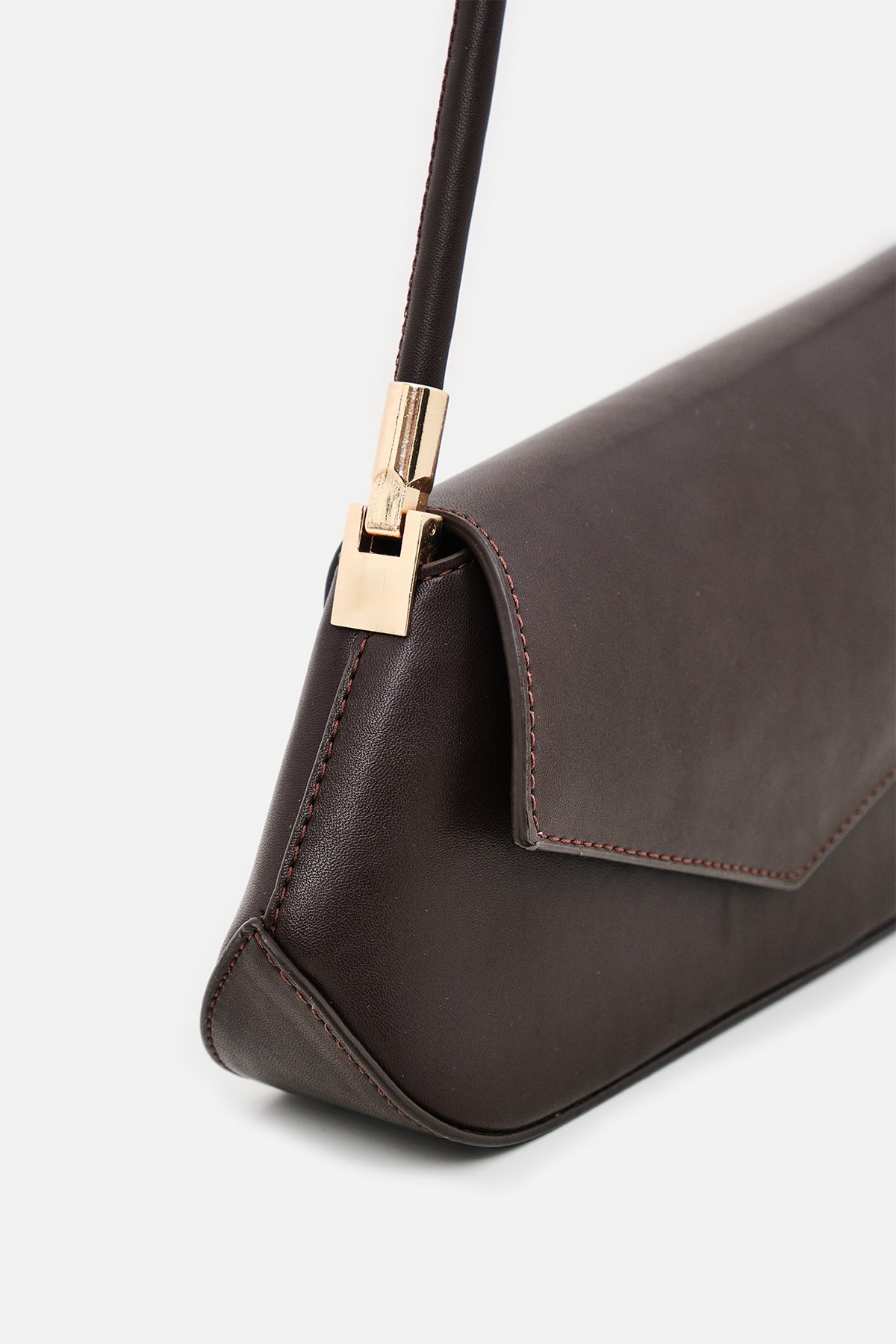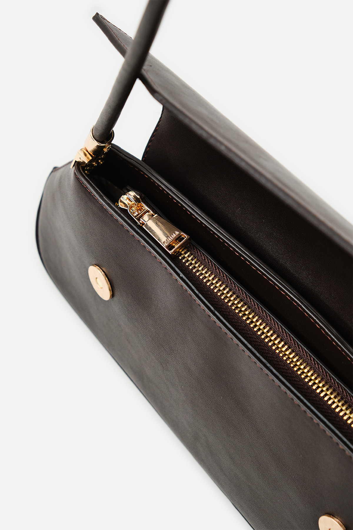 Yumuşak dokulu suni deri. Asimetrik ön kapak tasarımlı. Baget omuz çantası. Altın rengi metal detaylar. Tek tutma saplı. Mıknatıslı kapamalı, fermuarlı, astarlı çanta.