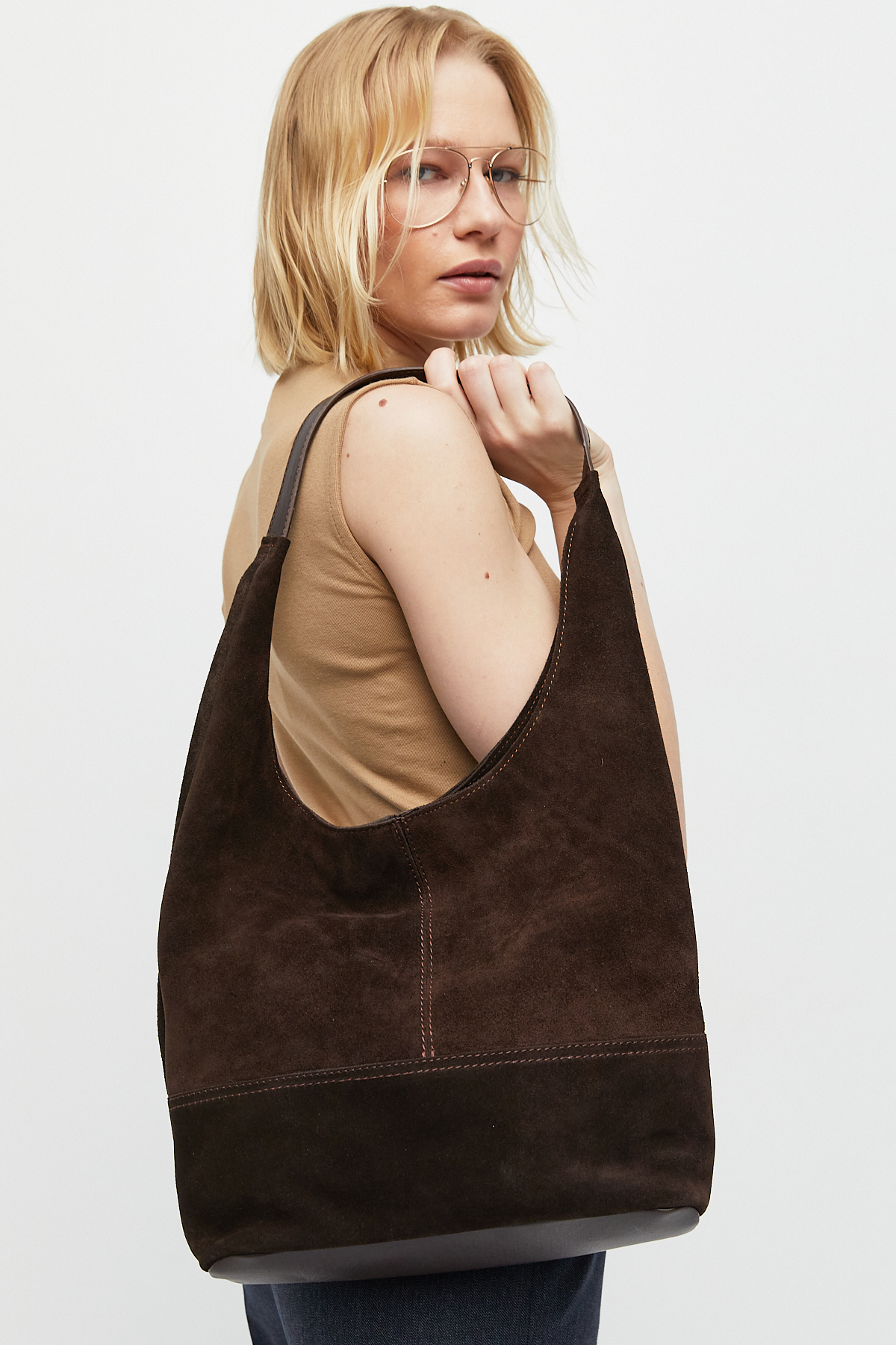 Zarafeti ve fonksiyonelliği bir araya getiren bu özel tasarım, gerçek süet dokusunun sunduğu yumuşaklık ve lüks hissiyat ile günlük stilinizin vazgeçilmezi olacak. Şehir hayatının dinamizmine uyum sağlayan geniş iç hacmi ve minimalist çizgileriyle her kombine sofistike bir dokunuş katar.