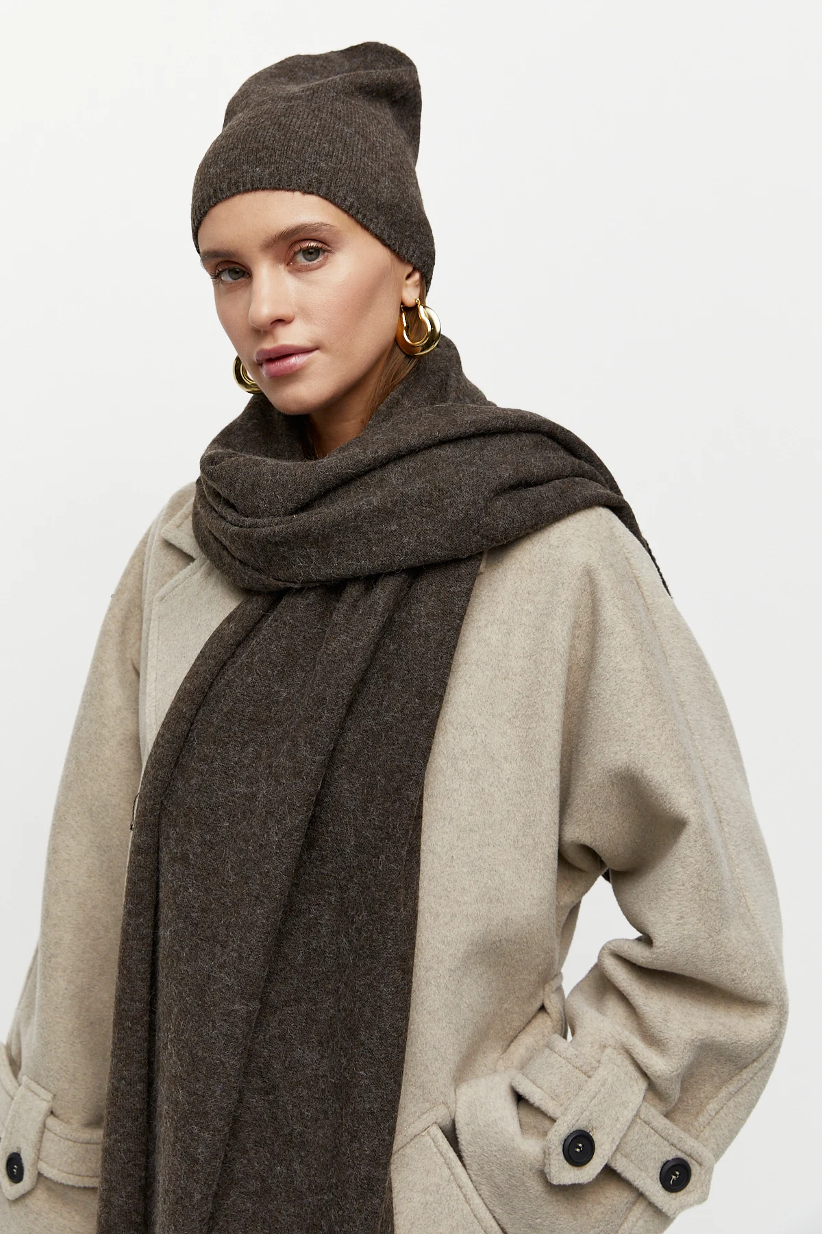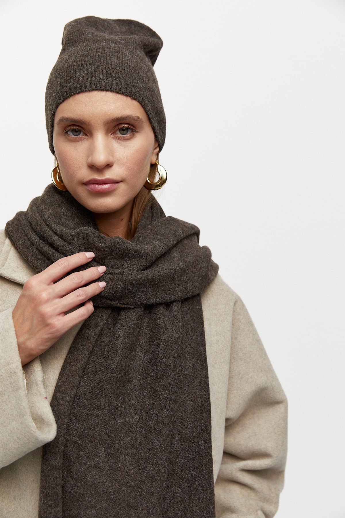 Yumuşak yün karışımlı dokusuyla soğuk günlere sıcak bir zarafet katan bere ve atkı seti. Düz örgü tasarımı, katlanabilir bere kenarı ve uzun atkı siluetiyle minimalist ama etkileyici. Kum beji, antrasit ve kahverengi melanj tonlarıyla her kombine uyum sağlar siyah deri ceketle modern, camel paltoyla klasik, oversize kazakla rahat ºı?k. Zamansı?z parçalarla yaratı?lan kombinlerde baºrolde: hem günlük hem özel anlarda yı?llarca vazgeçemeyeceğ?iniz bir tamamlayı?cı?.