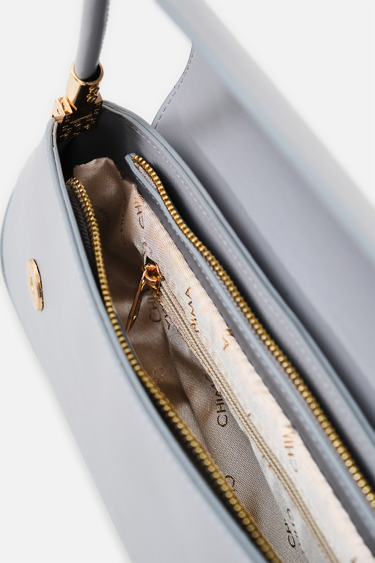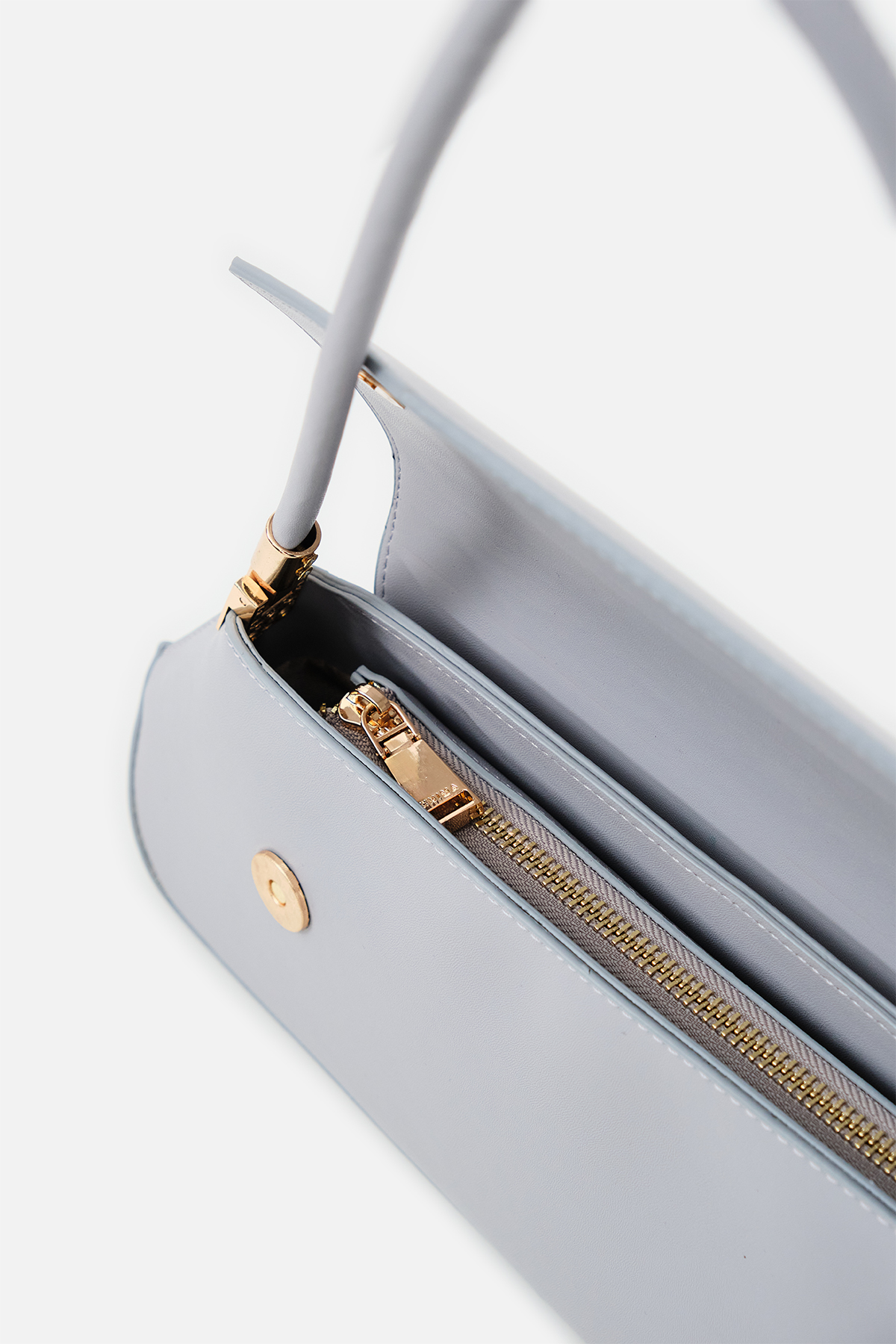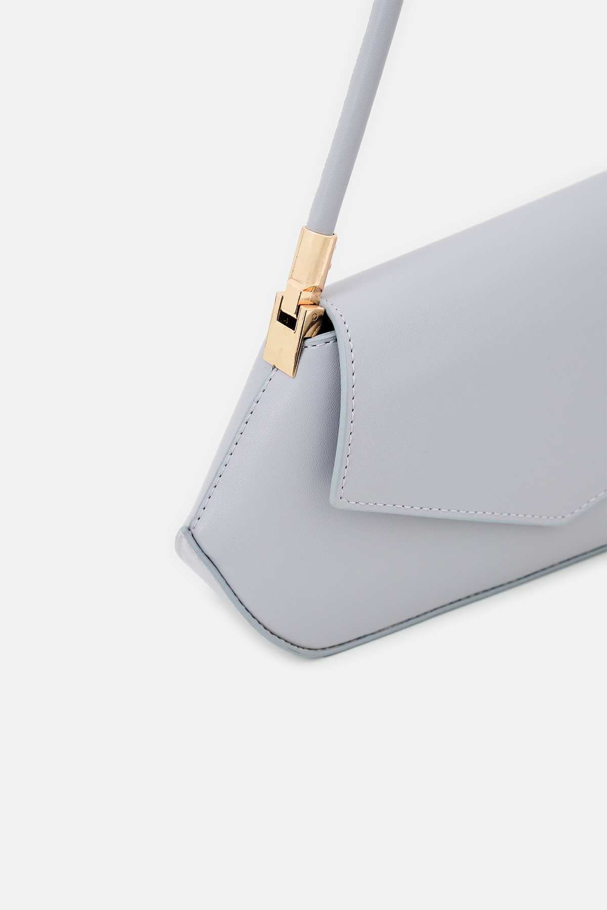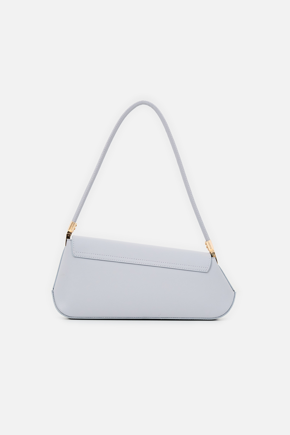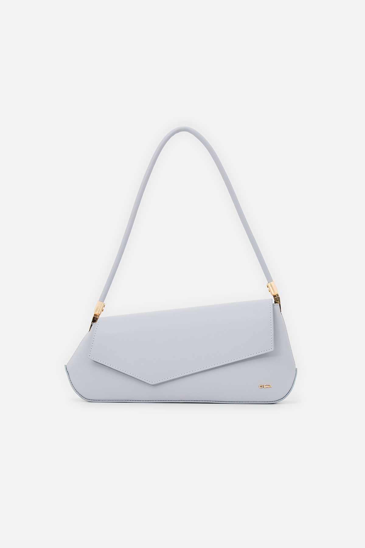 Yumuşak dokulu suni deri. Asimetrik ön kapak tasarımlı. Baget omuz çantası. Altın rengi metal detaylar. Tek tutma saplı. Mıknatıslı kapamalı, fermuarlı, astarlı çanta.