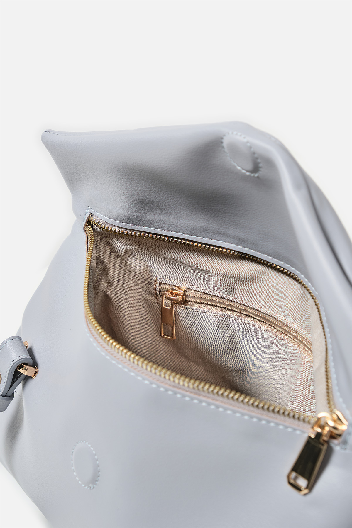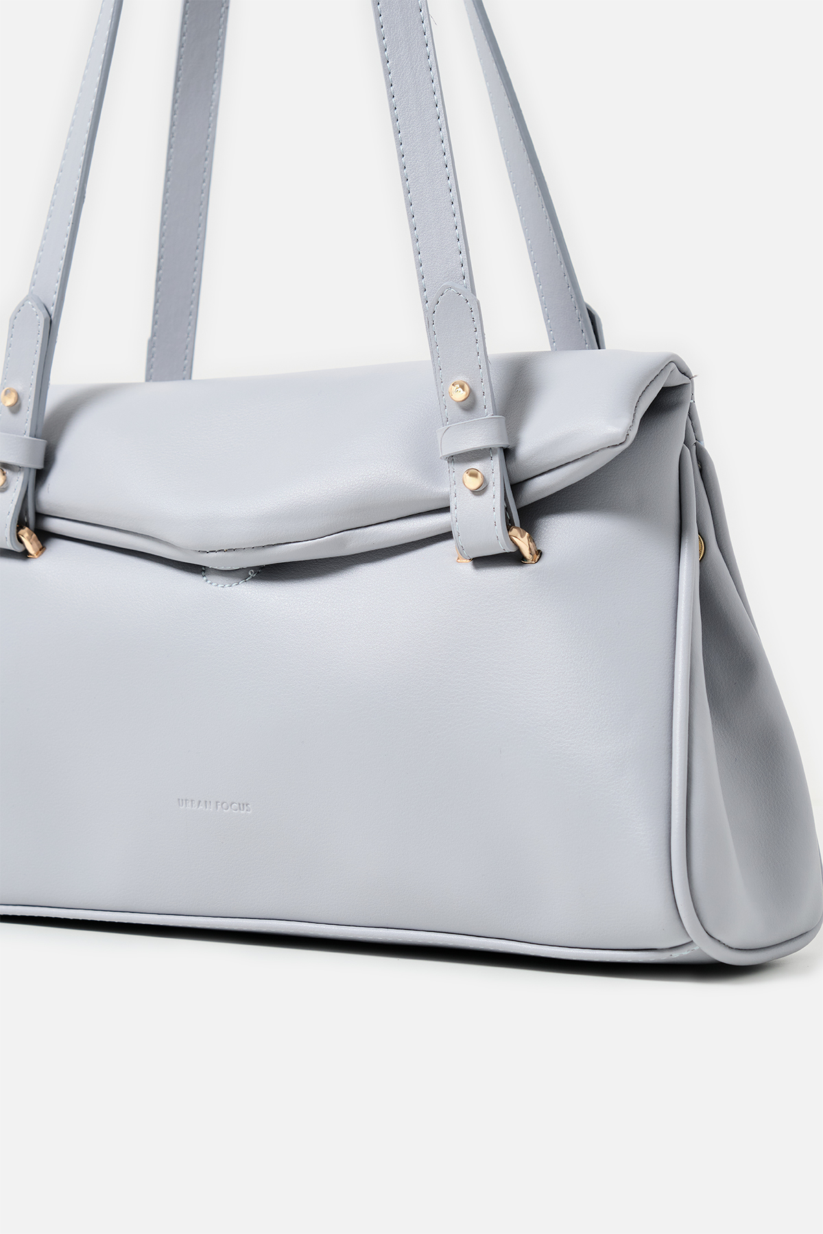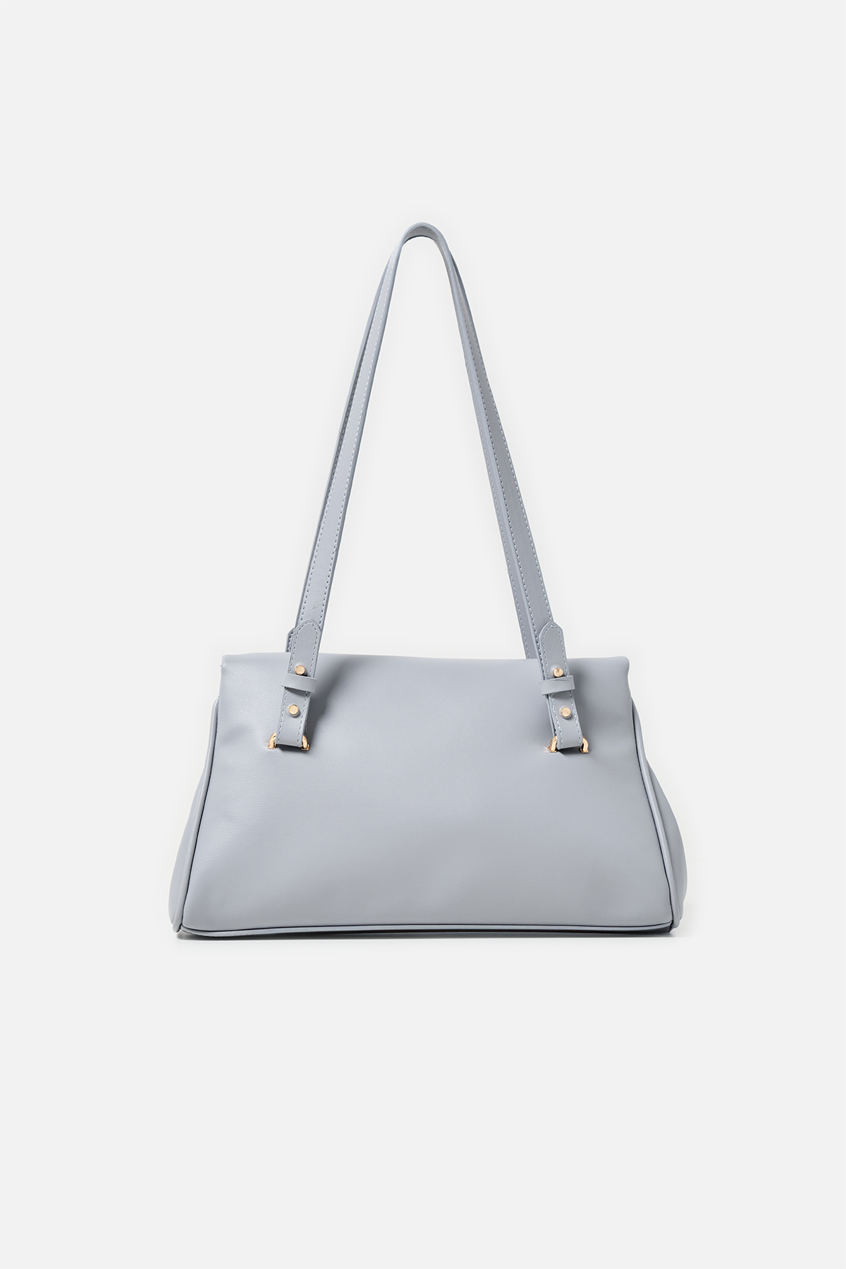 Yumuşak dokulu suni deri. Çift tutma saplı omuz çantası. Altın rengi metal detaylar. Mıknatıslı kapamalı. Fermuarlı, astarlı iç cepli.