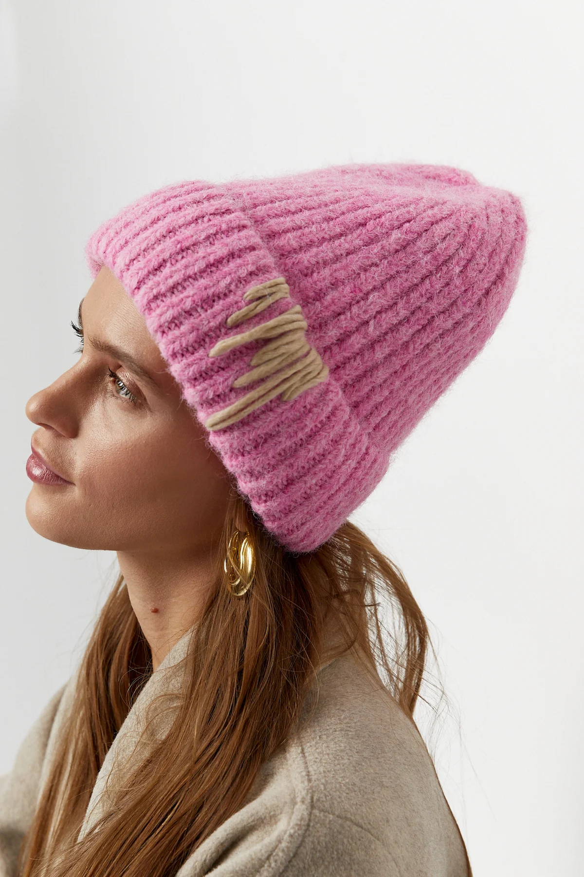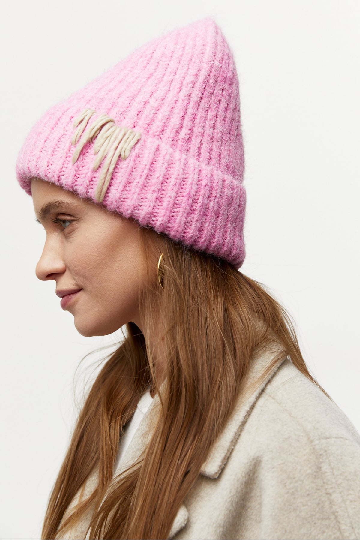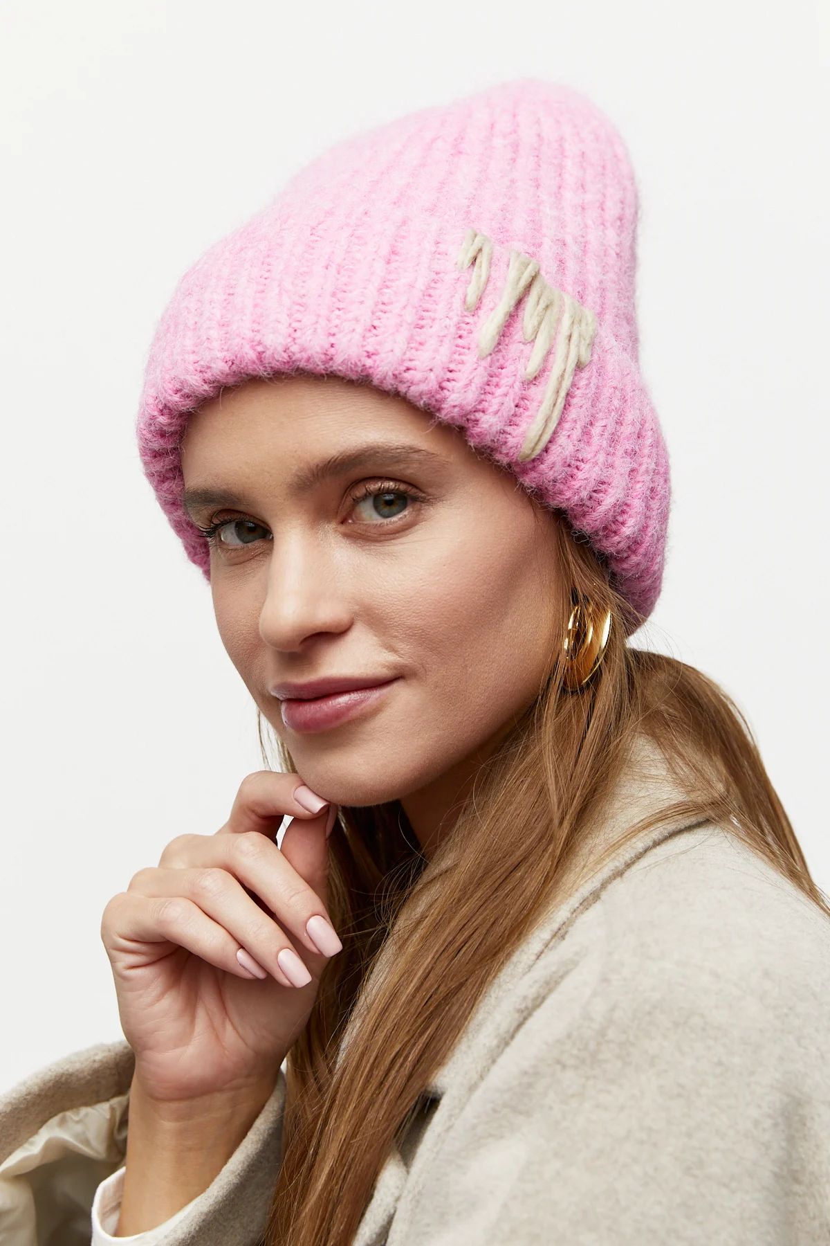 Kışın en tatlı isyanı: Kalın yün örgüsüyle sıcacık saran bu bere, ekru, kahve, pembe ya da siyah rengiyle minimalizmin kraliçesi. Kenardaki el nakışı dripping detay tek kelimeyle cool. Katla, yana yatır ya da düz tak; oversized paltoyla da, deri ceketle de anında sokak stilinin yıldızı olursun.
