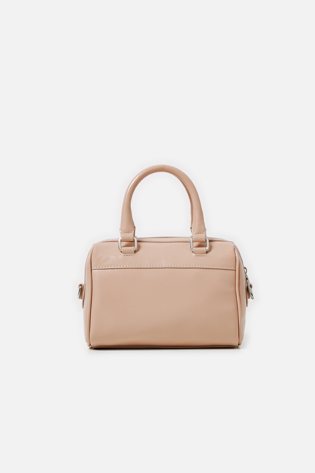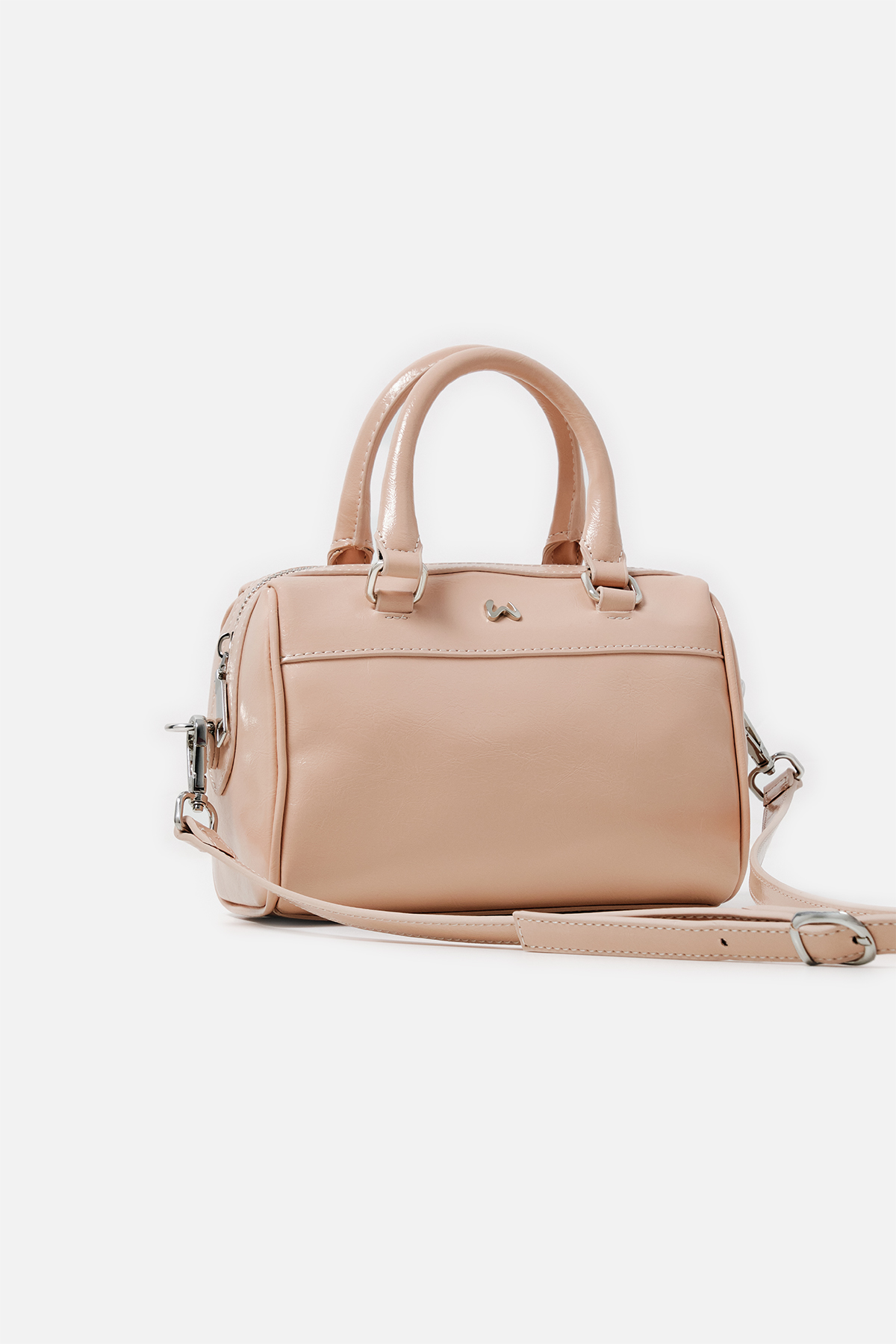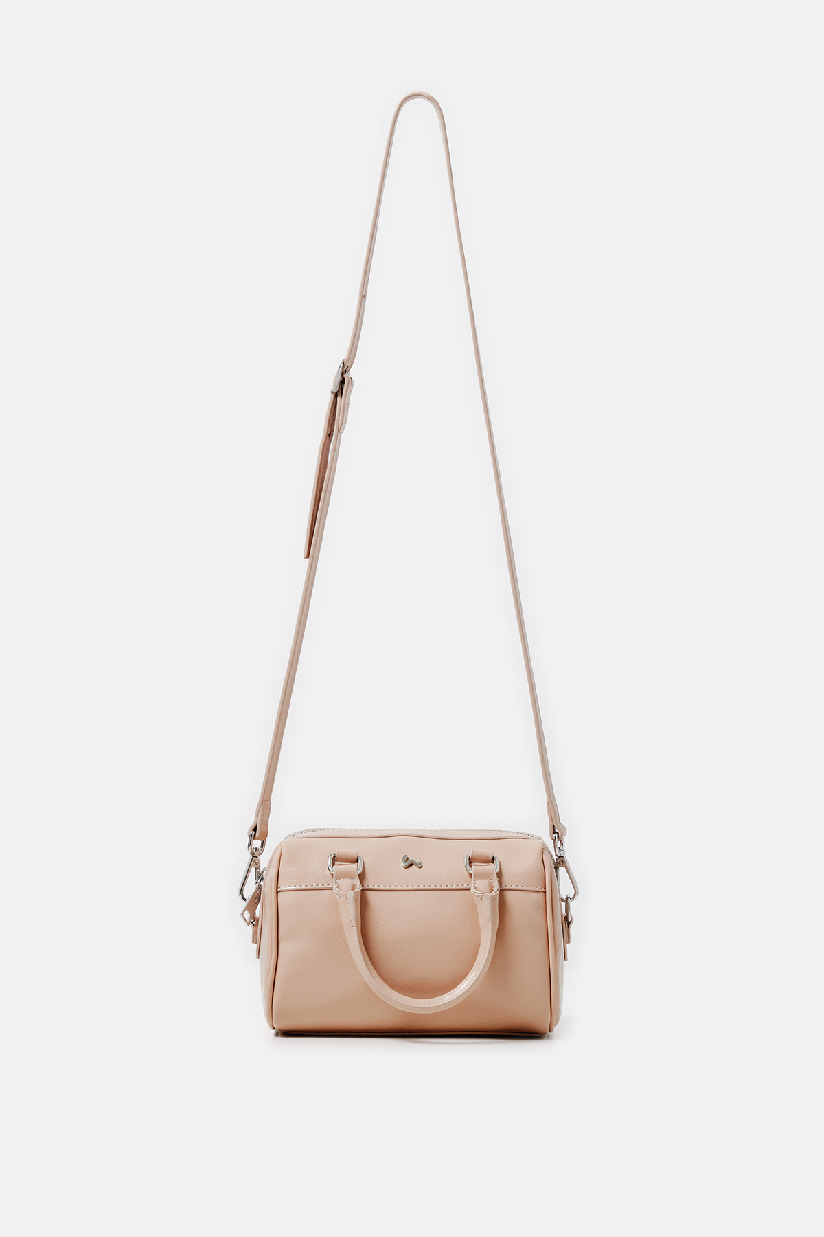Mat yumuşak suni deriden çapraz askılı mini çanta. Gümüş rengi aksesuar detaylar. Fermuarlı,astarlı,iç cepli. Ayarlanabilir çapraz askı eklentili çanta
