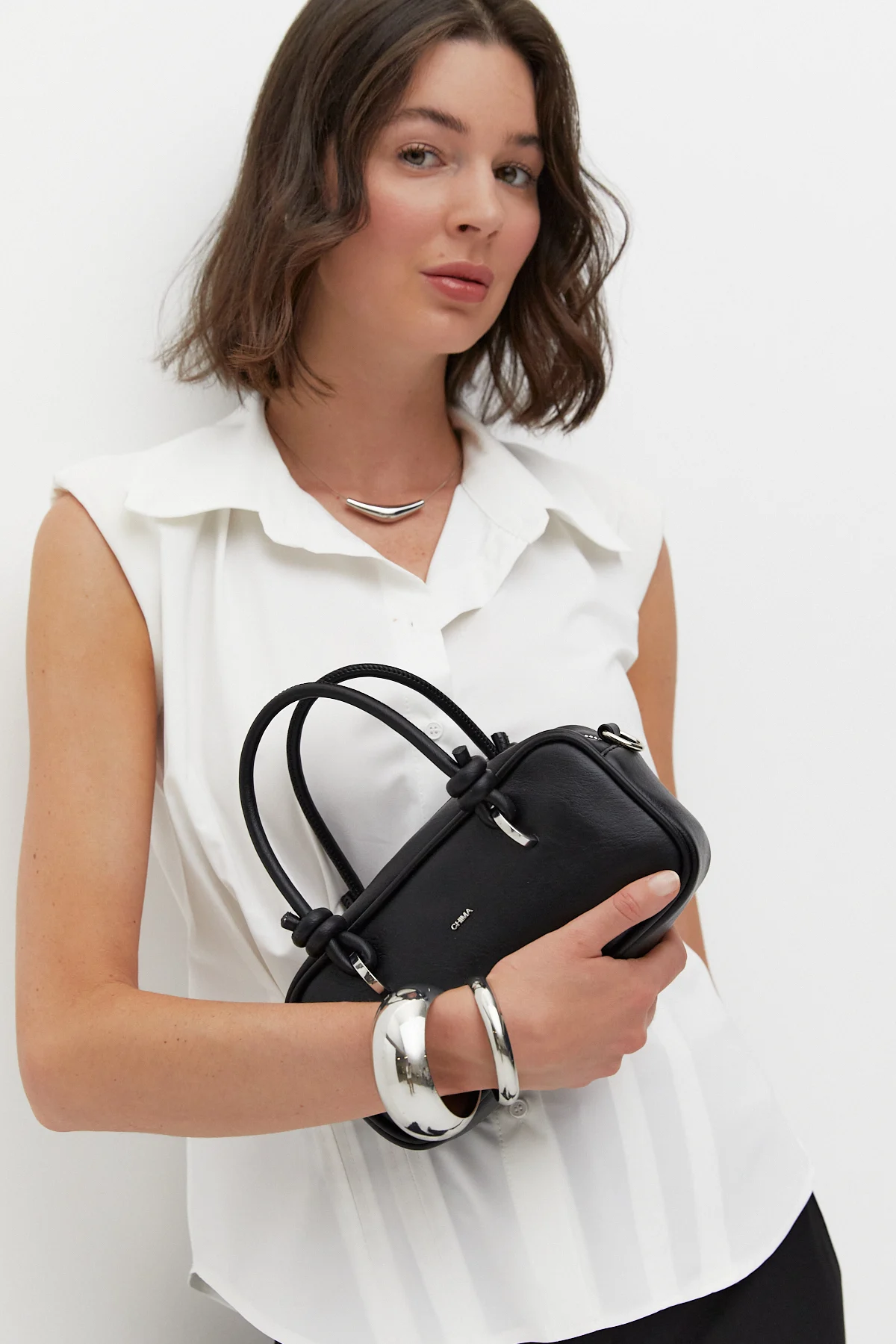 Yumuşak dokulu suni deri kumaştan üretilmiş bu mini el çantası, zarif düğüm detayları ve modern siluetiyle her kombine sofistike bir dokunuş katar.