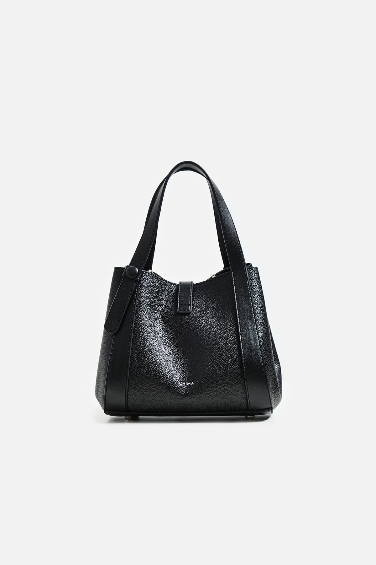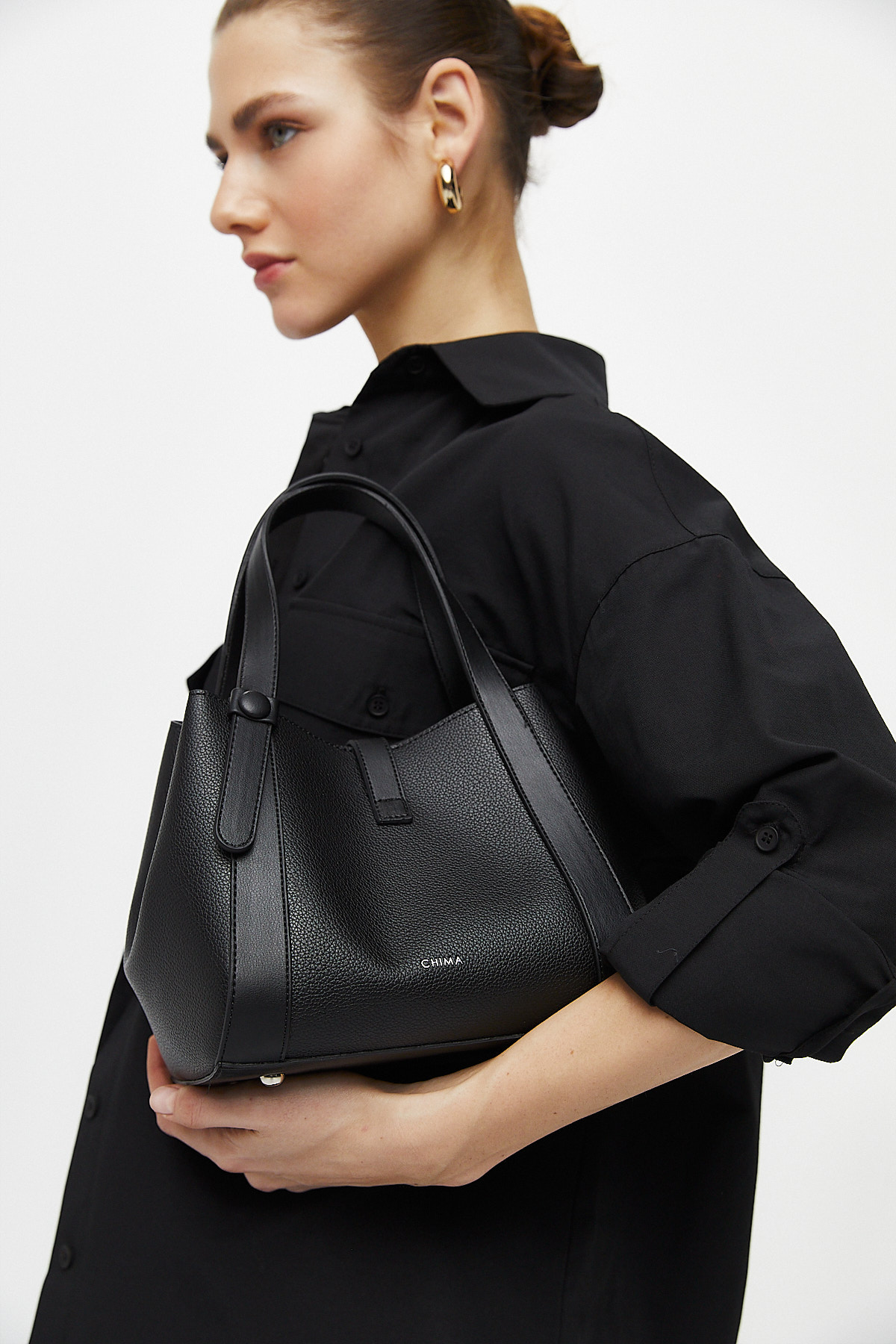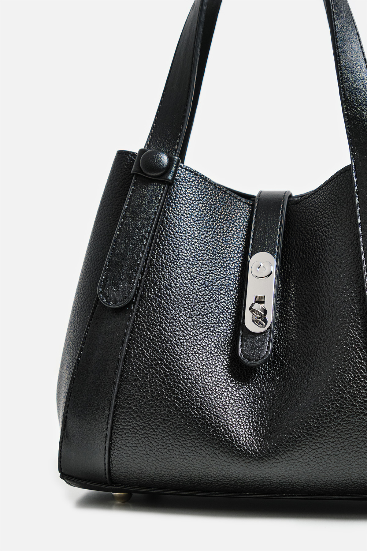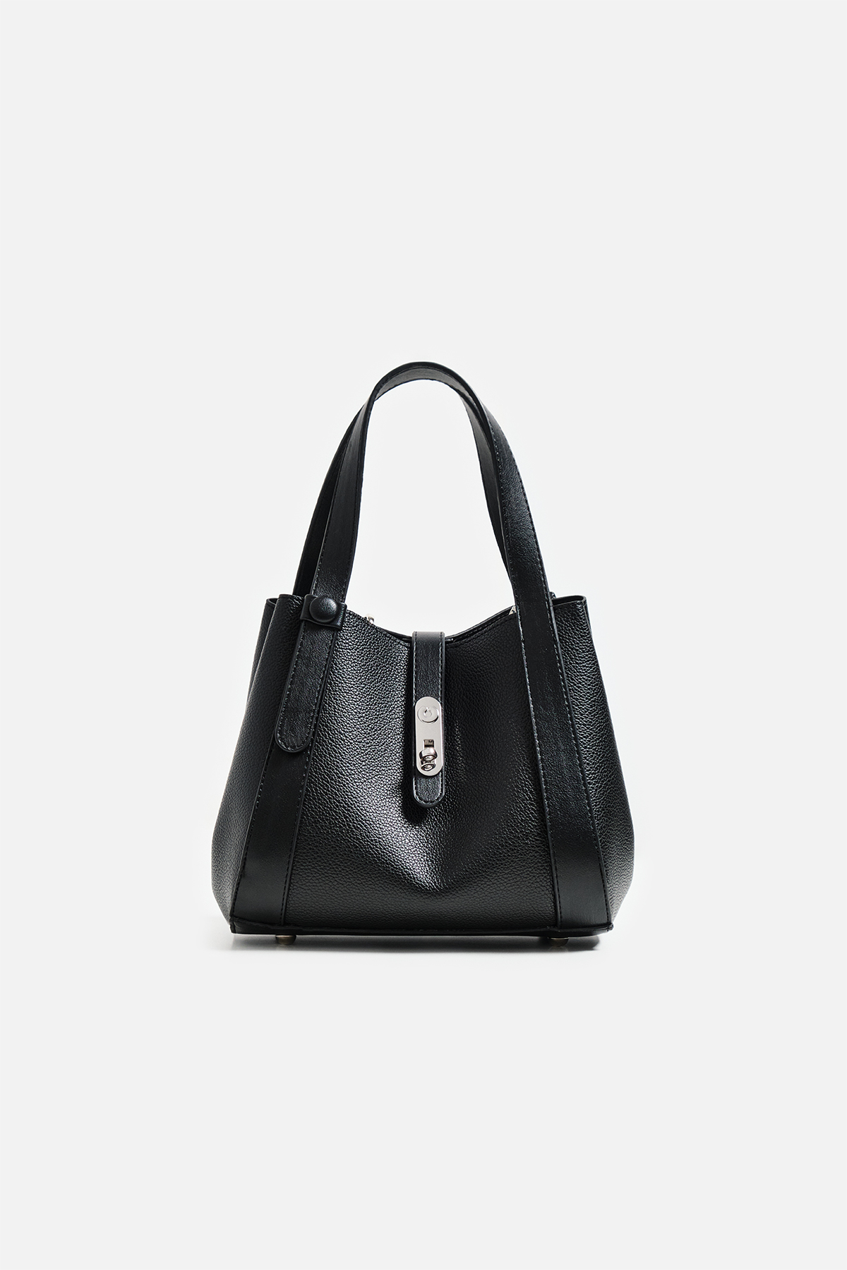 Dokulu suni deriden çıkarılabilir çapraz askılı ön kısmında metal toka detaylı iç yavrusu bulunan el çantası