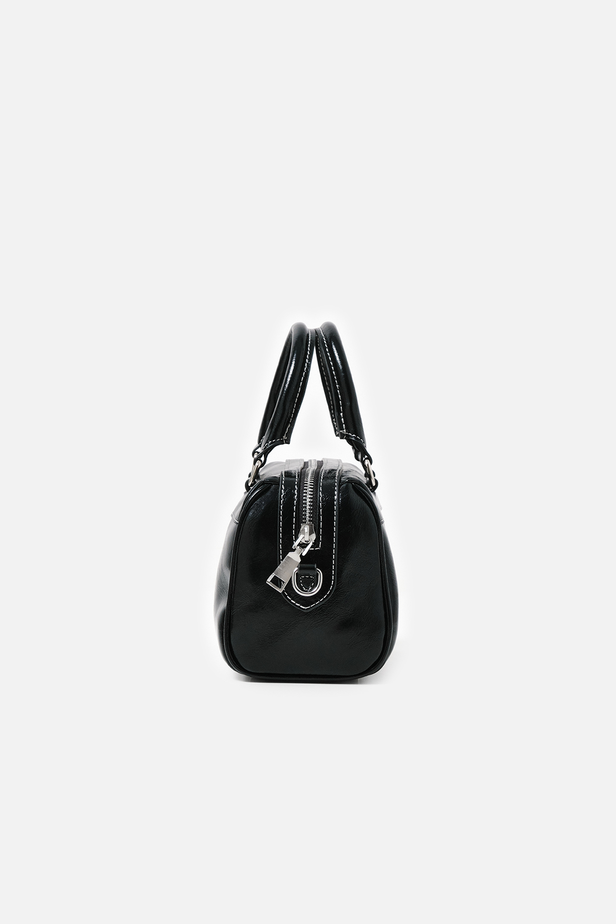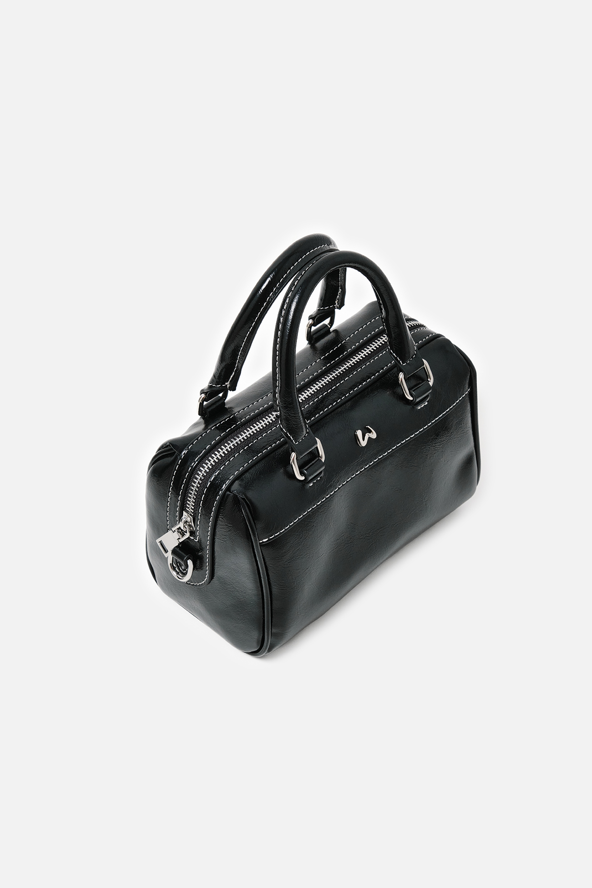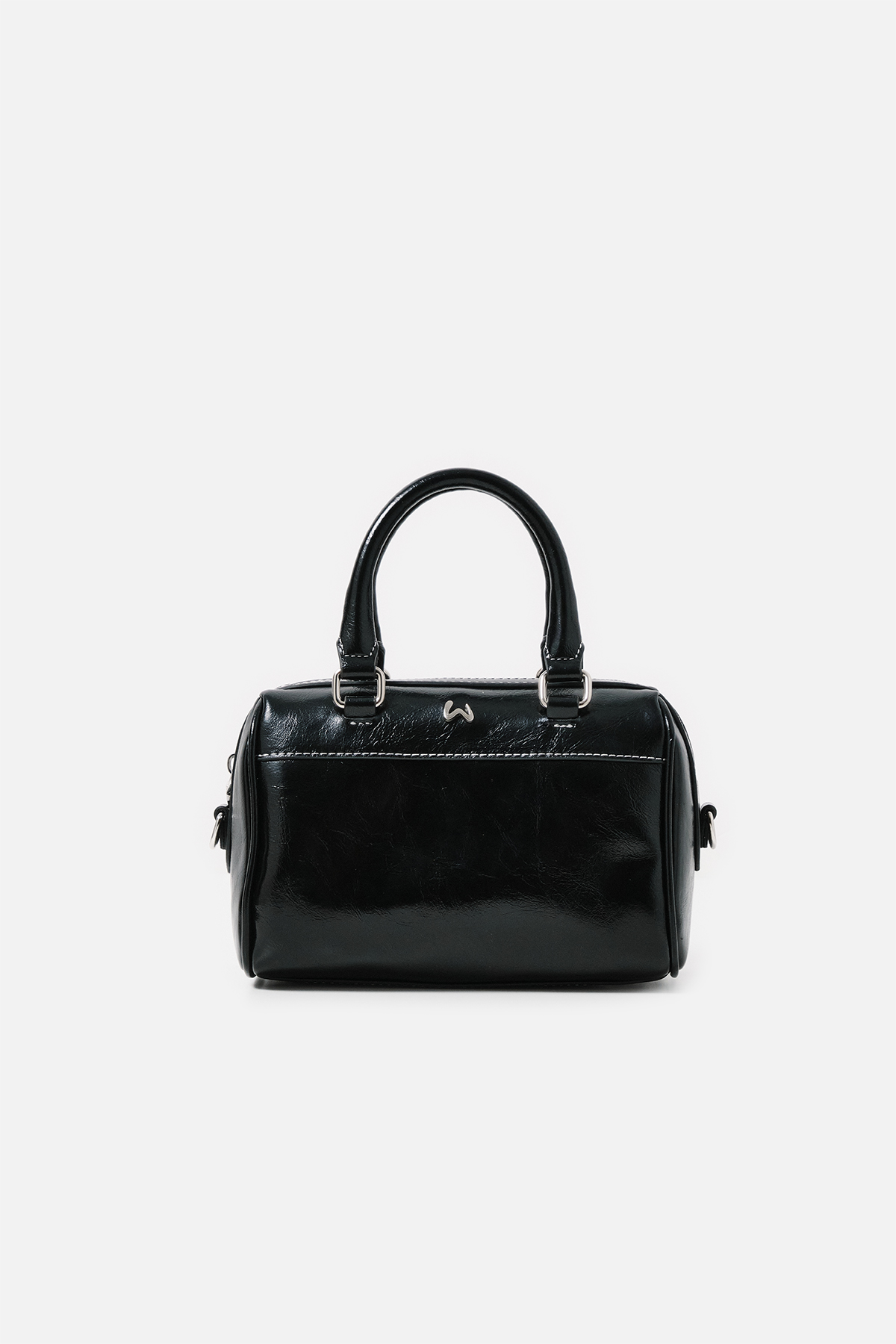 Mat yumuşak suni deriden çapraz askılı mini çanta. Gümüş rengi aksesuar detaylar. Fermuarlı,astarlı,iç cepli. Ayarlanabilir çapraz askı eklentili çanta