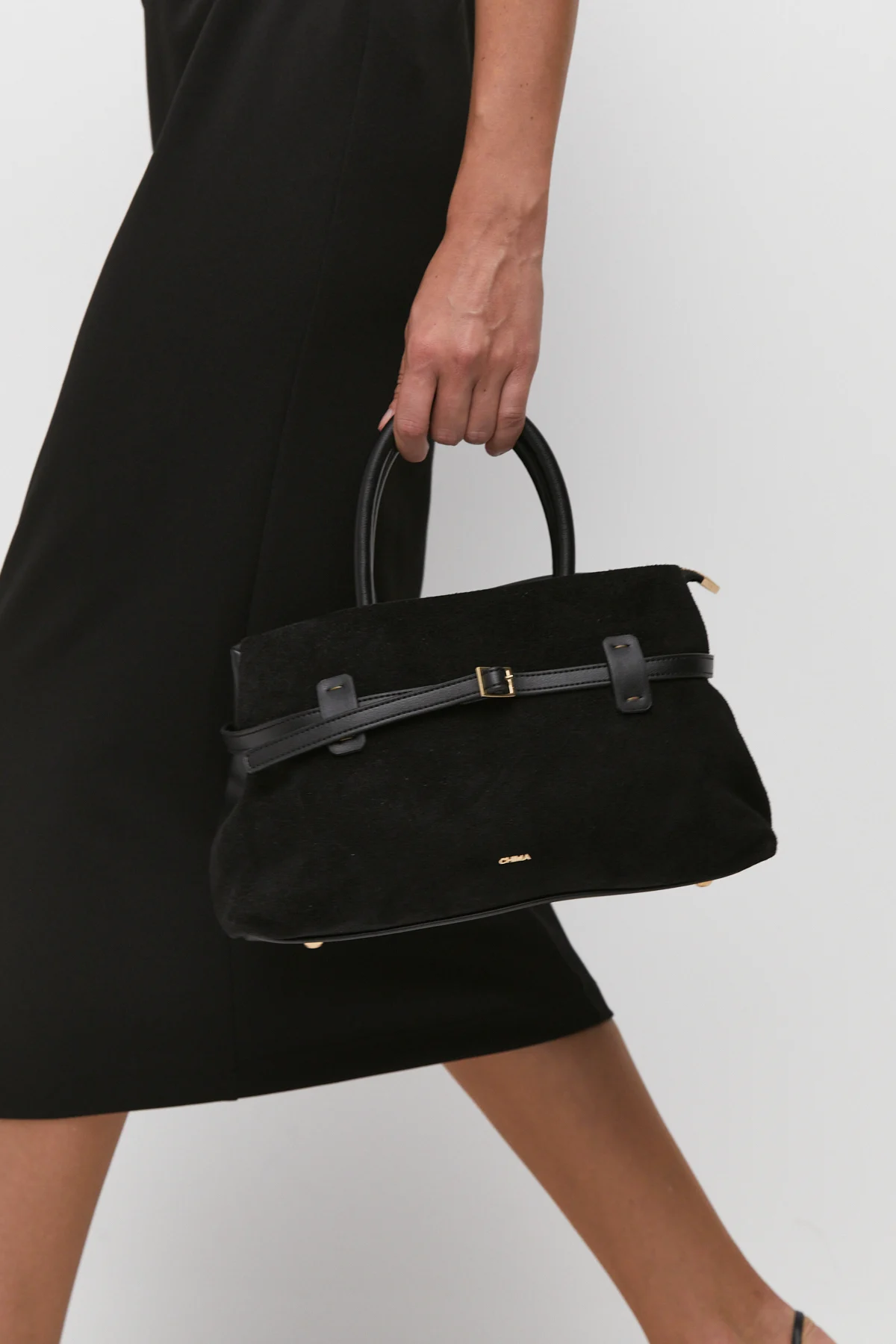 Zarif tasarımıyla dikkat çeken bu çanta, ön yüzünde kullanılan gerçek süet dokusuyla lüks bir görünüm ve doğal bir his sunar. Yumuşak dokusuyla şıklığı öne çıkarırken, sağlam deri detayları günlük kullanıma dayanıklılık katar. Elde ya da omuzda rahat taşınabilen tasarımıyla işlevsellik ve stil bir arada. Siyah, kahverengi ve taba renk seçenekleriyle her kombine sofistike bir dokunuş sağlar.