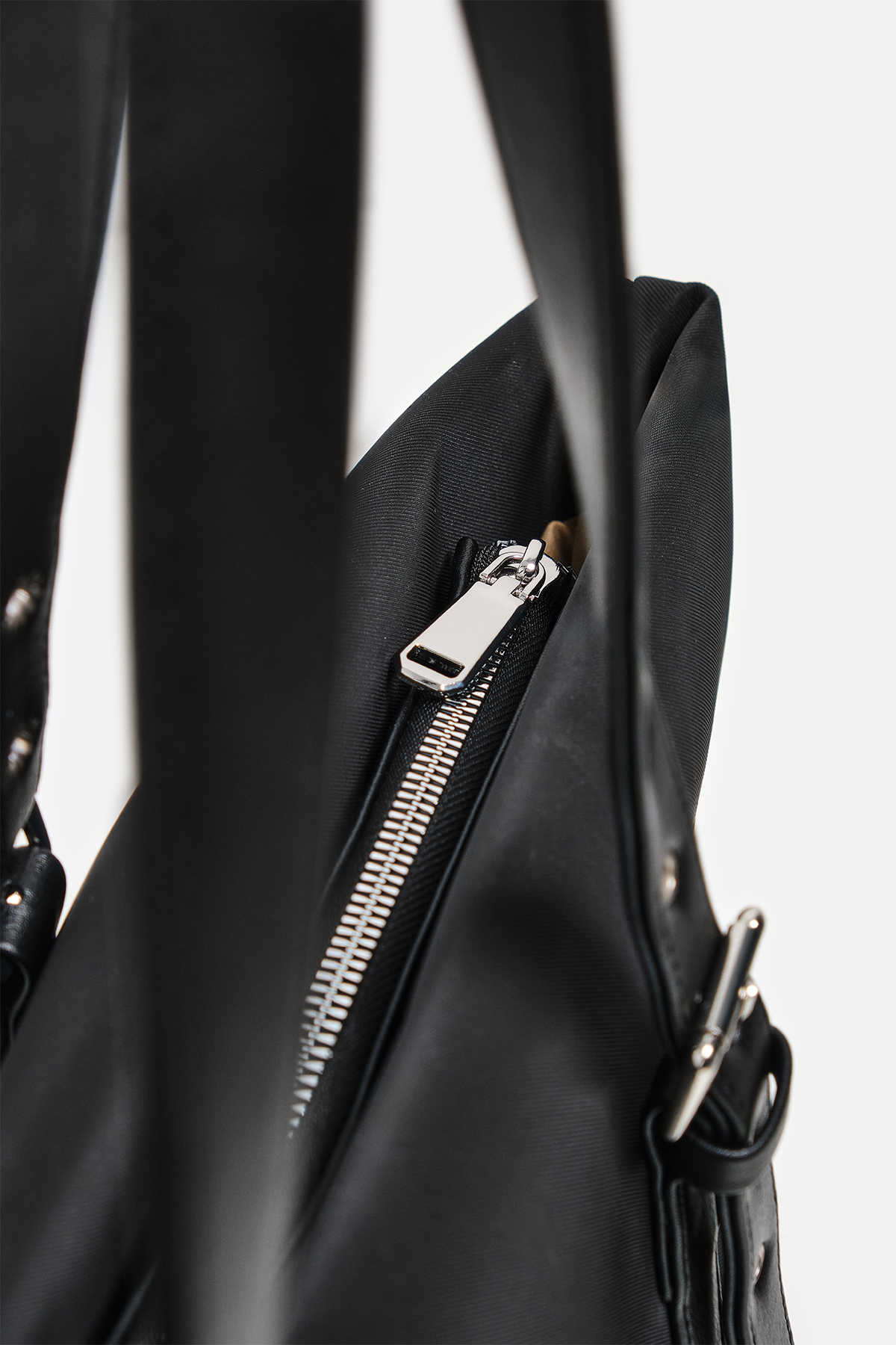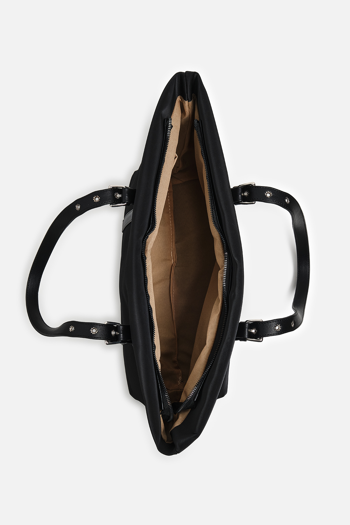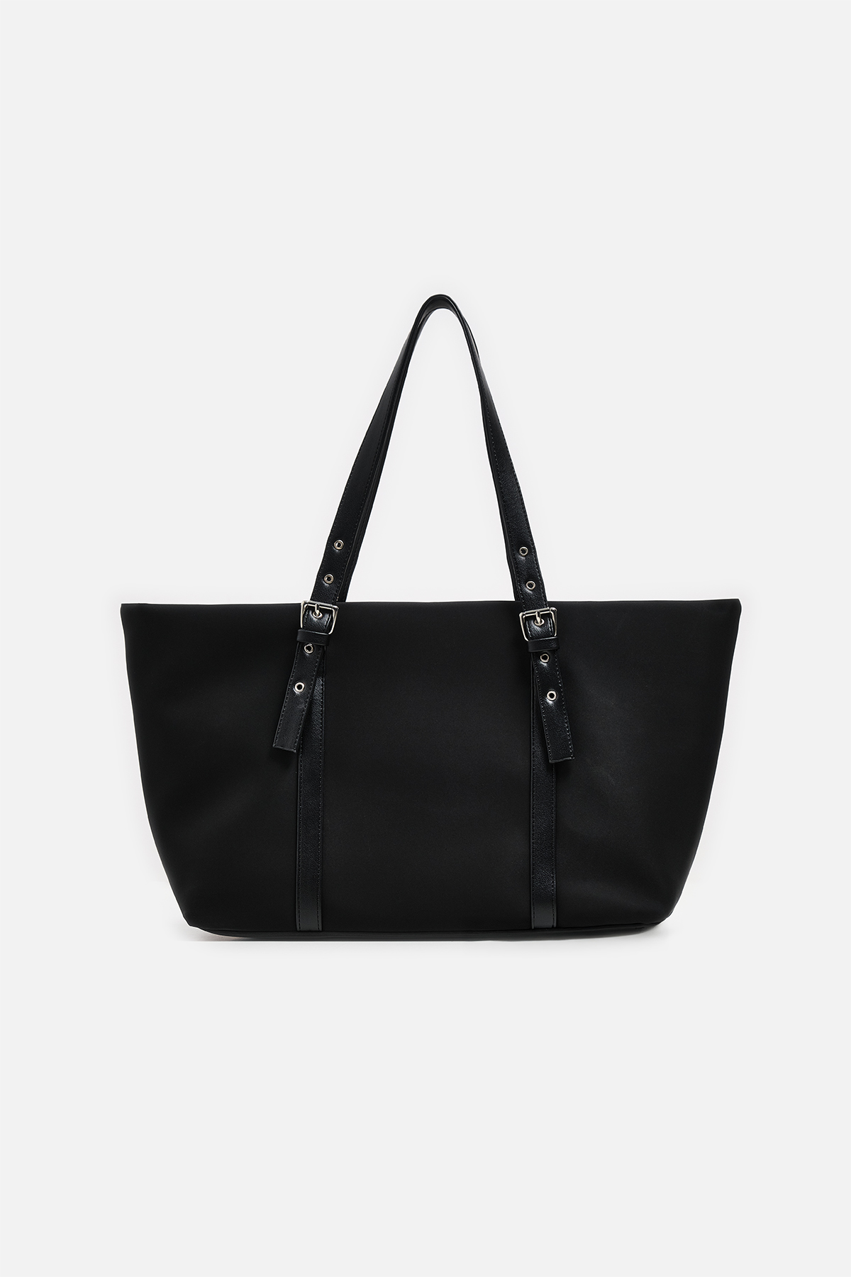 Ayarlanabilir Askı Detayı: Çantanın ön yüzünde uzanan kemer görünümlü askılar, metal tokaları ve kuşgözü detaylarıyla hem estetik bir hava katar hem de kullanım kolaylığı sağlar.