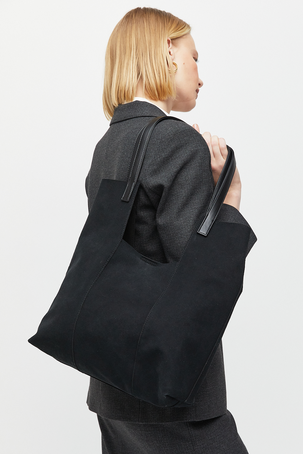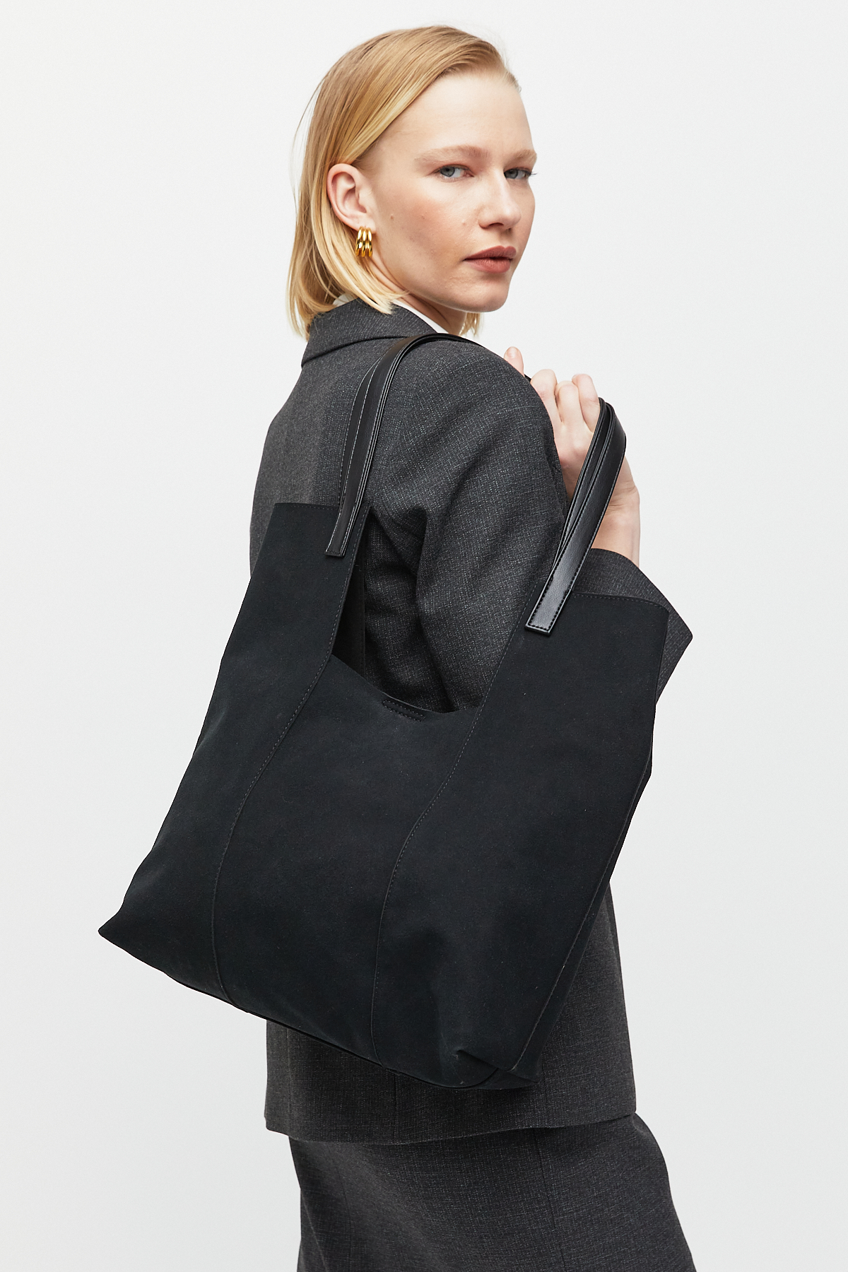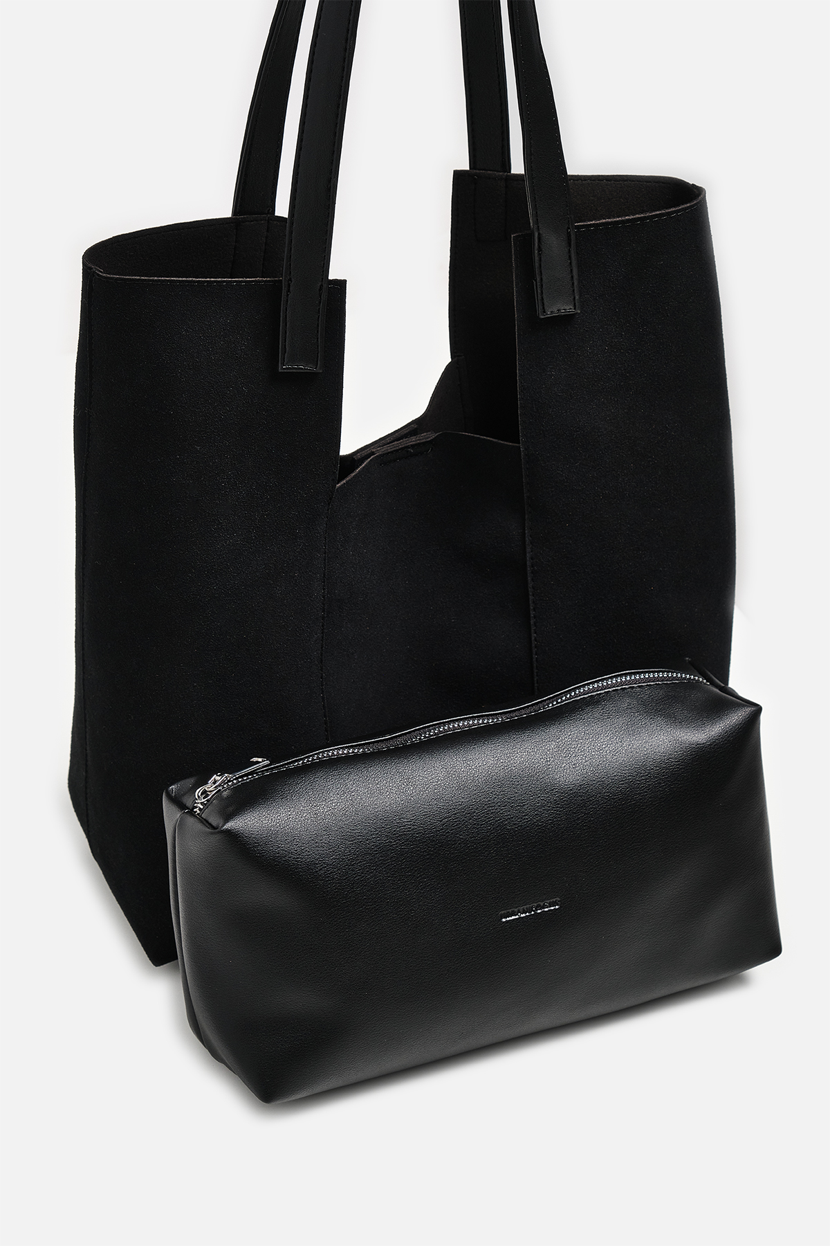 Elde ve omuzda kullanıma uygun, sade ve zamansız shopper çanta modeli.