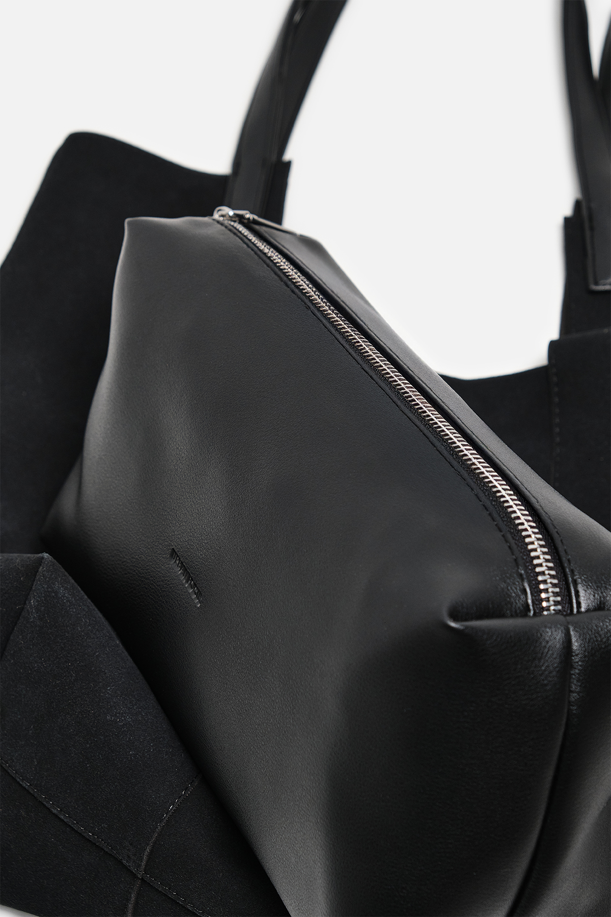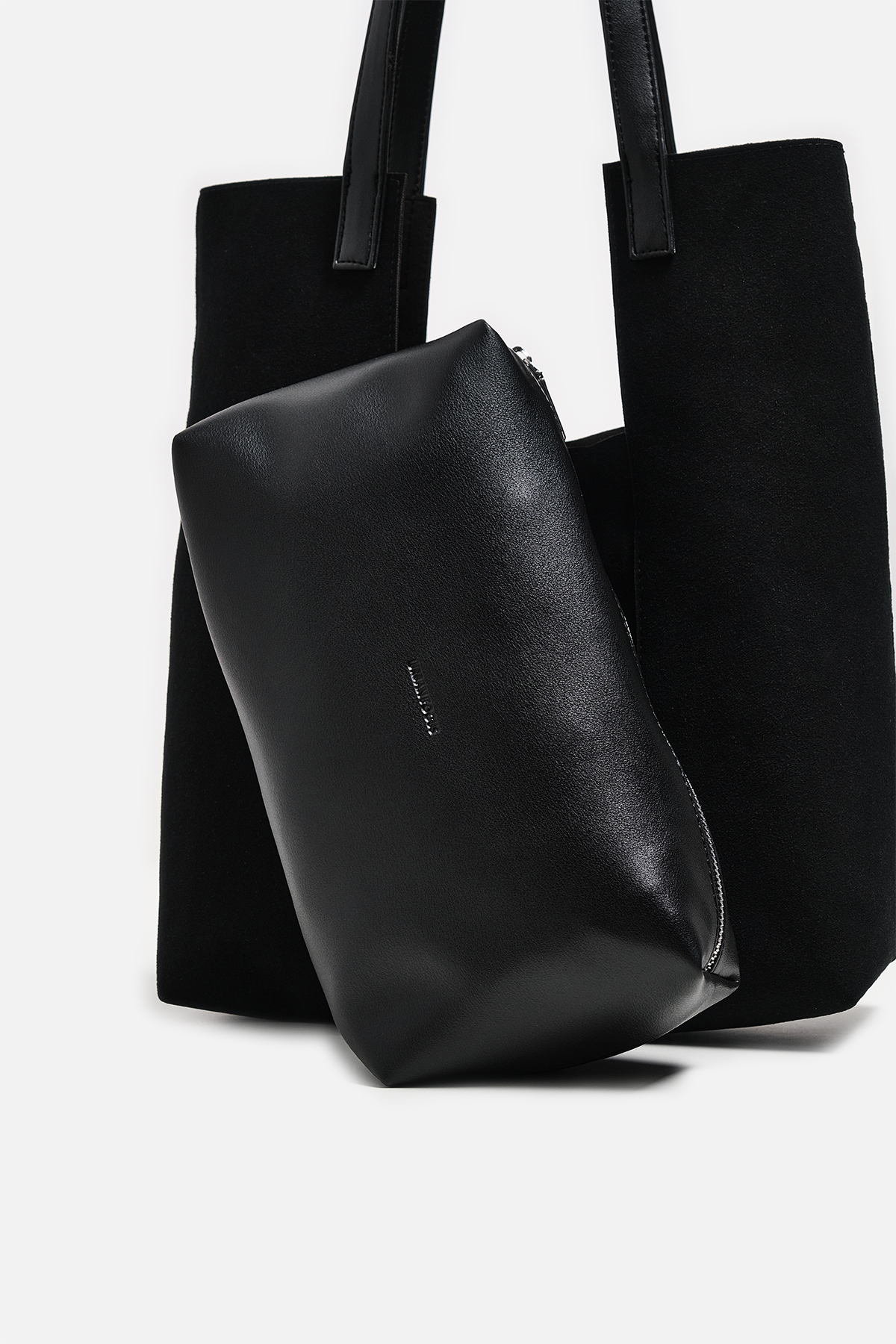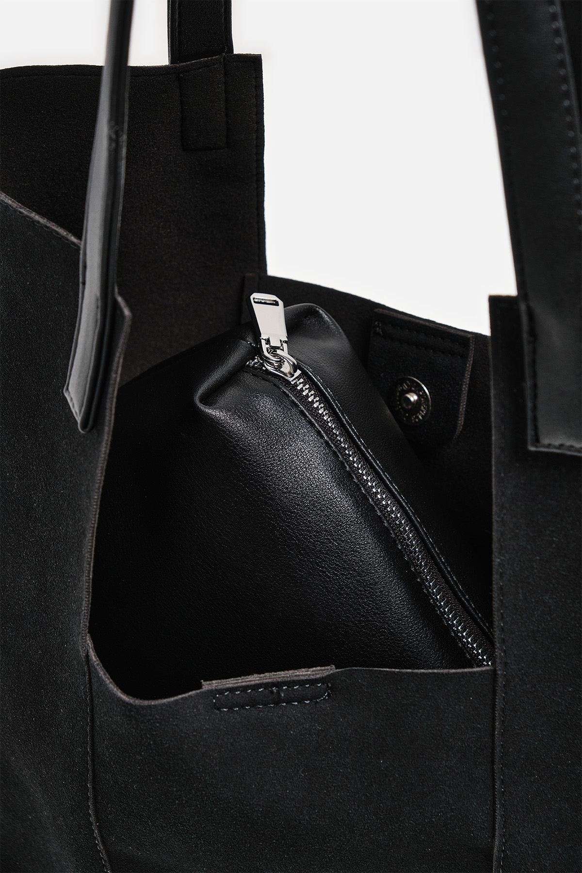 Elde ve omuzda kullanıma uygun, sade ve zamansız shopper çanta modeli.