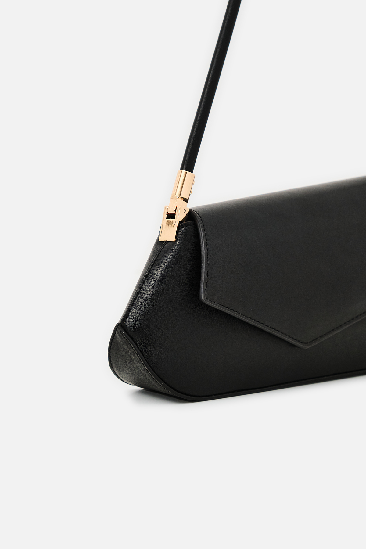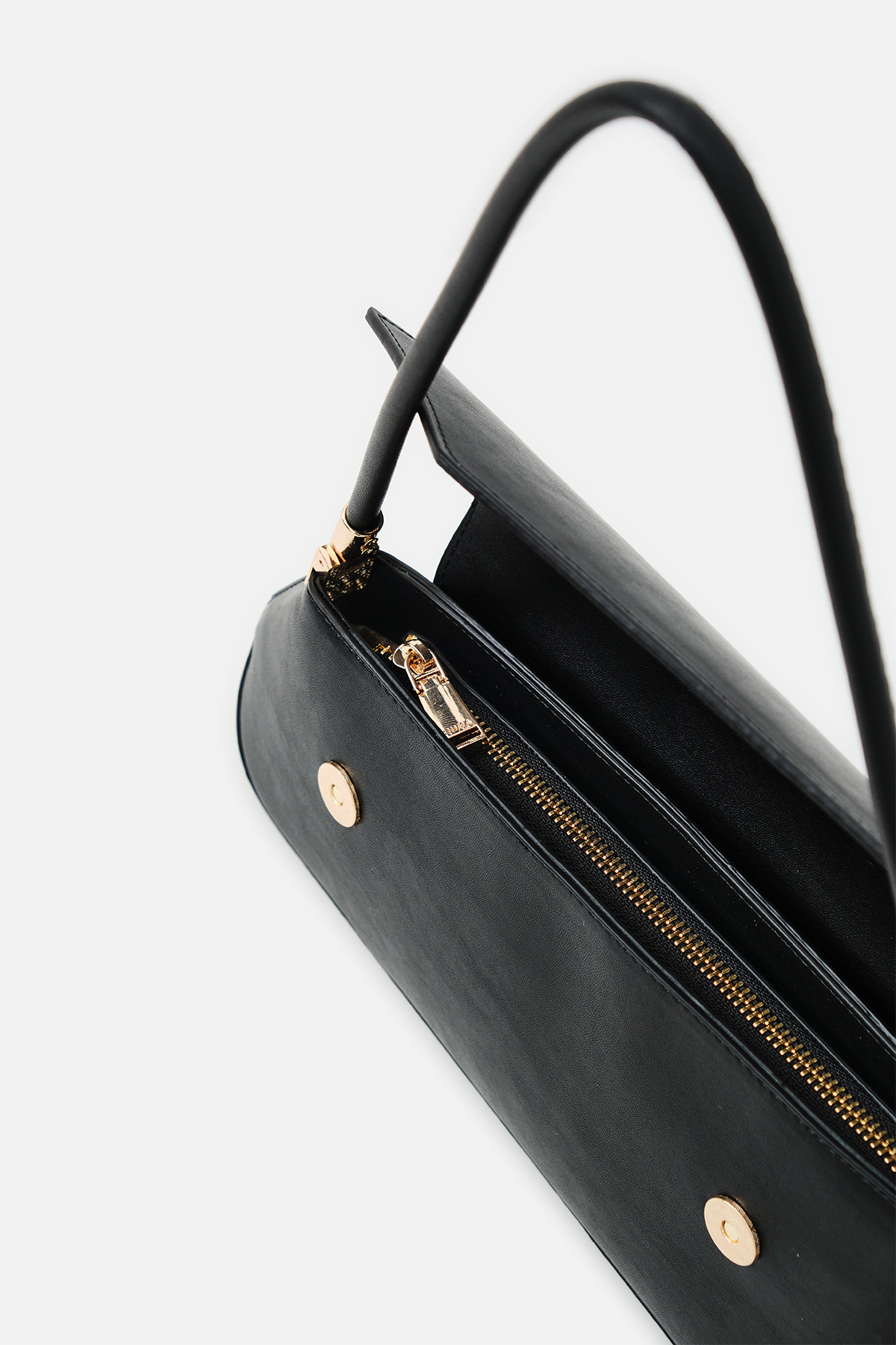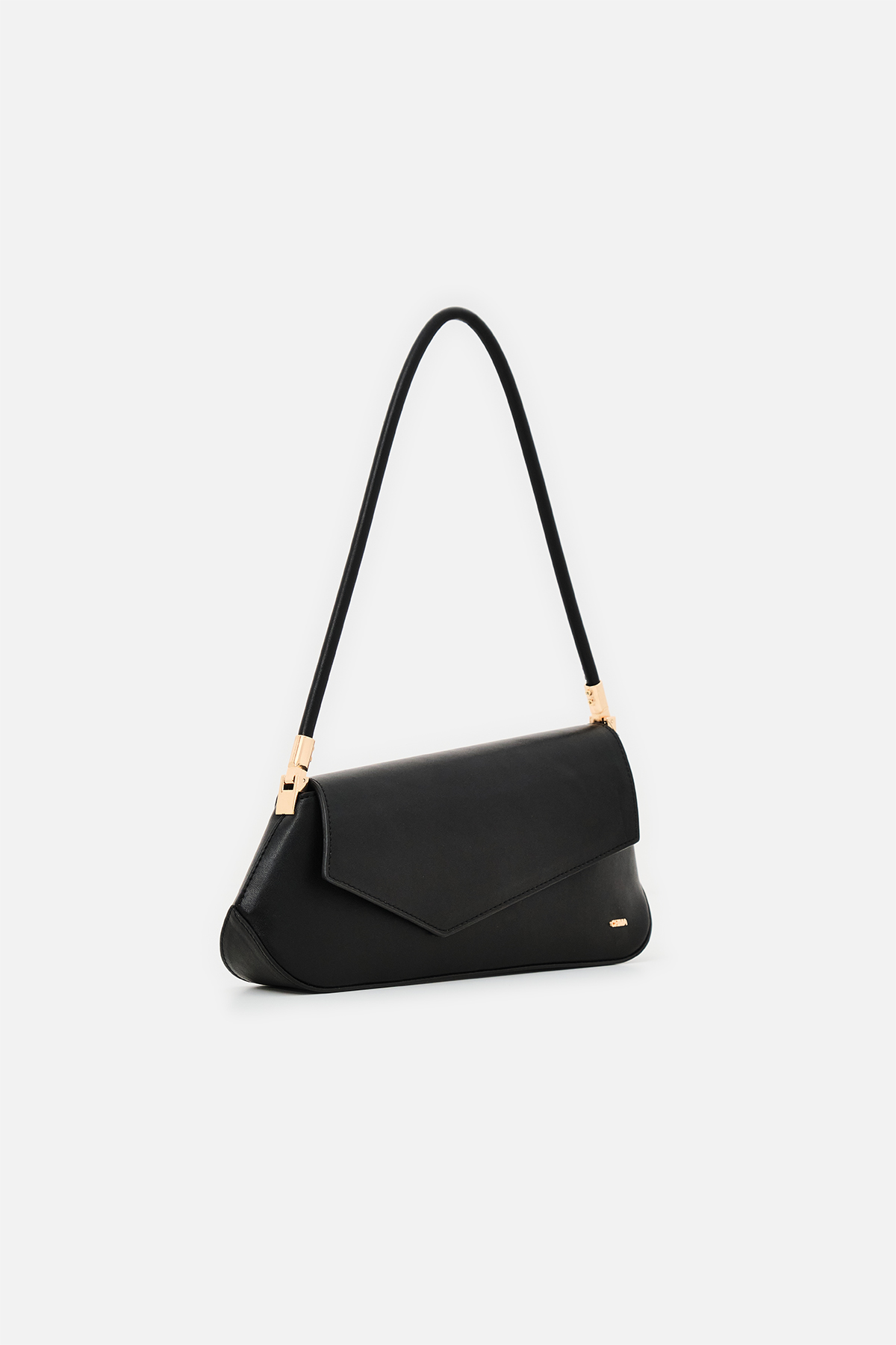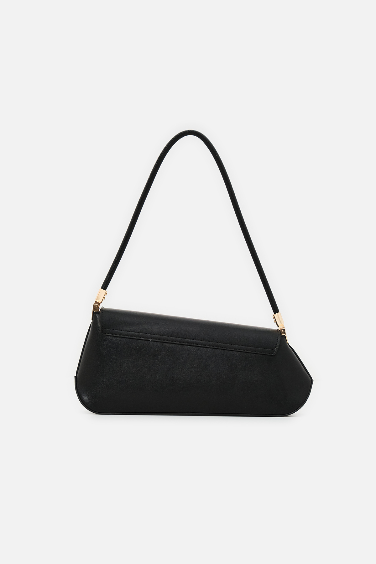 Yumuşak dokulu suni deri. Asimetrik ön kapak tasarımlı. Baget omuz çantası. Altın rengi metal detaylar. Tek tutma saplı. Mıknatıslı kapamalı, fermuarlı, astarlı çanta.
