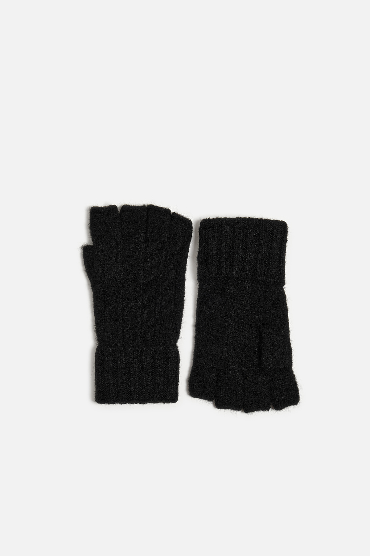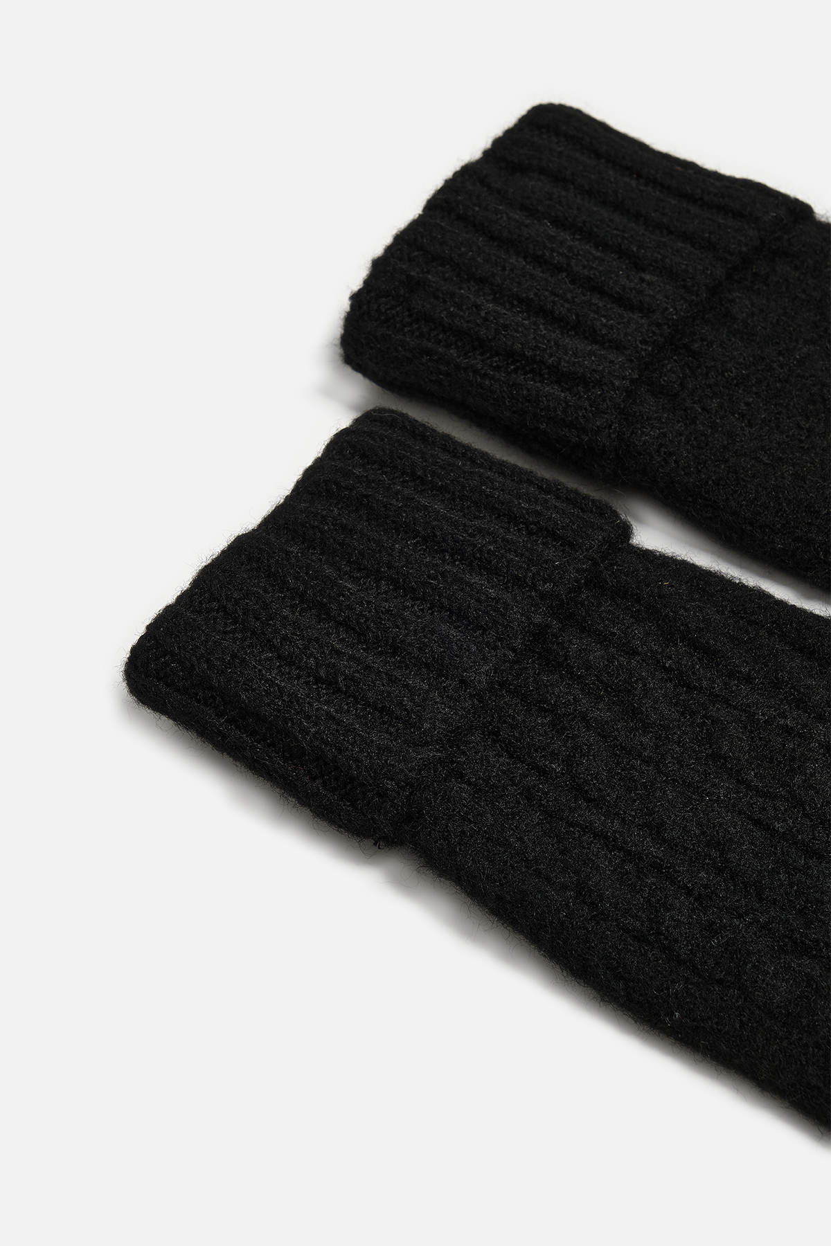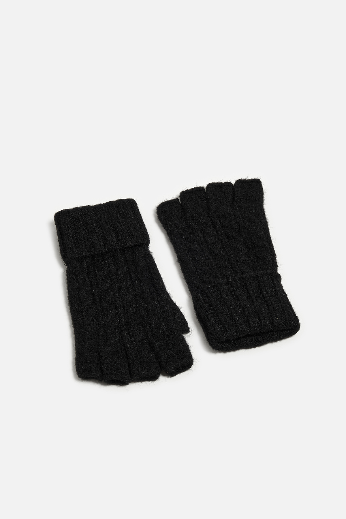 Yumuşak dokulu yün karışımlı parmaksız eldivenler. Saç örgüsü detaylı, ribanalı ve katlanabilir bilek kısmı ile. Bordo ve ekru renk seçenekleri var.