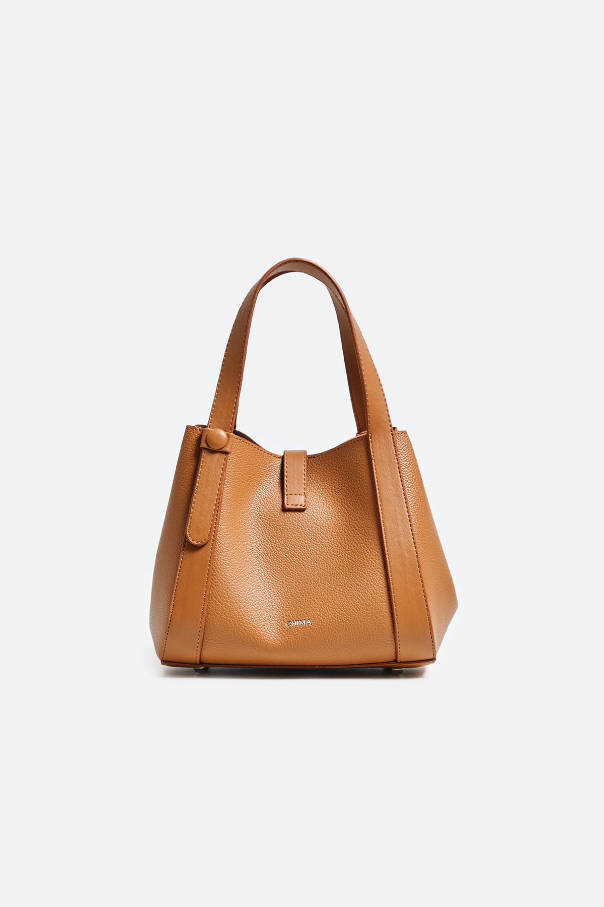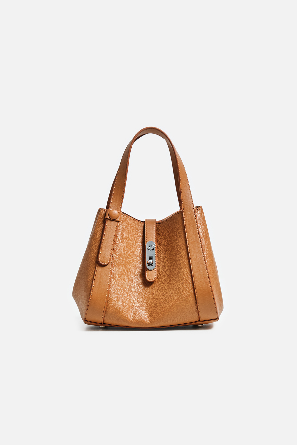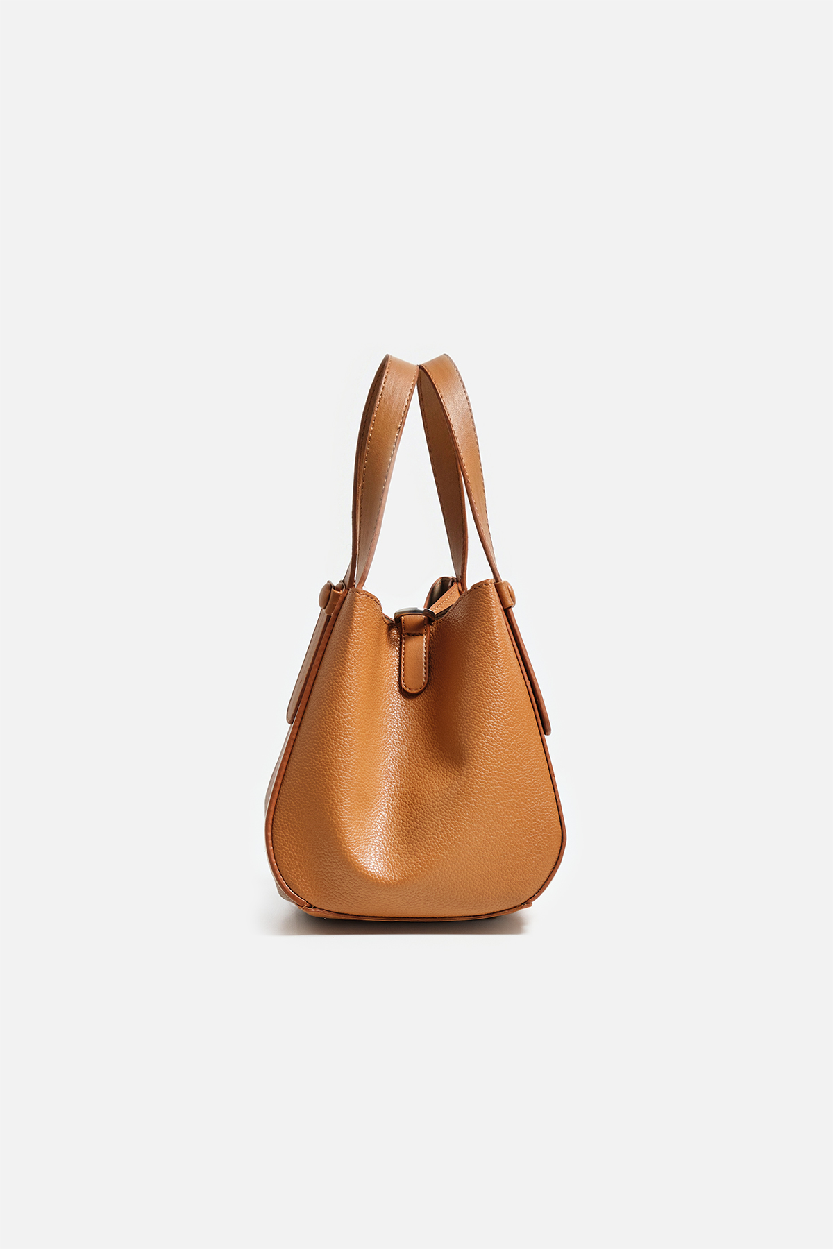 Dokulu suni deriden çıkarılabilir çapraz askılı ön kısmında metal toka detaylı iç yavrusu bulunan el çantası