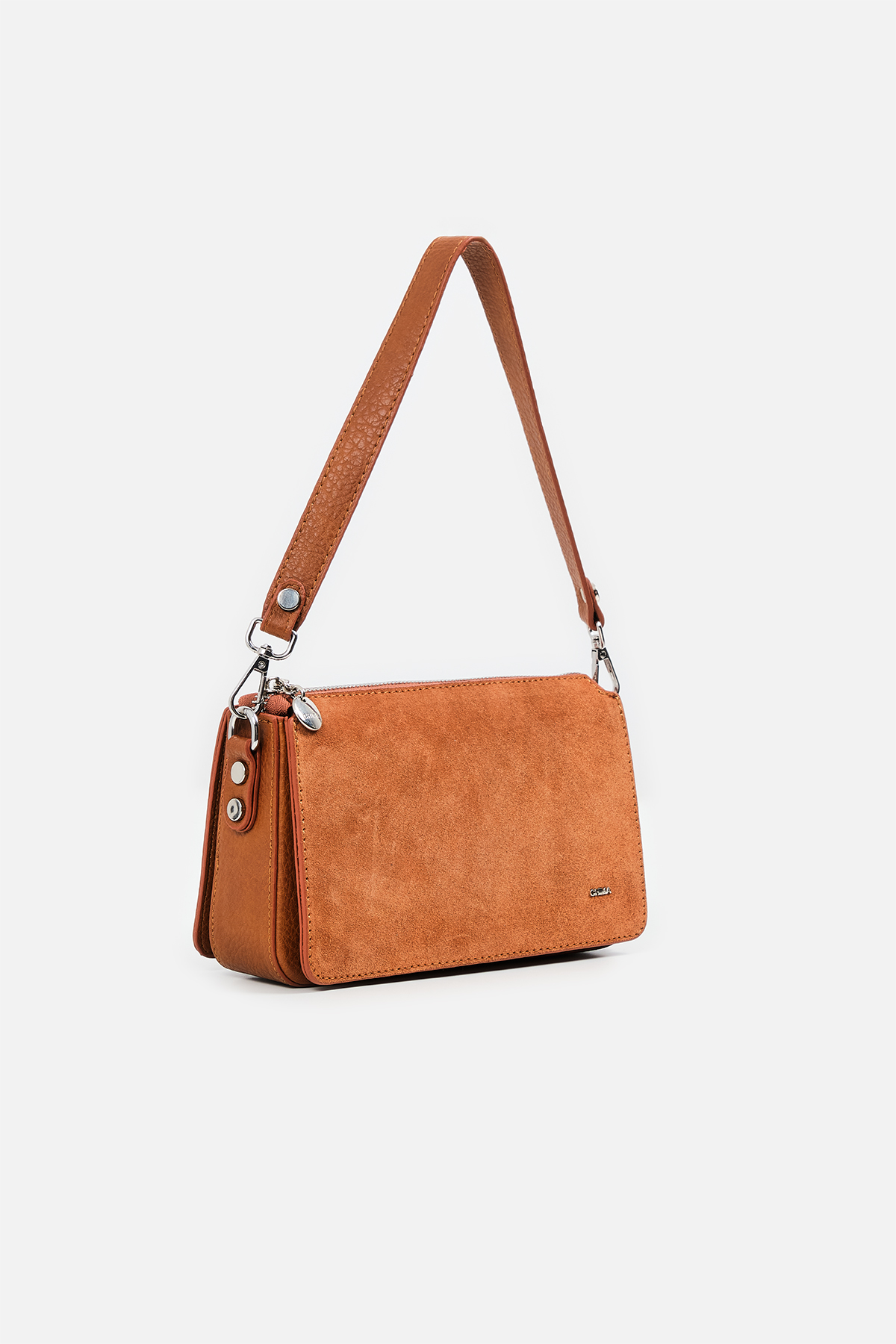 Bu zarif omuz çantası, yumuşak süet dokusu ve dikkat çekici metal detaylarıyla modern şıklığın sembolü. Kompakt yapısı ve doğal tonlarıyla her kıyafete uyum sağlar. Hem günlük kullanımda pratik bir çözüm sunar hem de özel anlarda elegan bir stil yaratır.