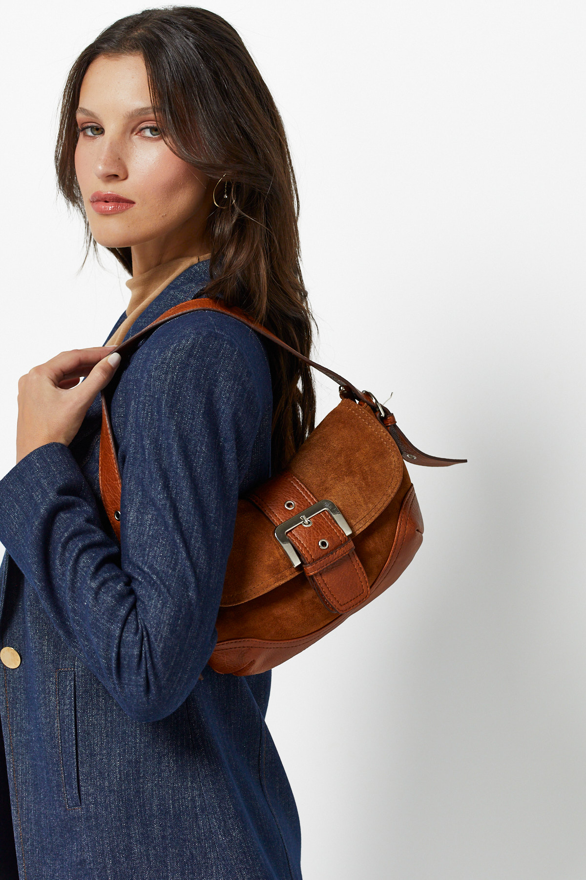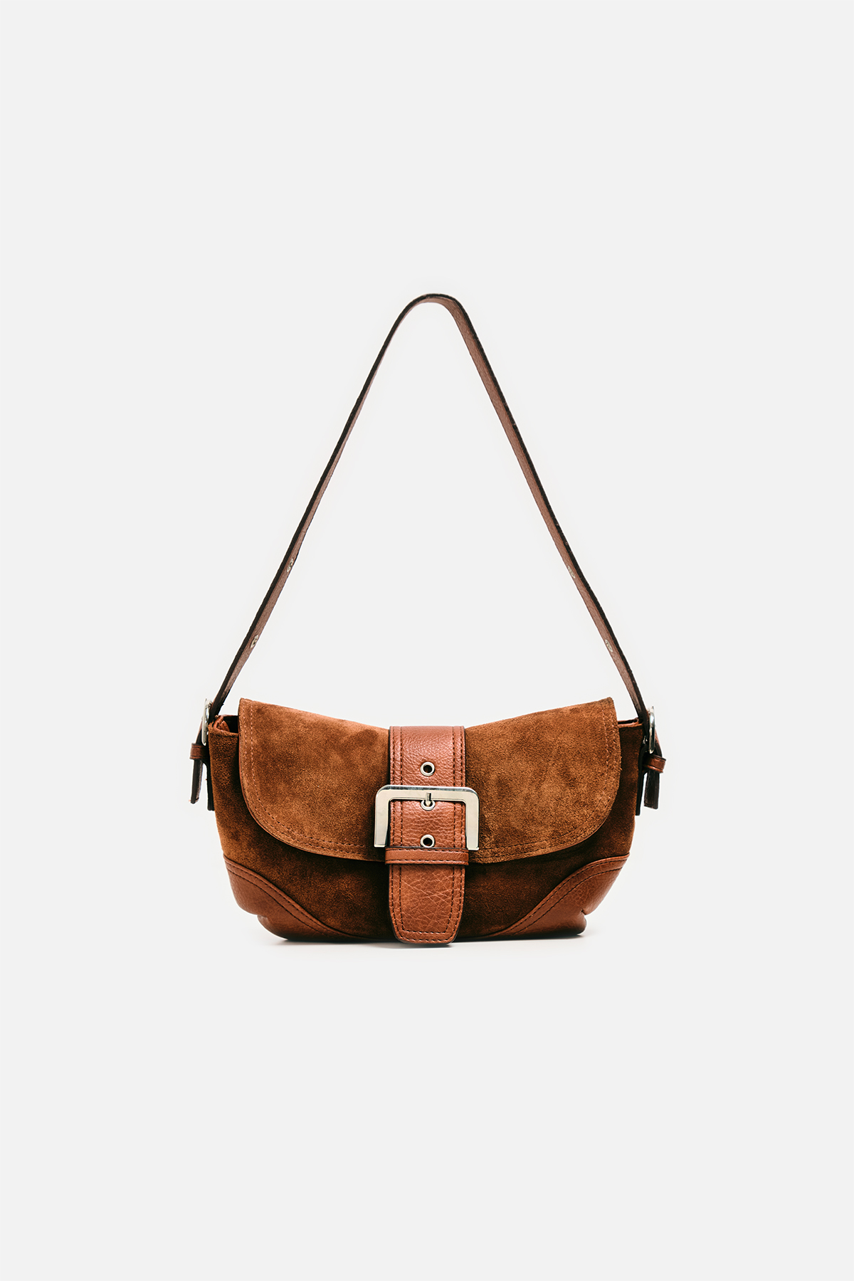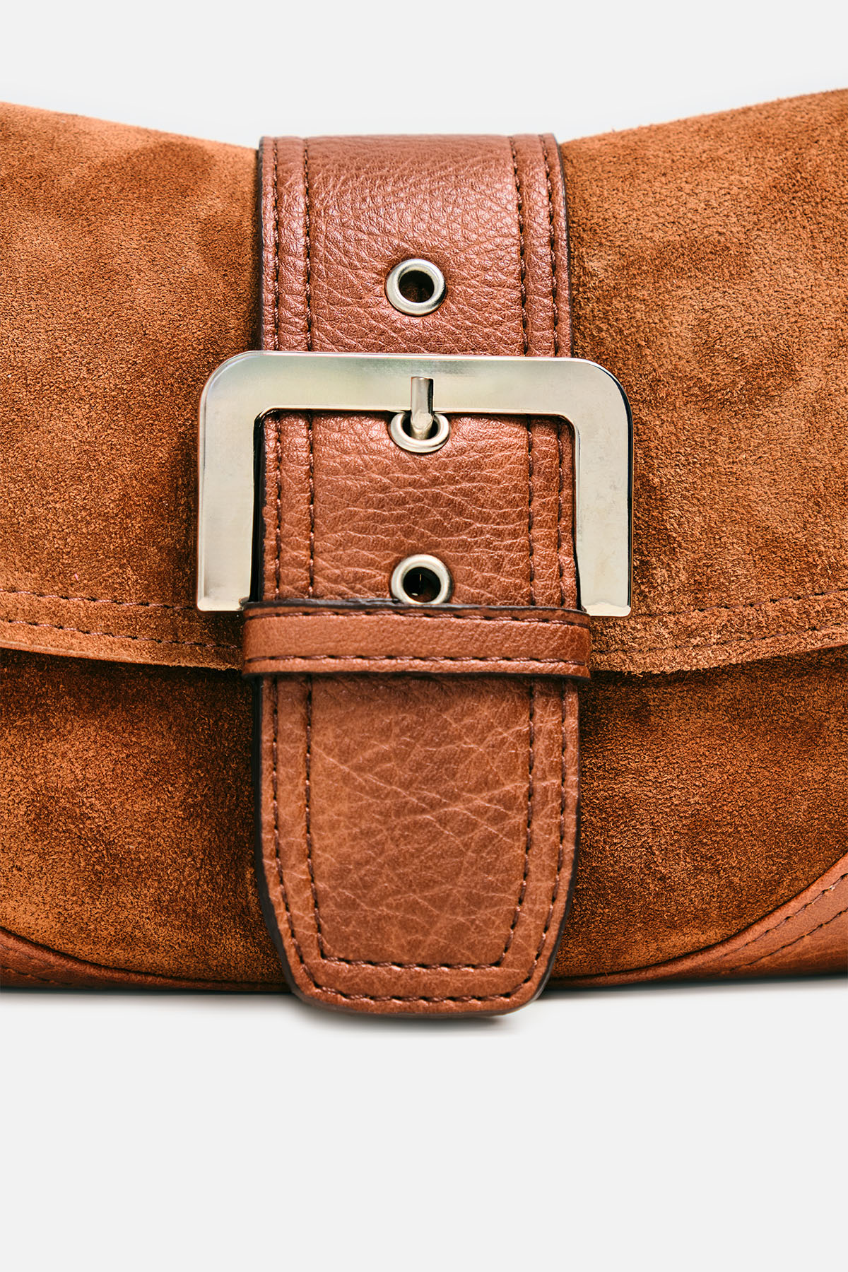 Gerçek Süet Görünümlü Tokalı Omuz Çantası