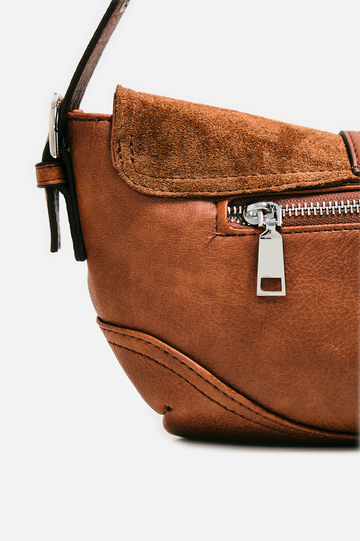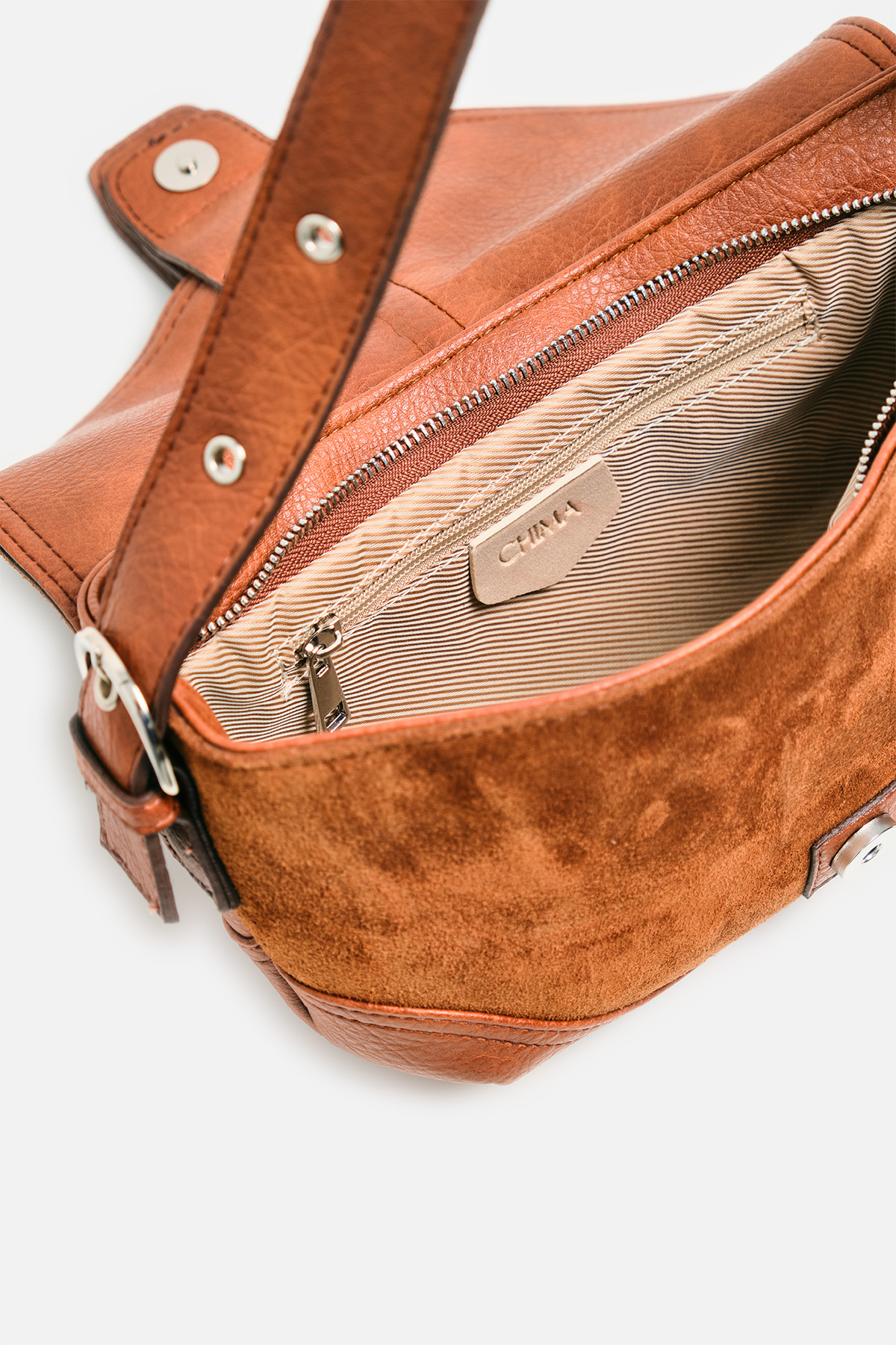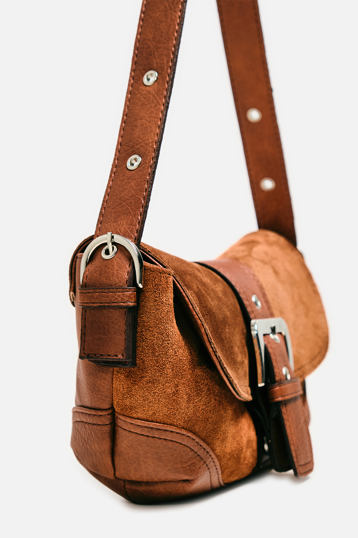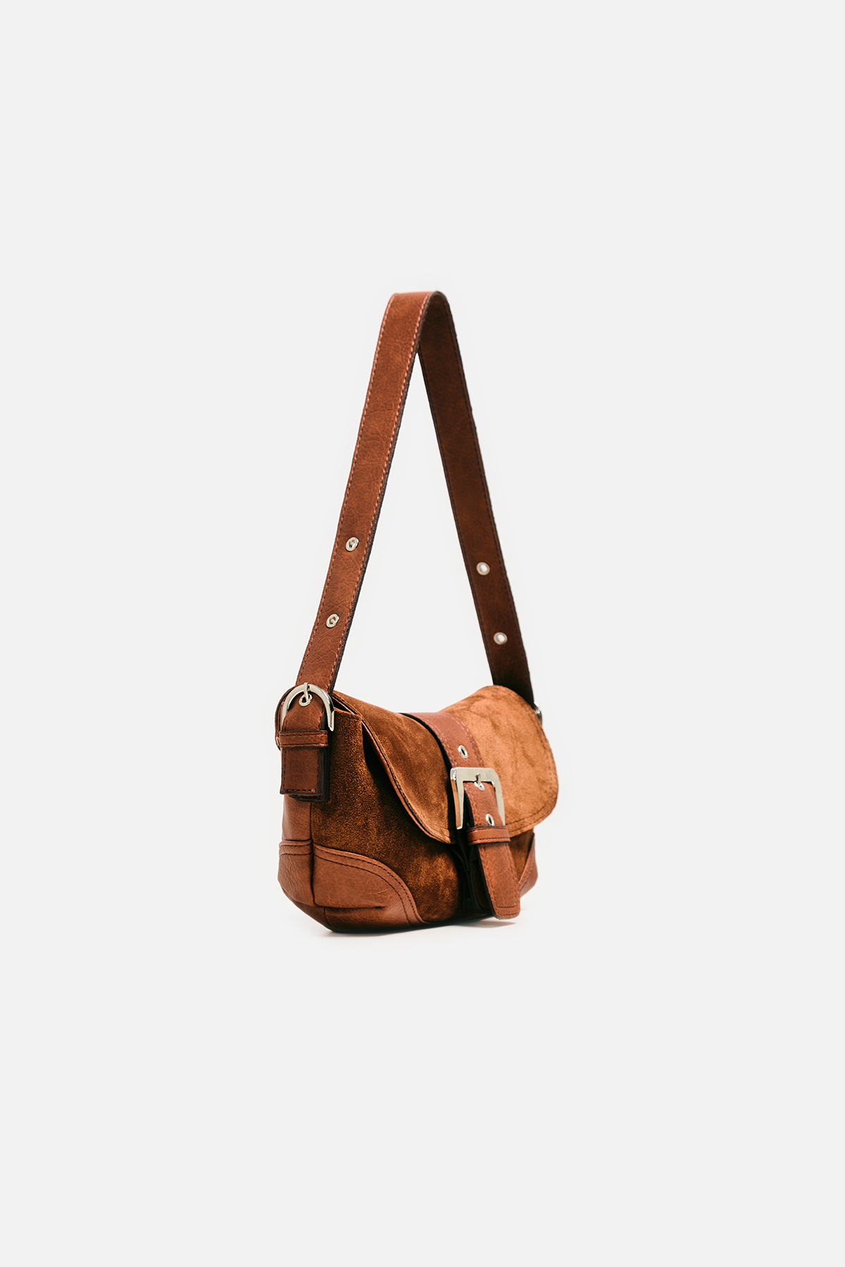 Gerçek Süet Görünümlü Tokalı Omuz Çantası