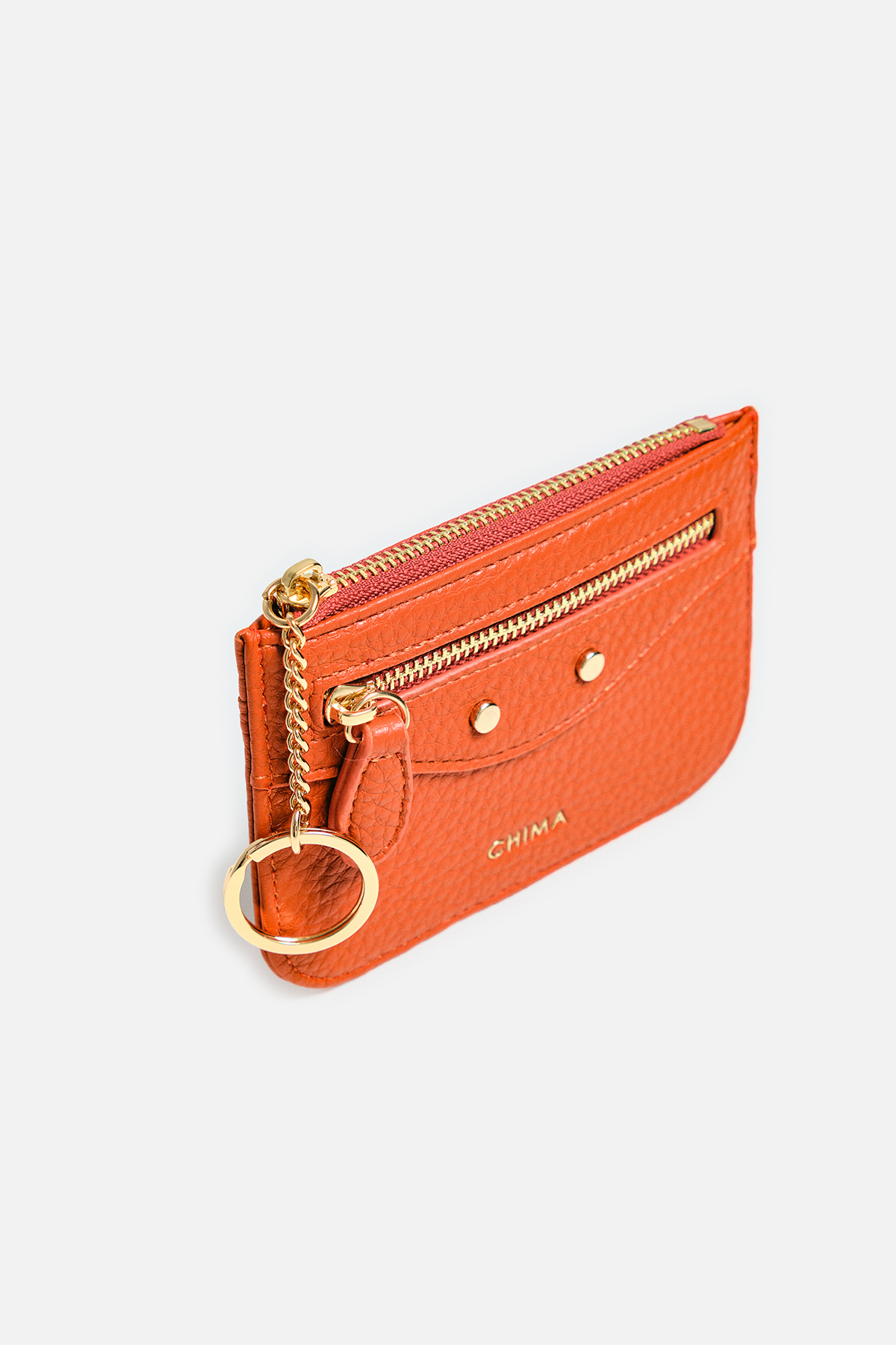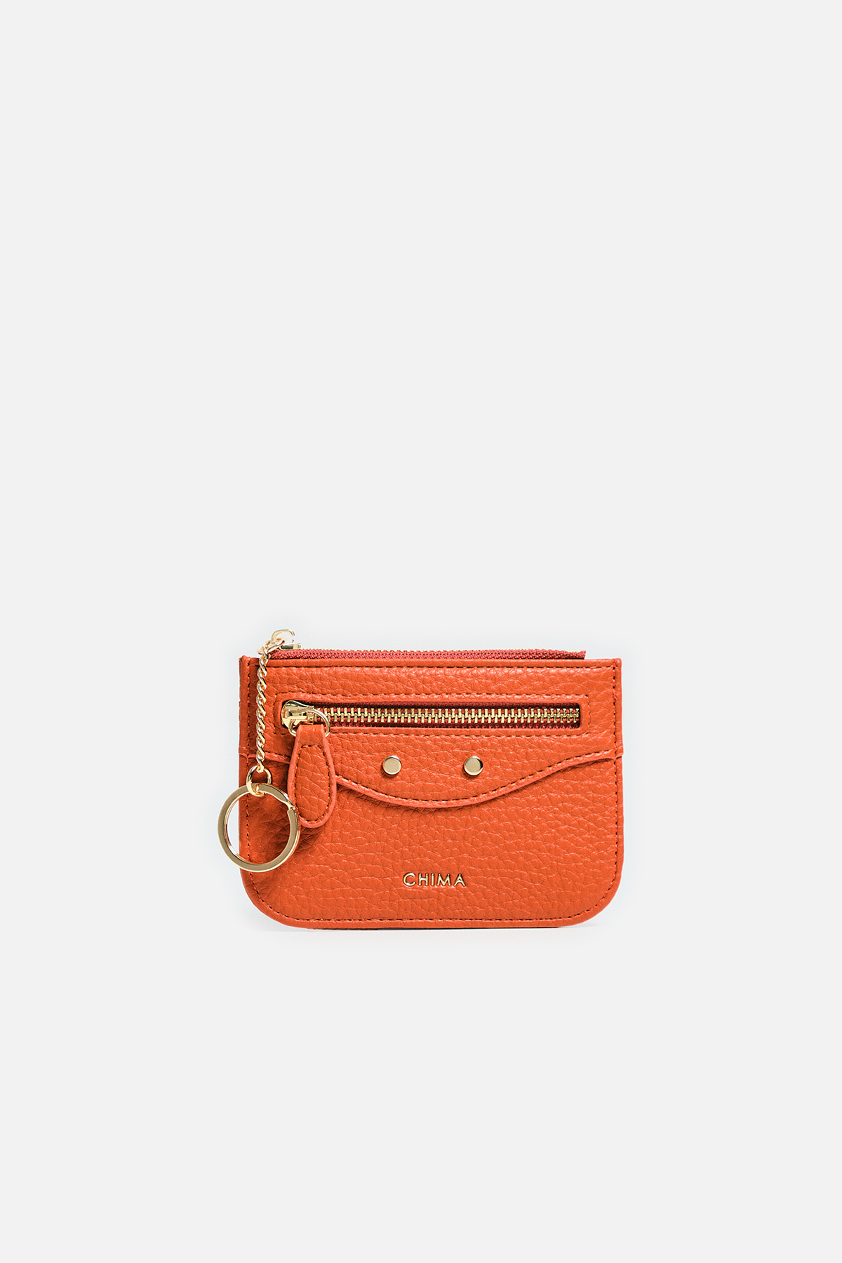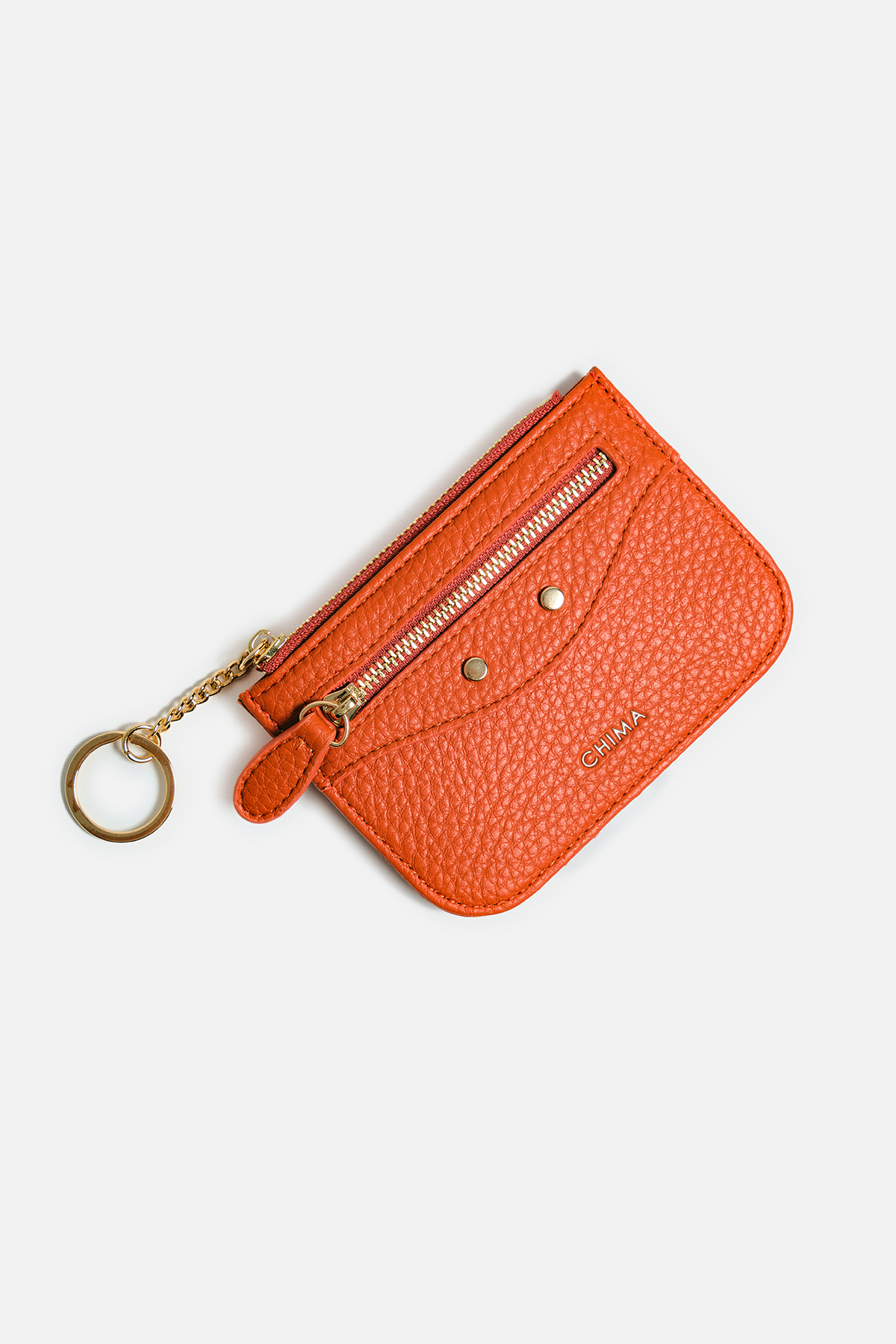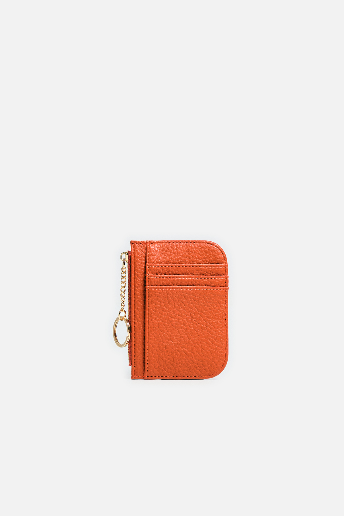 Dokulu deri görünümlü dış yüzey. Ön yüzde katmanlı tasarım, fermuar ve iki adet dairesel motif bulunuyor. İç kısmında bozuk para yeri ve arka yüzünde kartlık tasarımı mevcut.